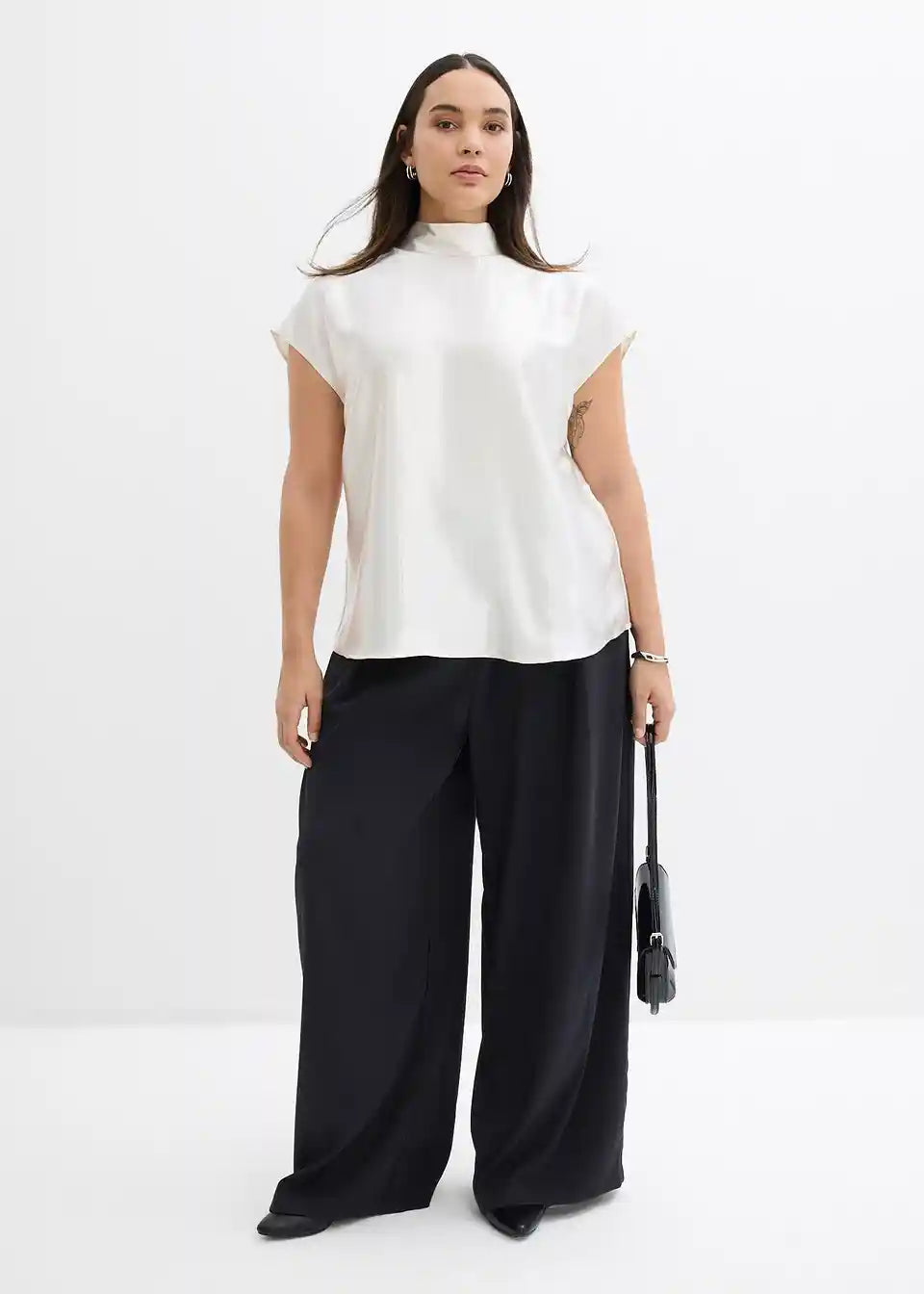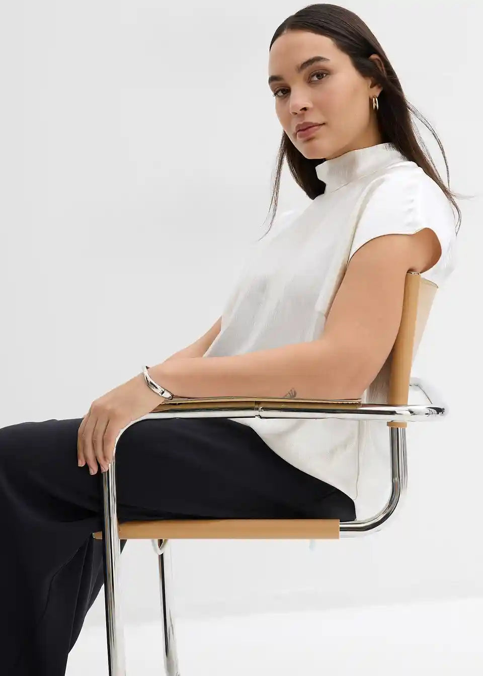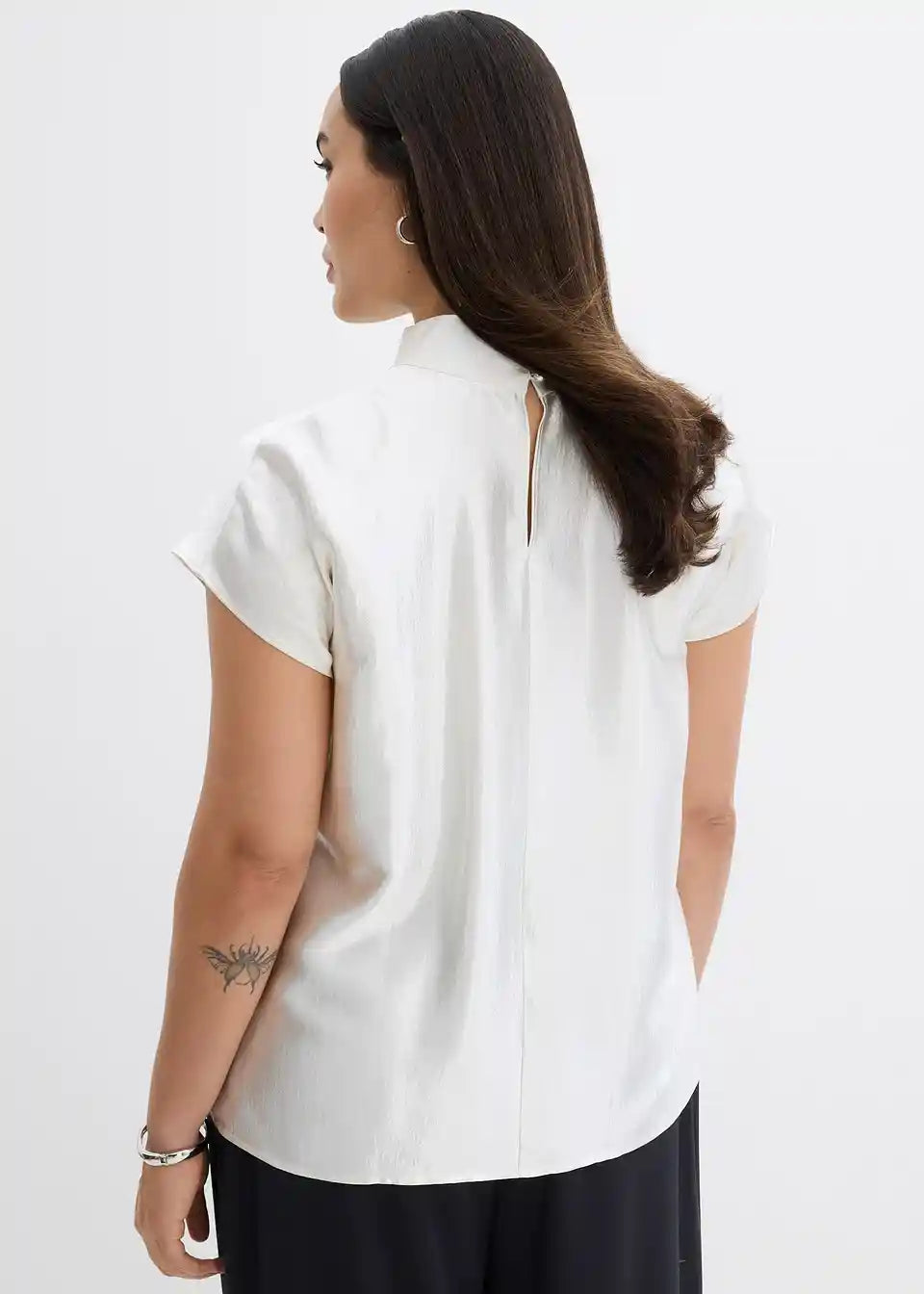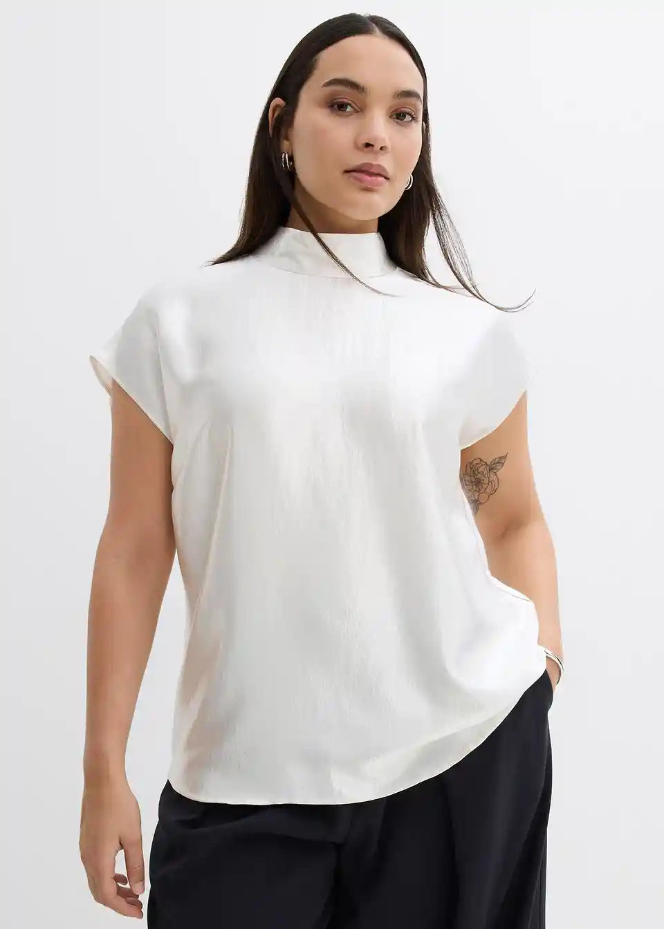 Bluza brez rokavov iz padajočega materiala z zapenjanjem z gumbi zadaj