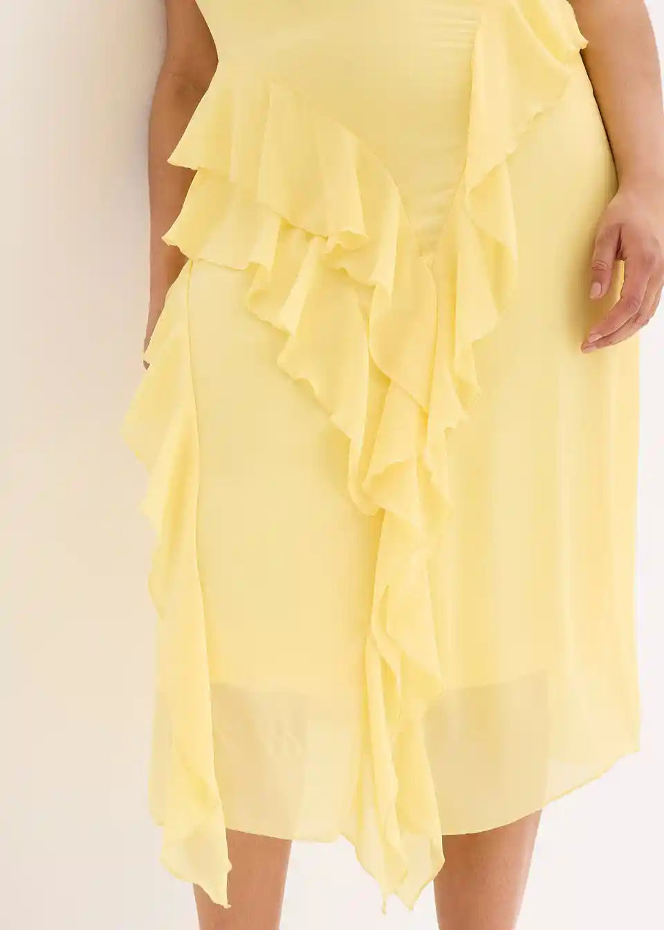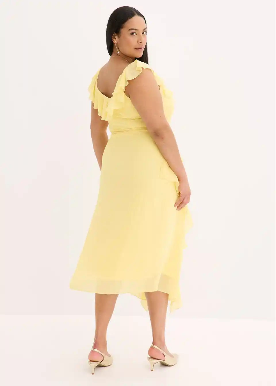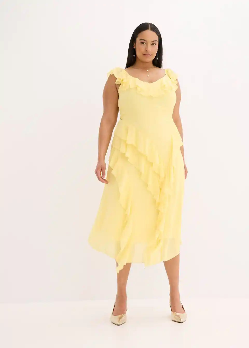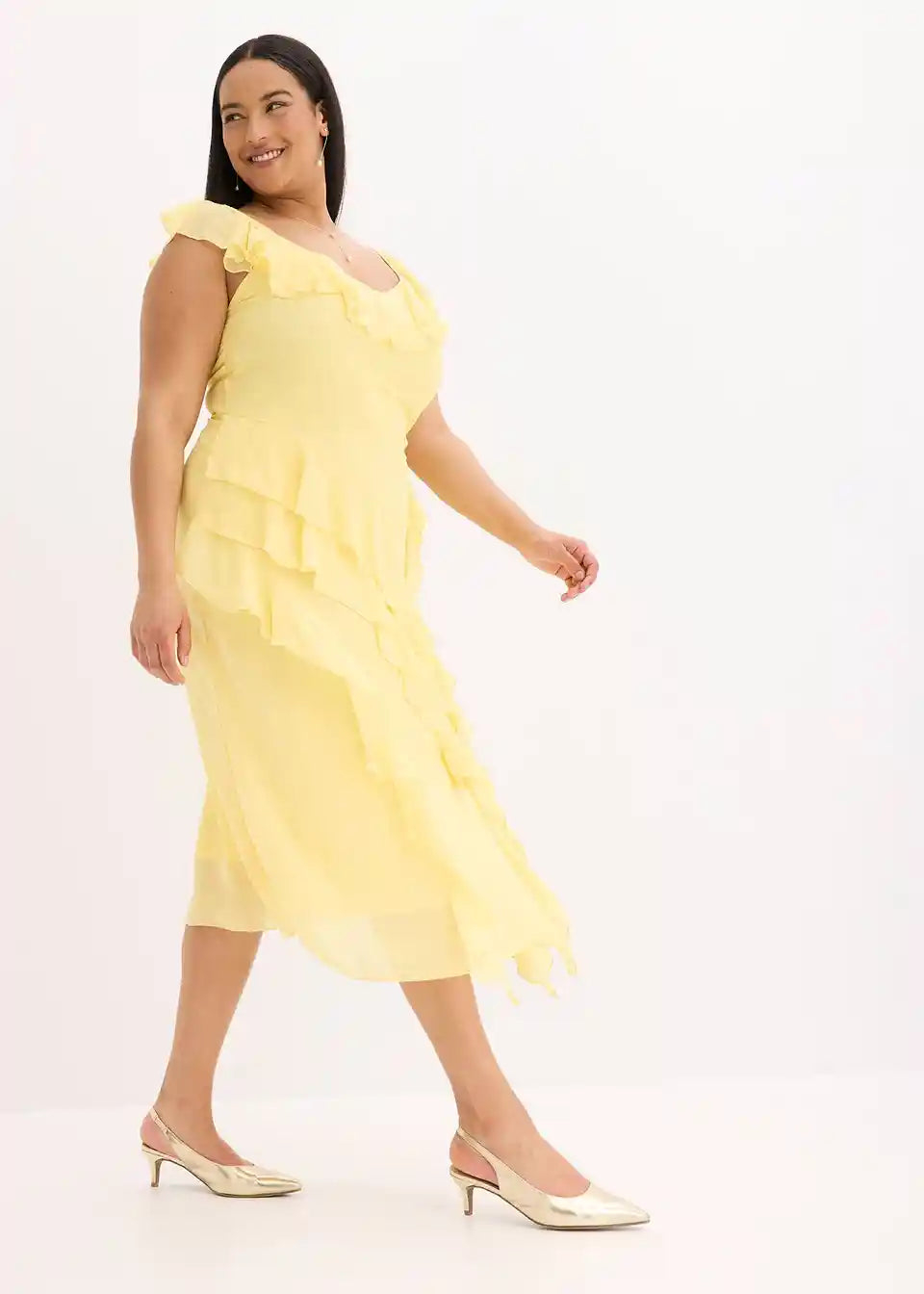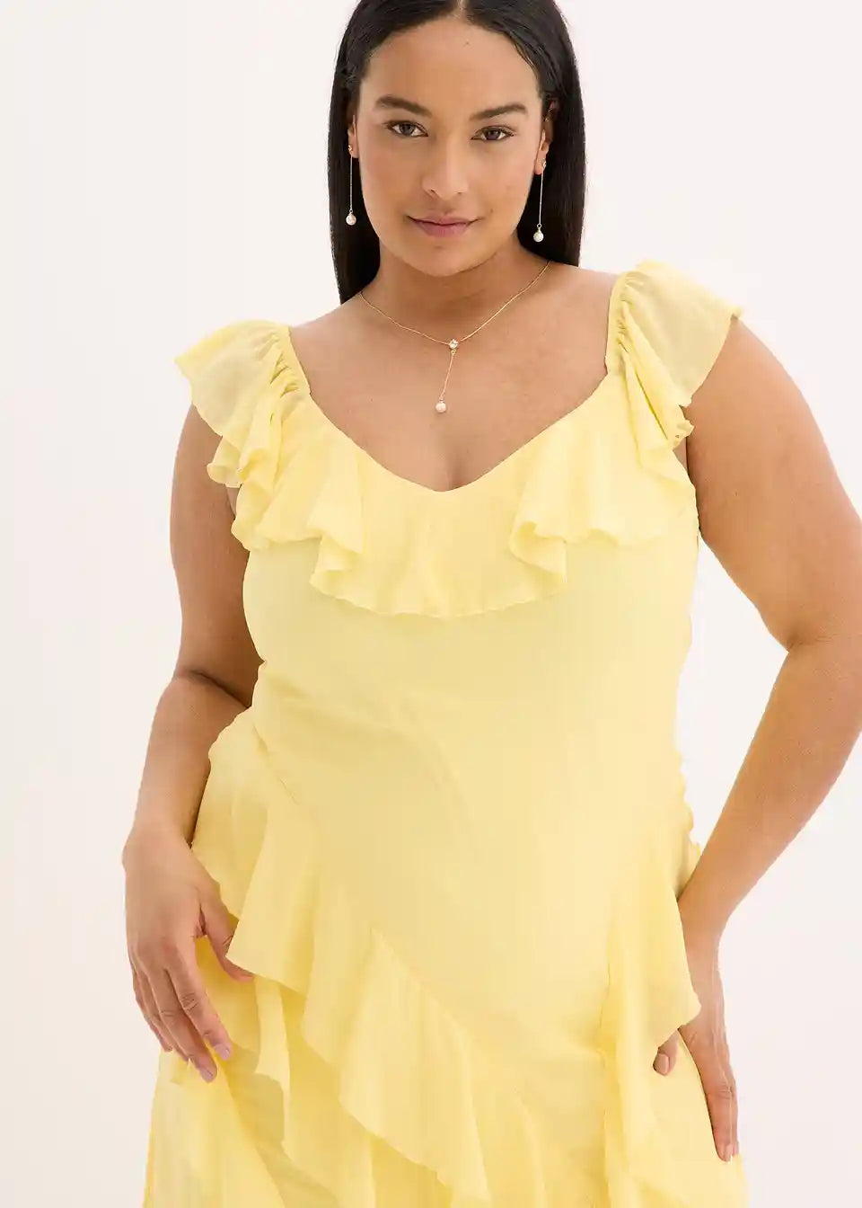 Romantična in moderna: Večerna obleka iz finega šifona s stopničastimi volančki