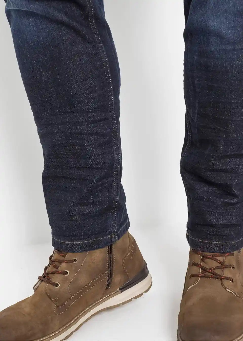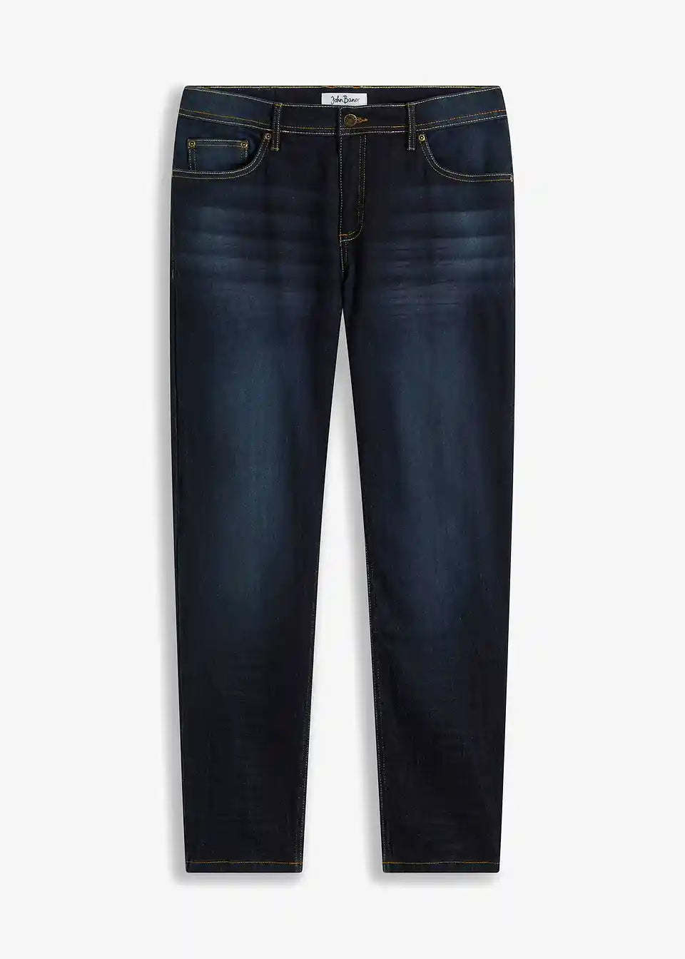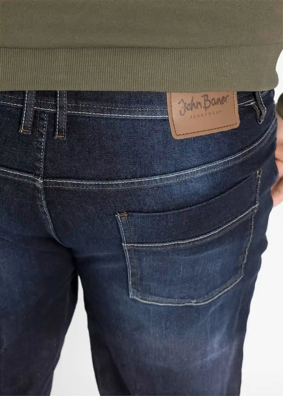 S hlačami Slim Fit Tapered iz raztegljivega jeansa znamke John Baner je mogoče ustvariti sproščene kombinacije oblačil. Priljubljen videz ustvarjata pranje Used in trajne gube. Zaradi svoje ozke oblike z ravnimi hlačnicami se hlače odlično prilagajajo postavi in so udobne za nošenje. Srajca iz džinsa in superge lepo dopolnijo hlače Slim Fit Tapered za moderen videz.
