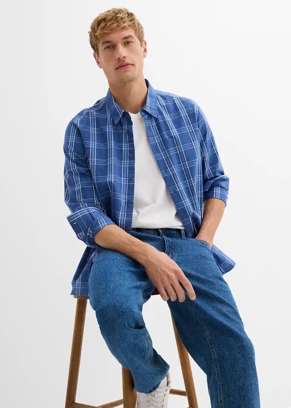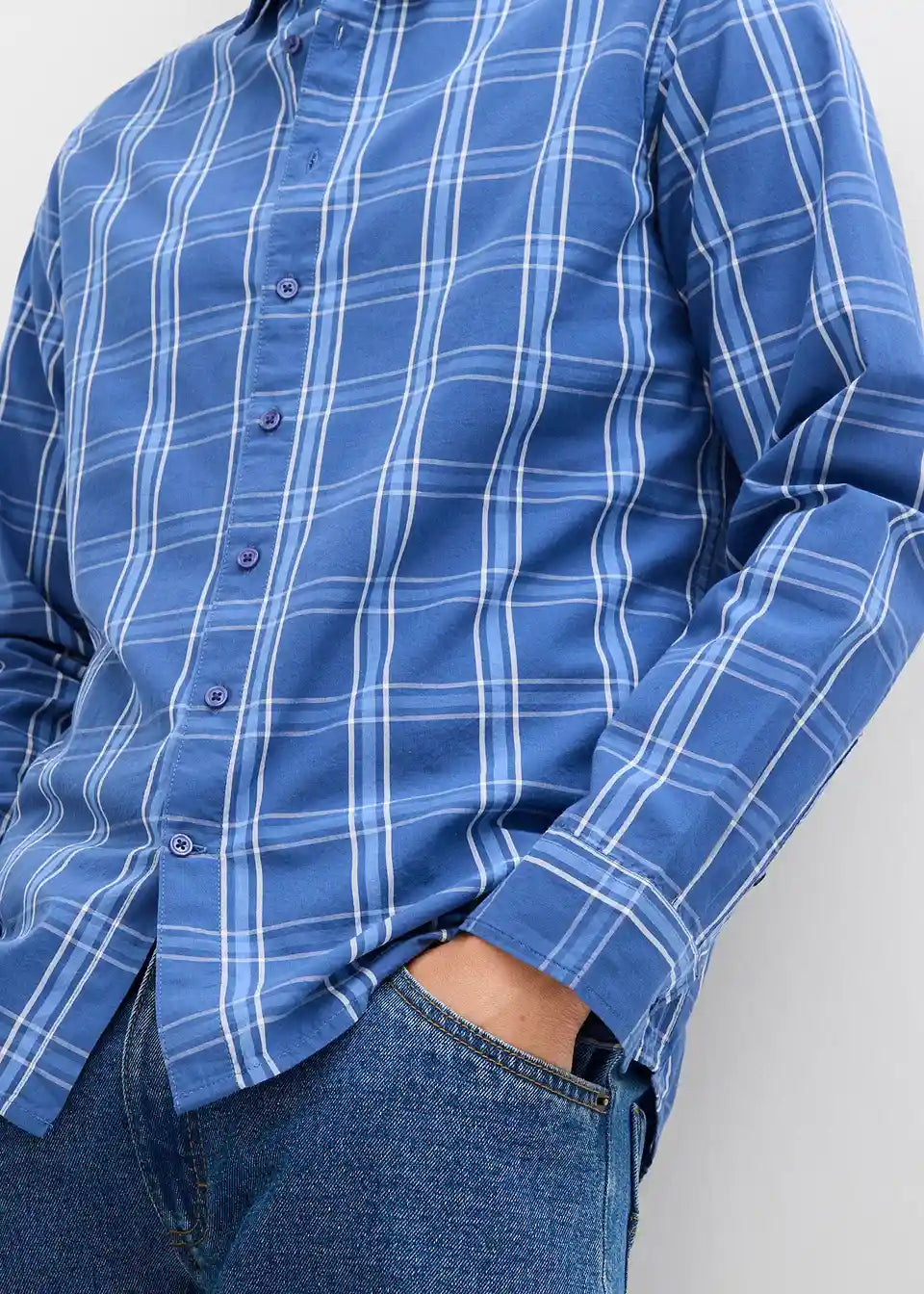 Moderna srajca z dolgimi rokavi v karirastem videzu iz za kožo prijaznega čistega iz ekološkega bombaža