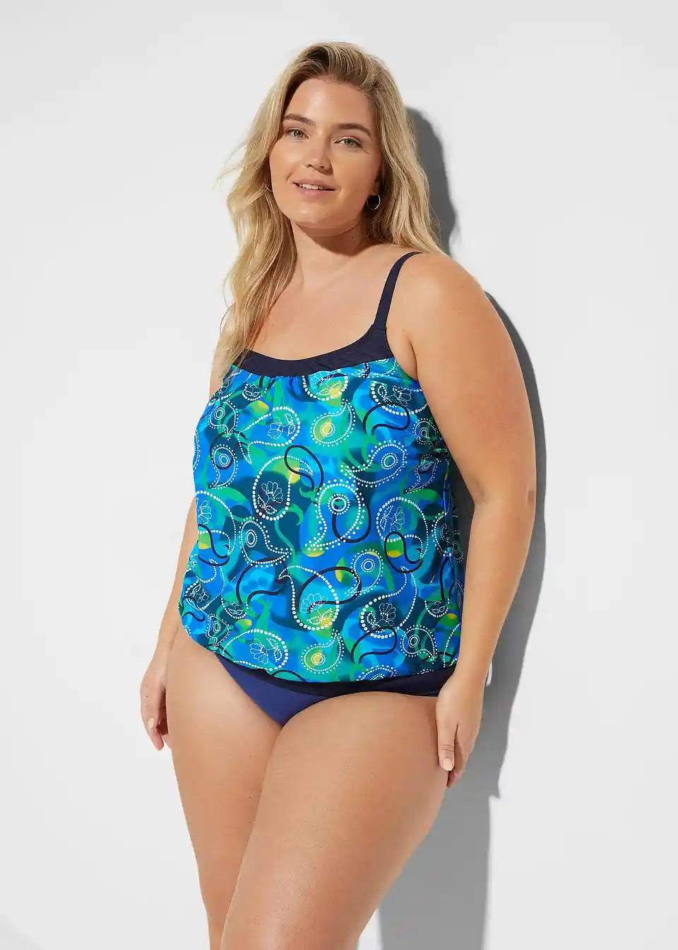 Malo ohlapnejši Tankini z vznemirljivim potiskom