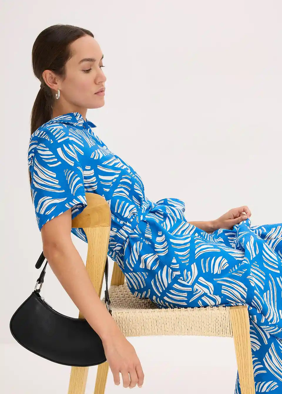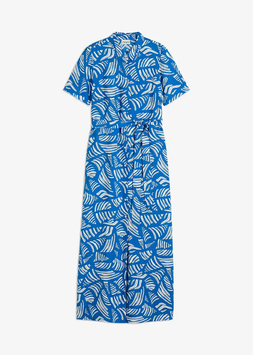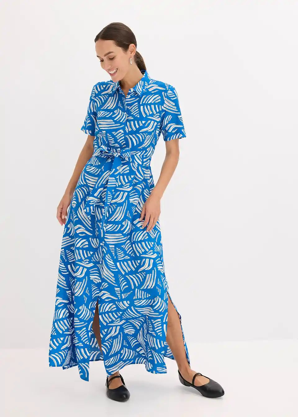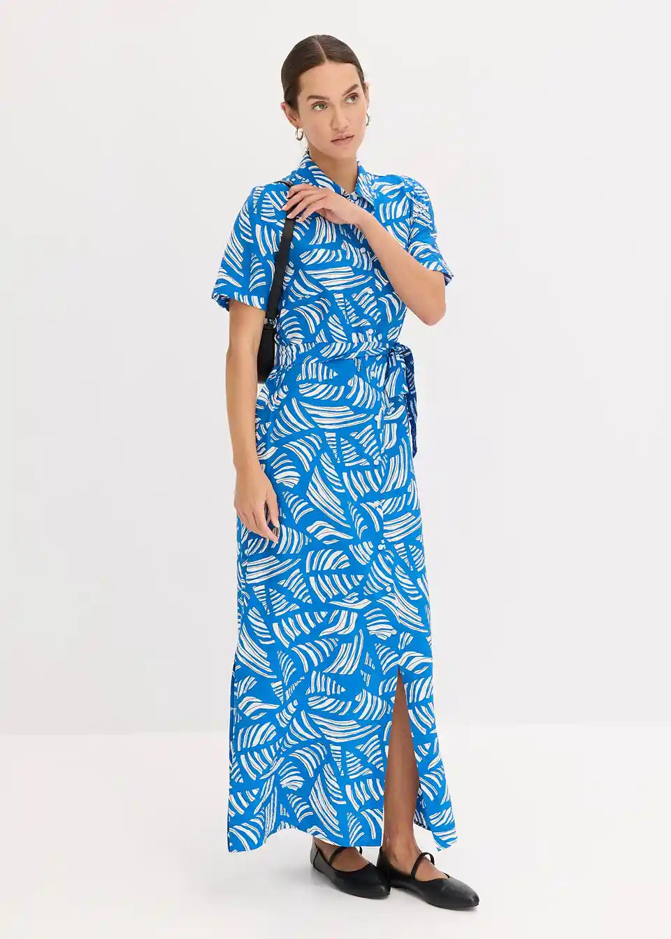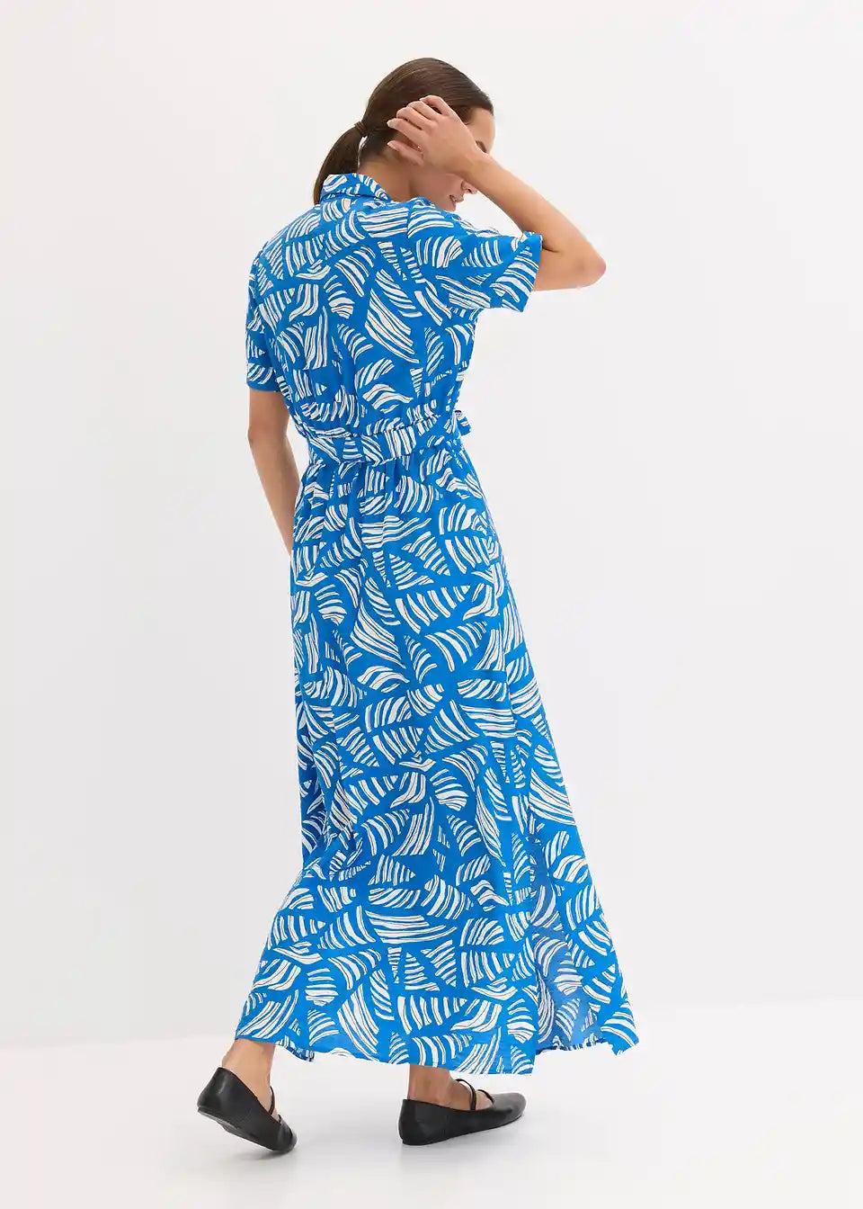 ženstvena srajčna obleka v maksi dolžini s sprednjim zapenjanjem na gumbe