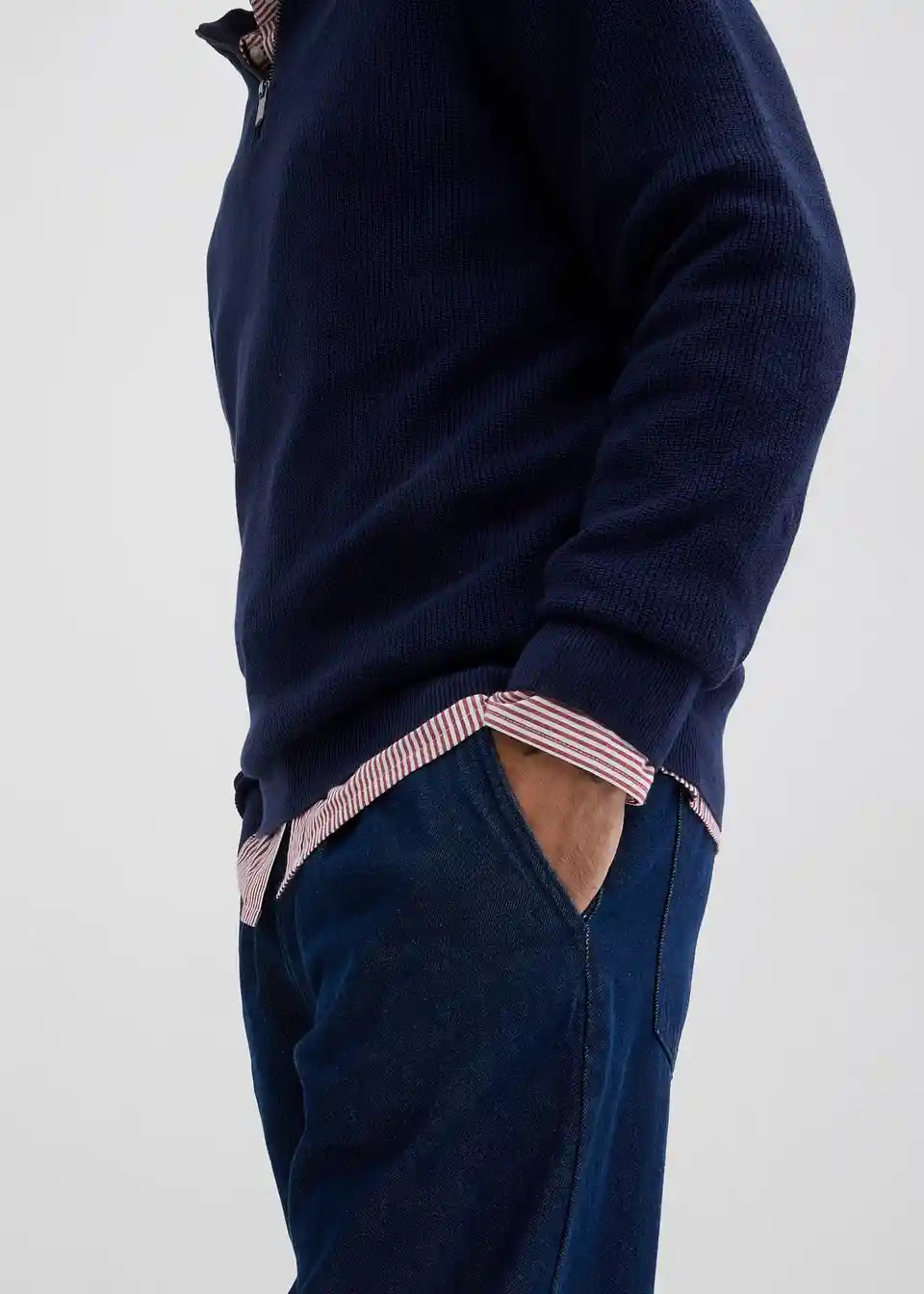 Trendni pulover s trojanskim ovratnikom z zapenjanjem z zadrgo spredaj