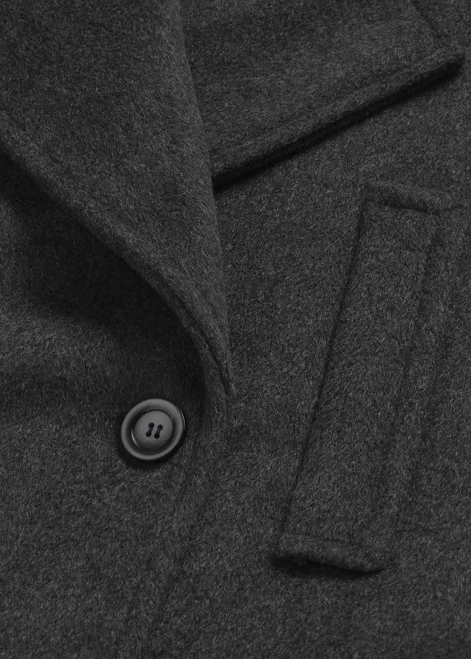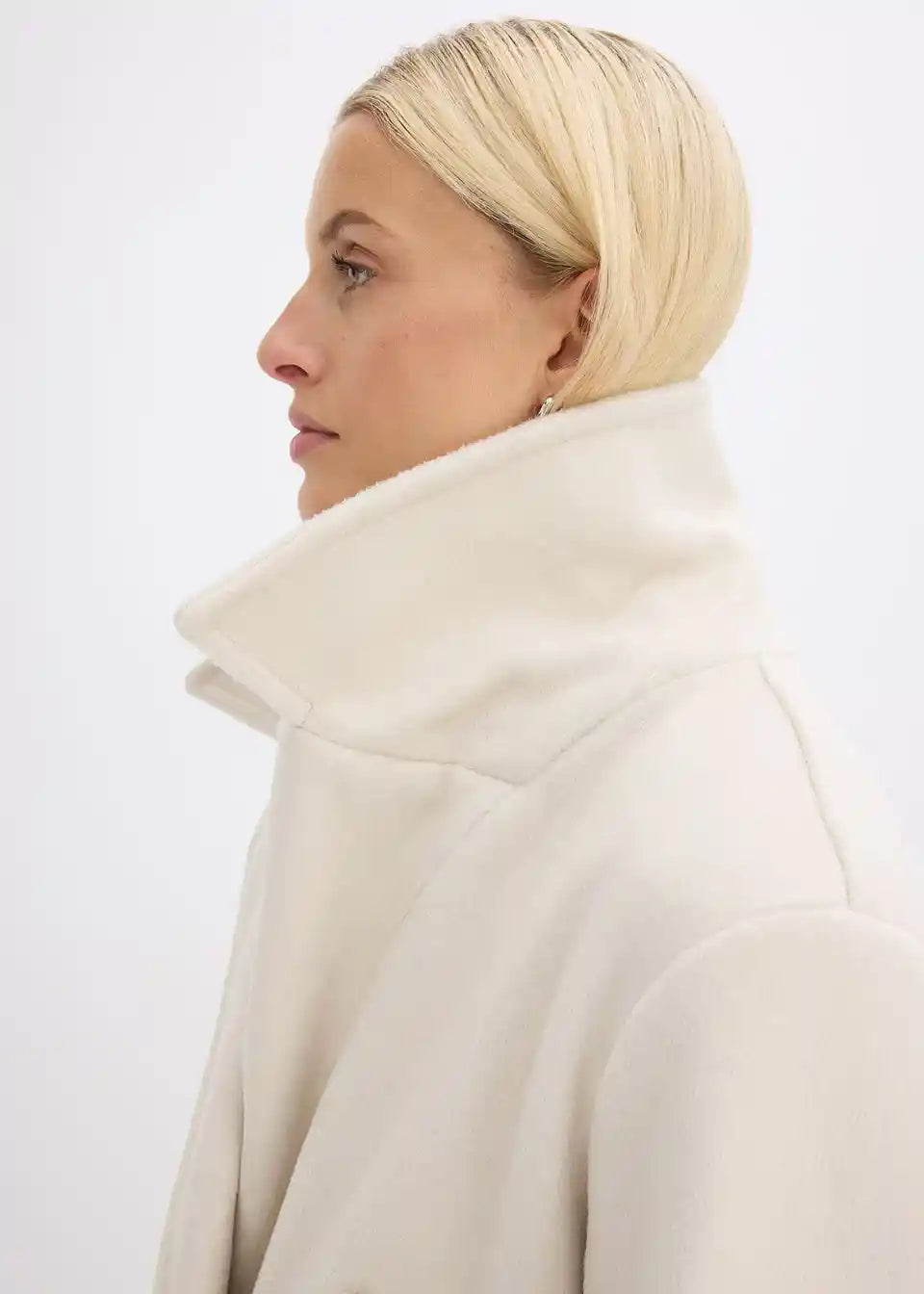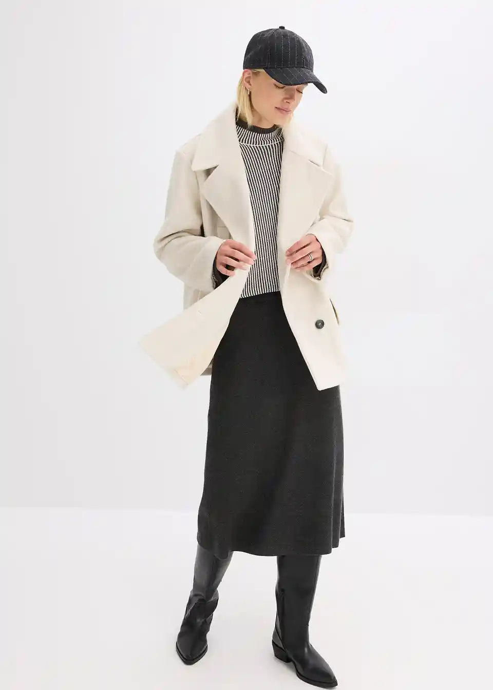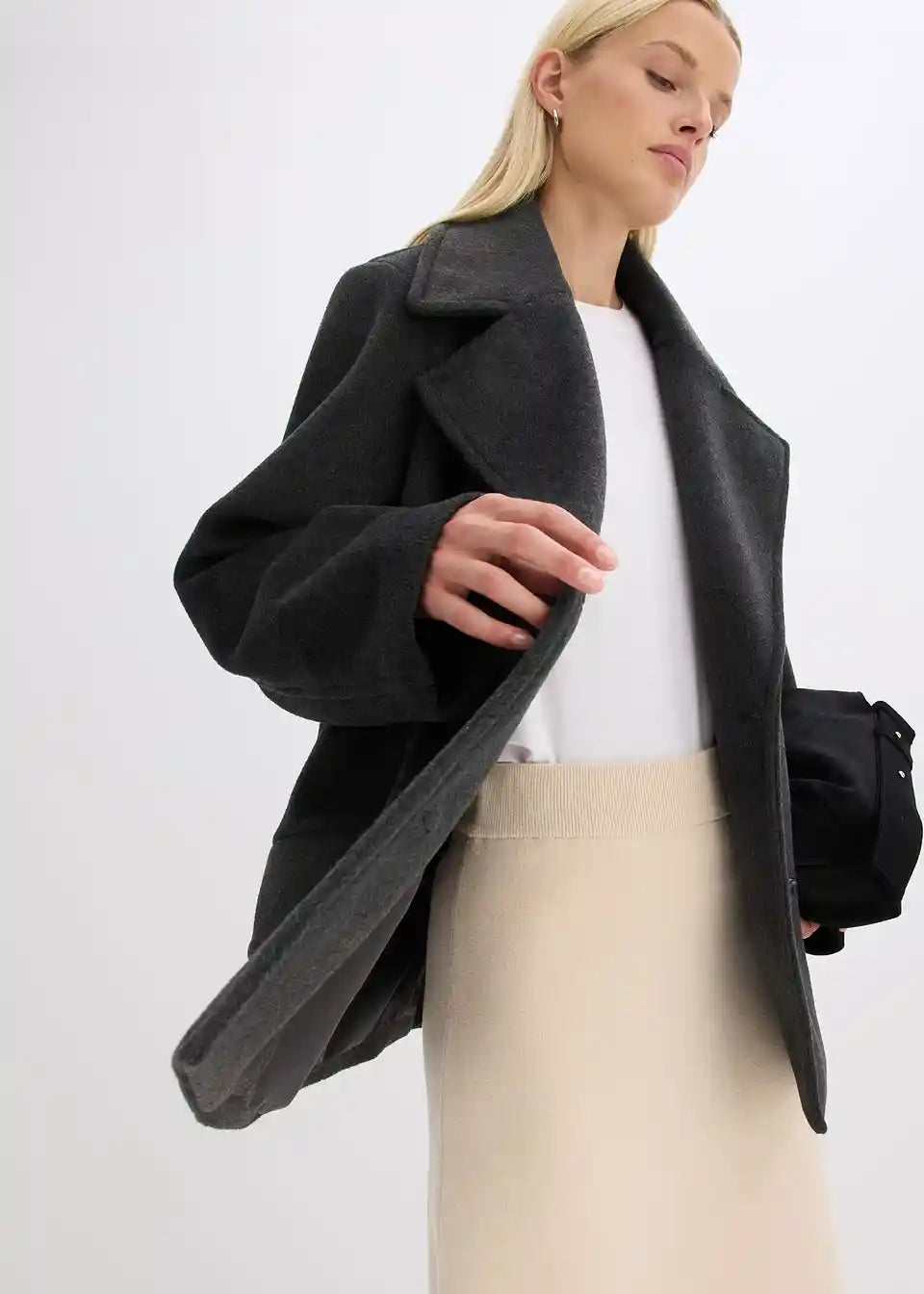 Kratka jakna z dvorednim zapenjanjem z žepi s poklopci in razporkom zadaj