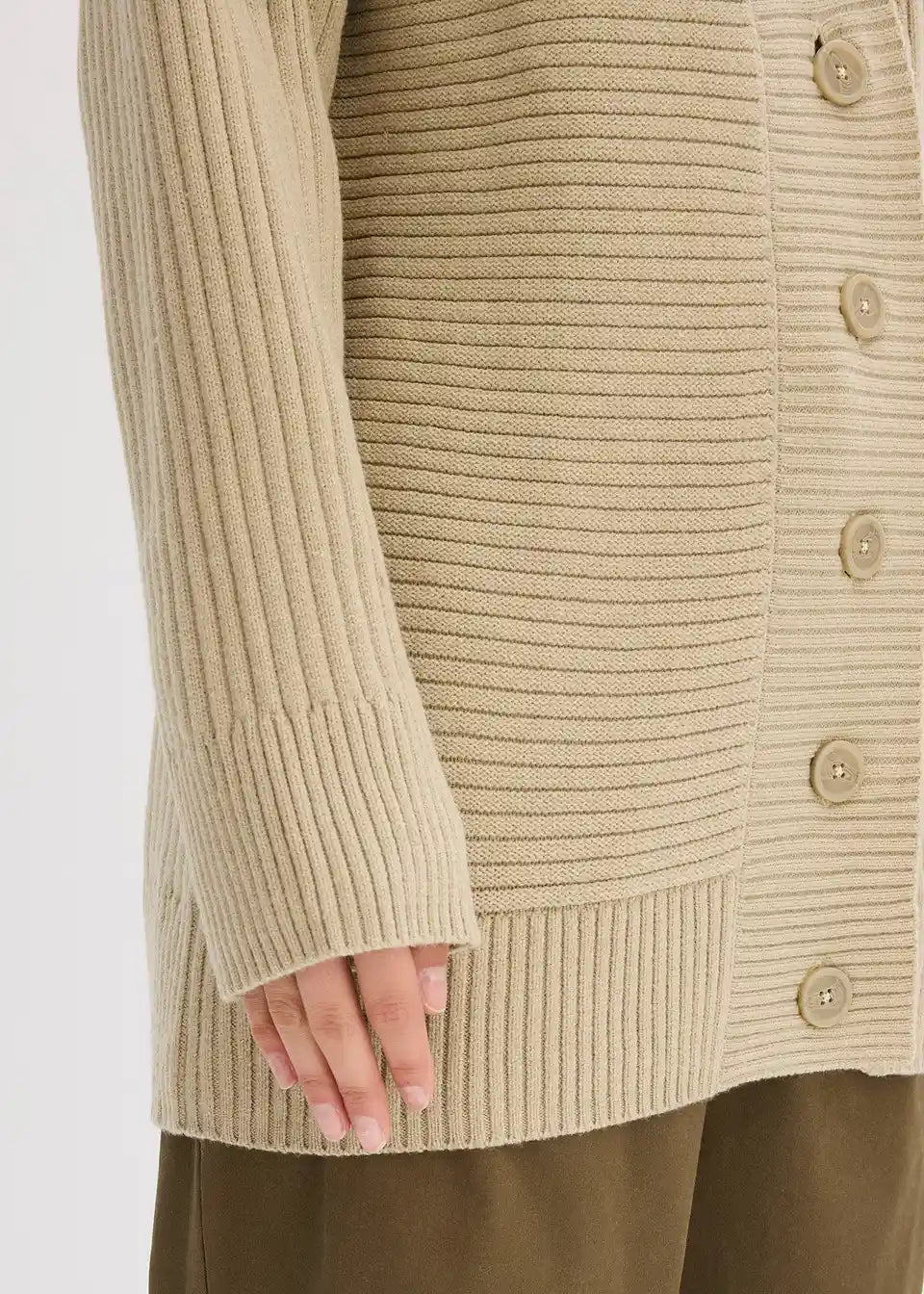 Elegantna pletena jopa s prefinjenim rebrastim pletenim vzorcem