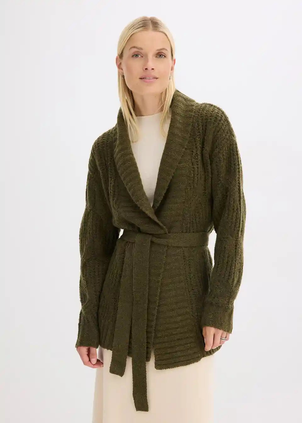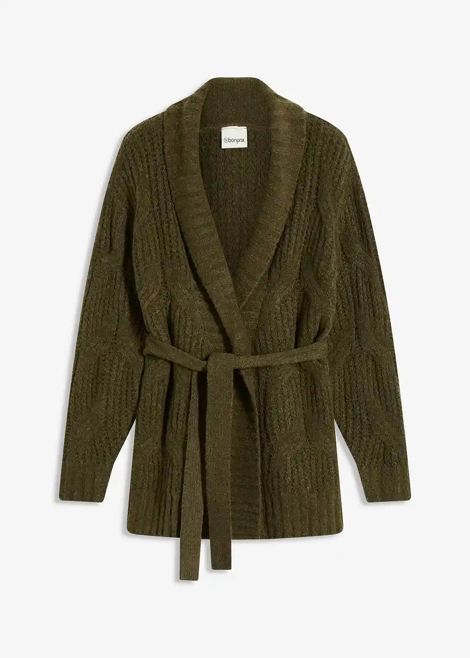 Mehka dolga pletena jopa s pasom za zavezovanje