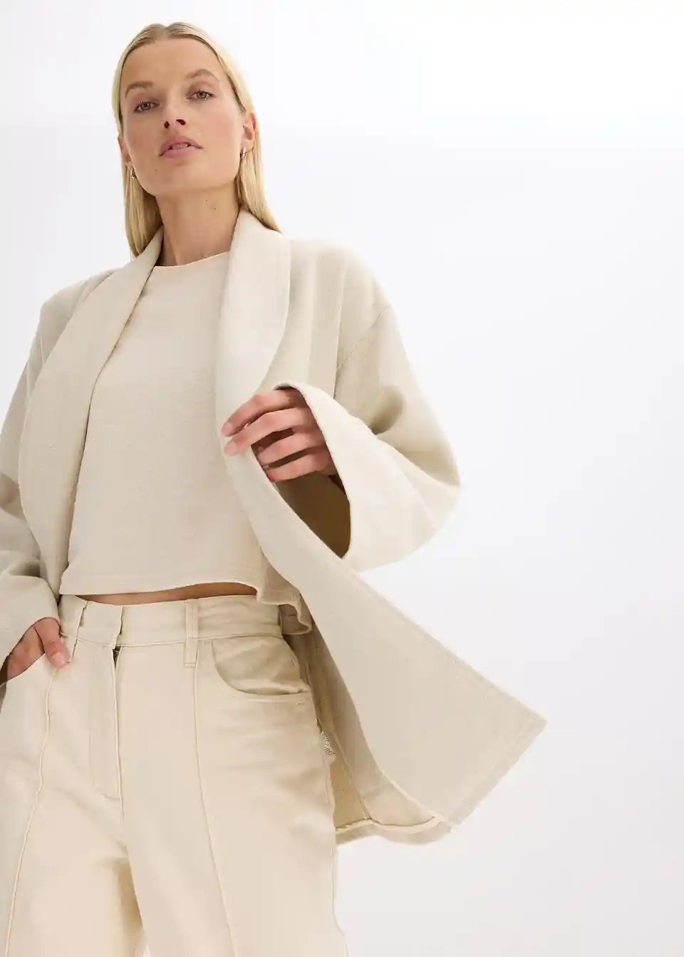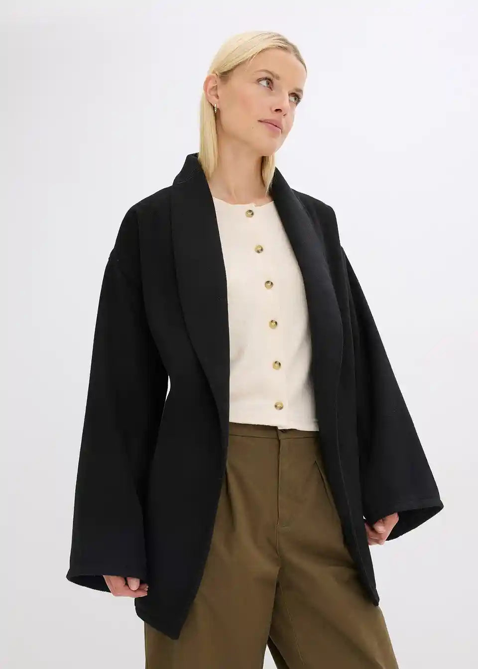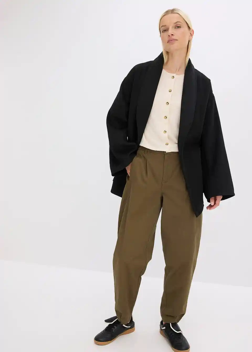 Udobna volnena jakna s trakom za zavezovanje in našitimi žepi