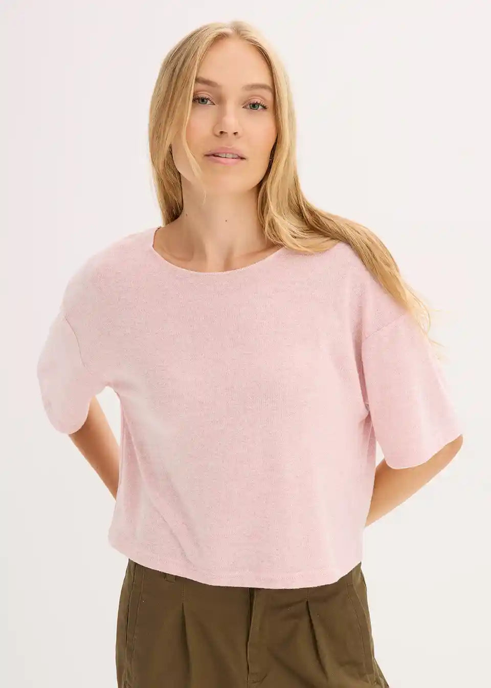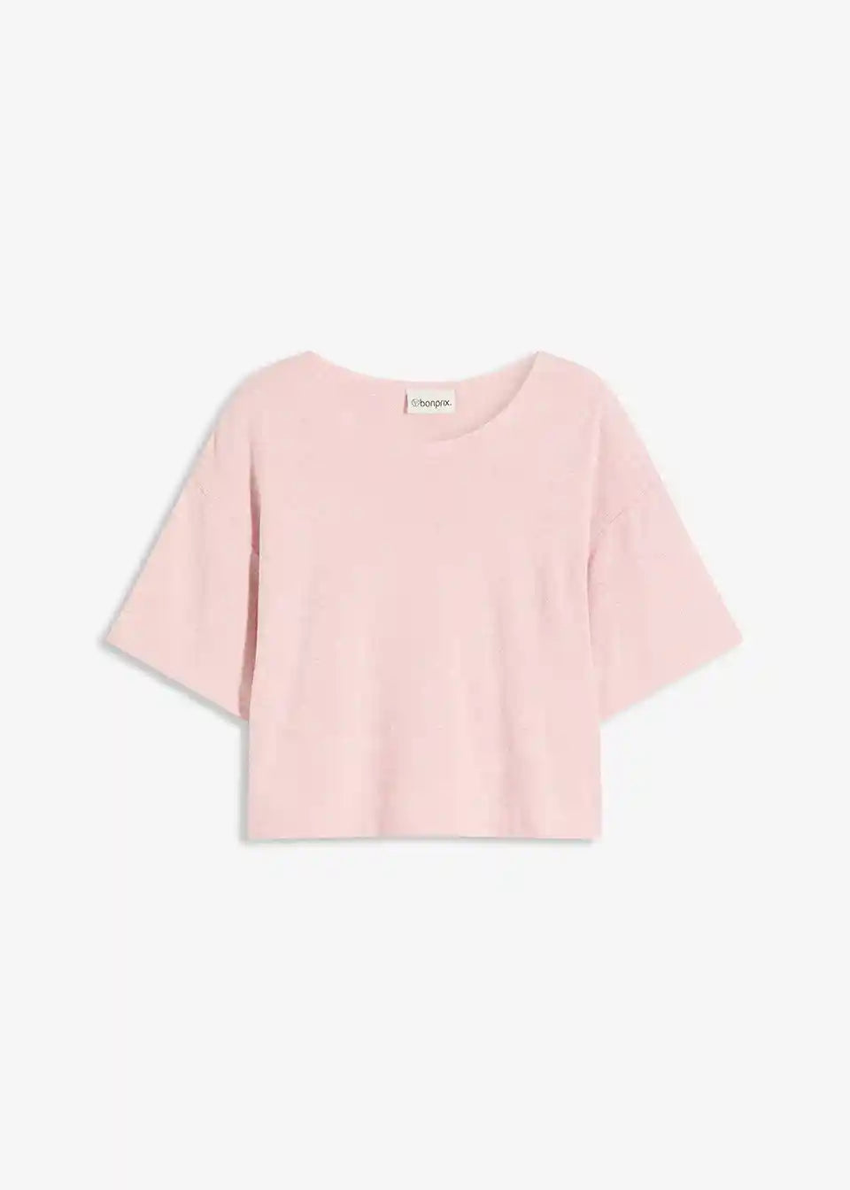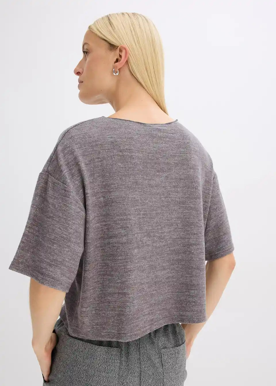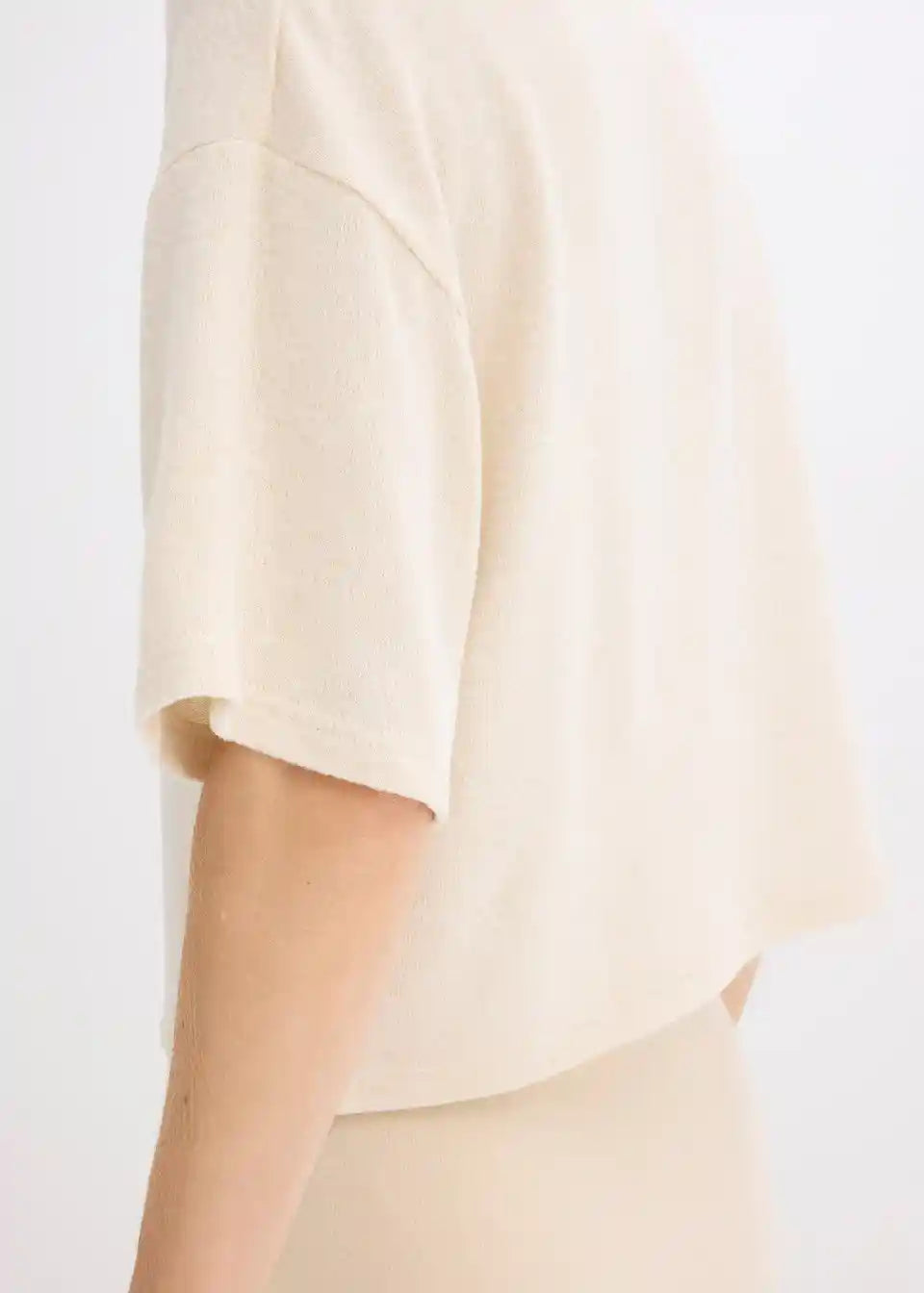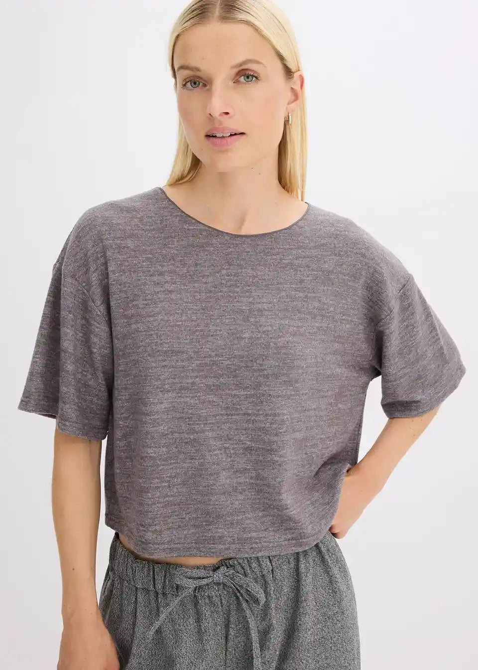 Kratka cropped majica v kvadratnem kroju s širokimi rokavi in okroglim izrezom