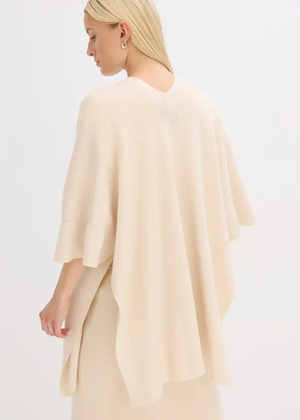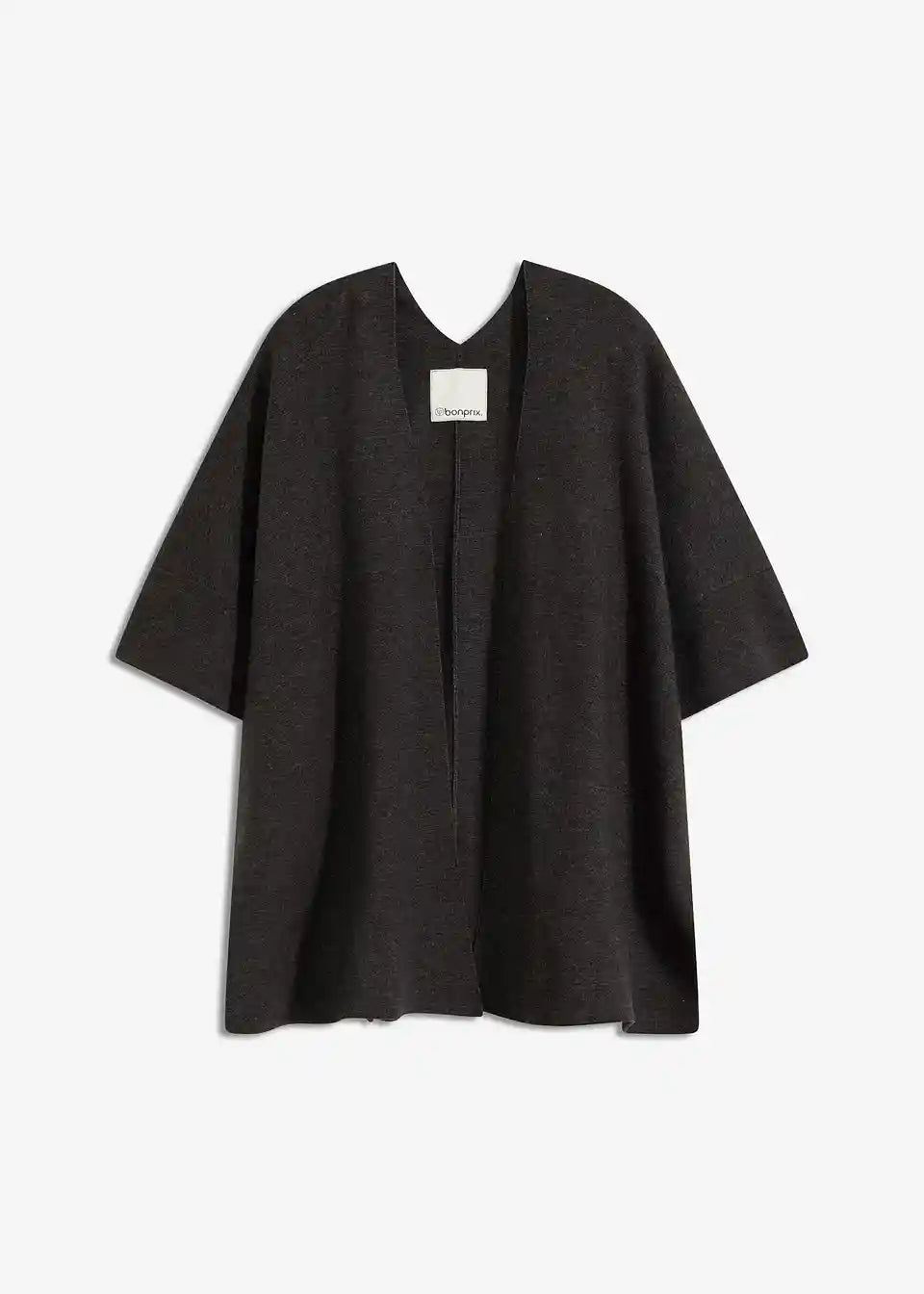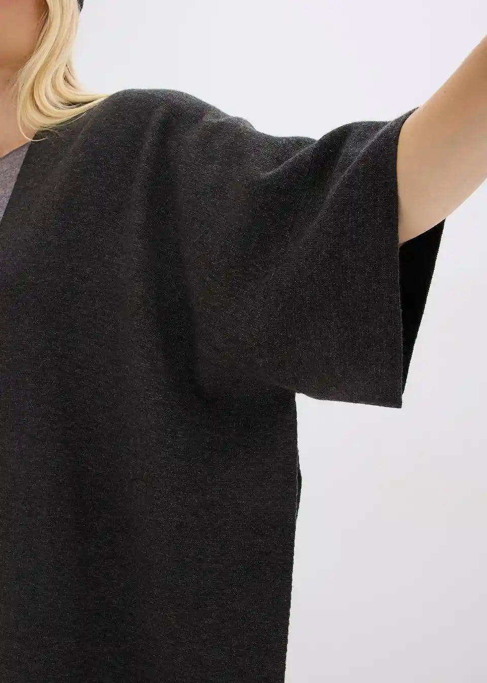 Ohlapen pleten pončo s podaljšanimi kratkimi rokavi