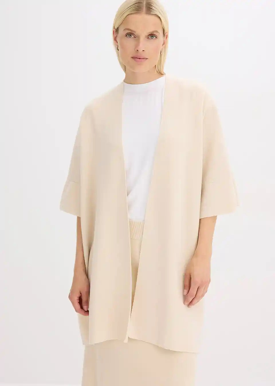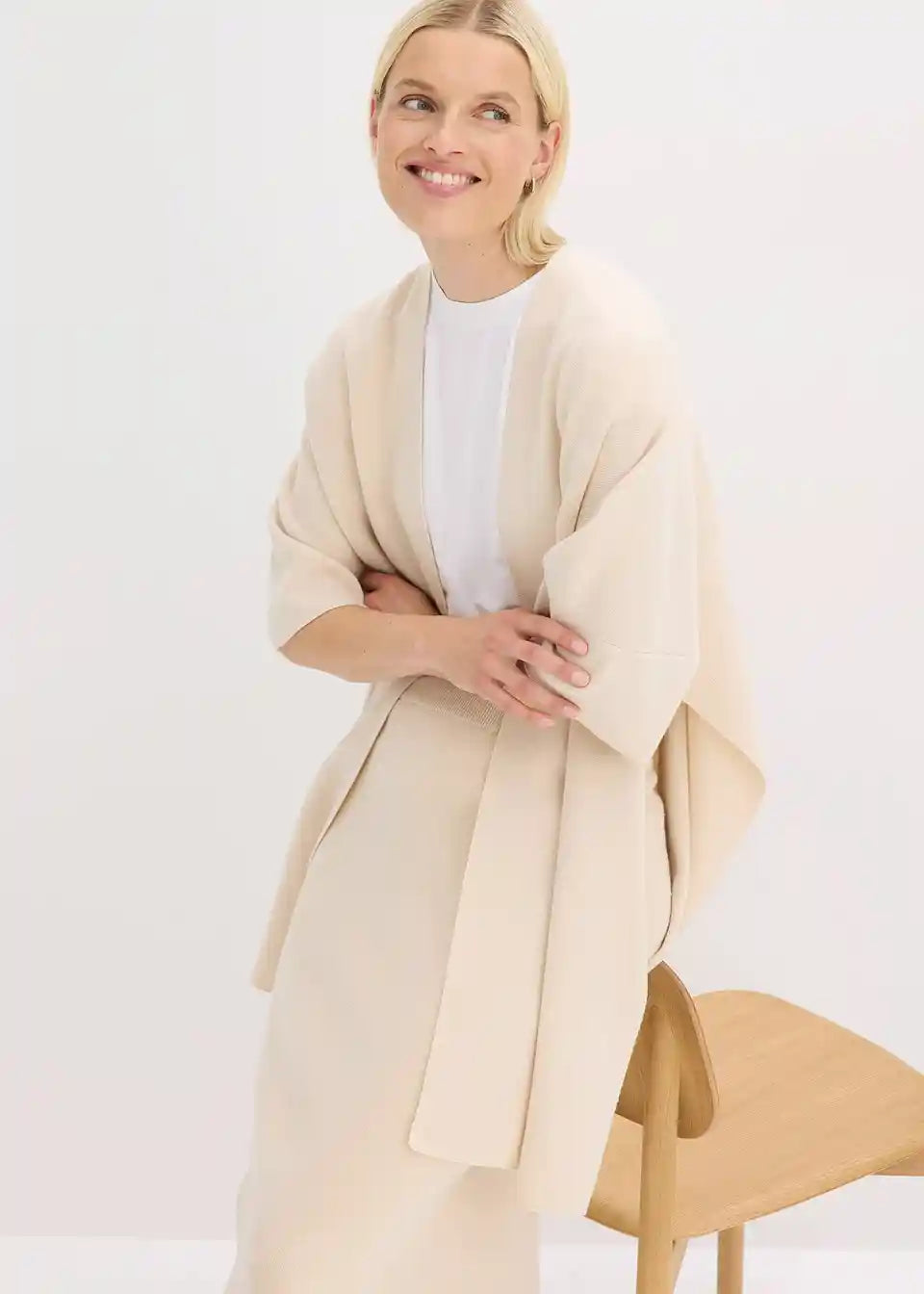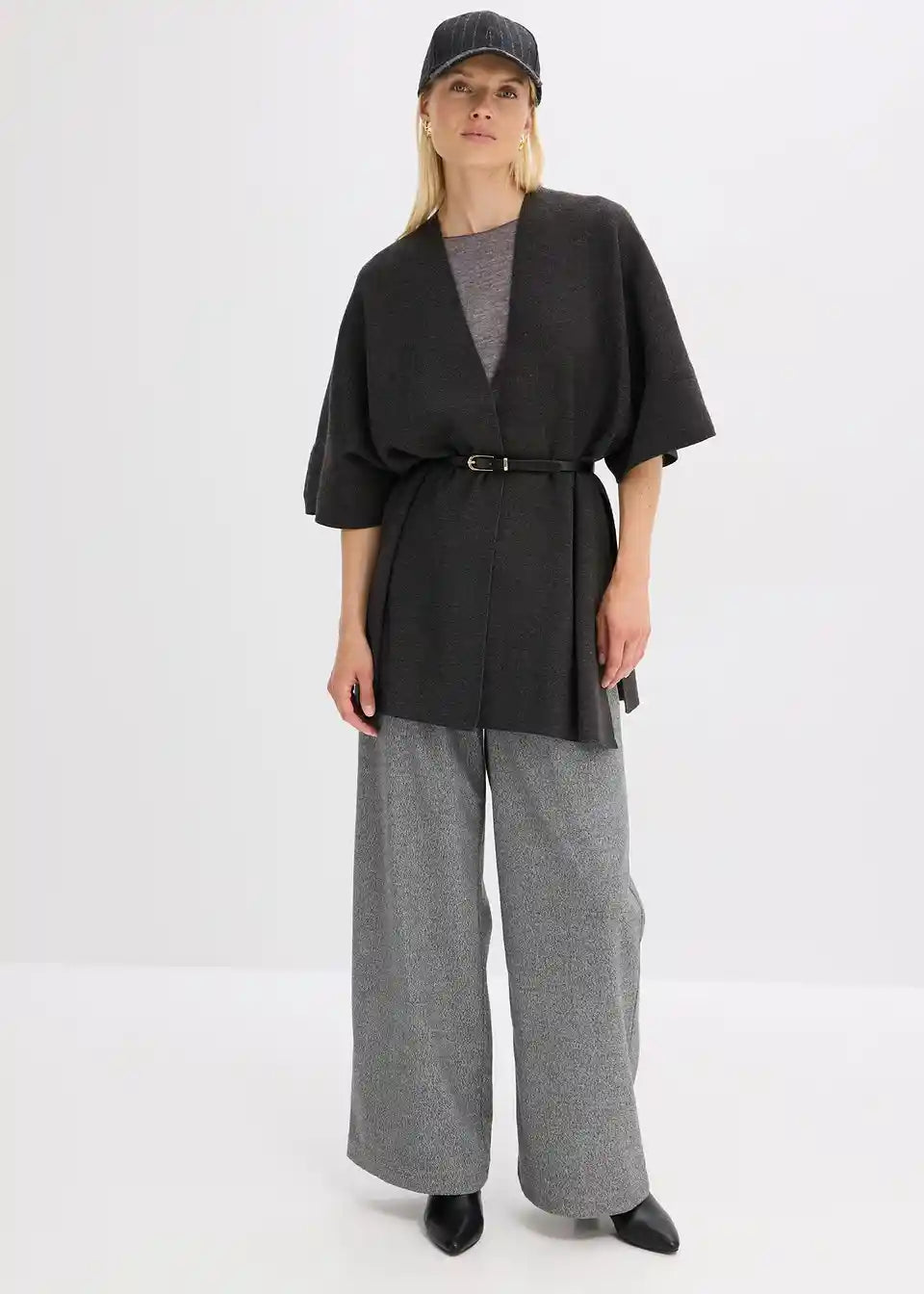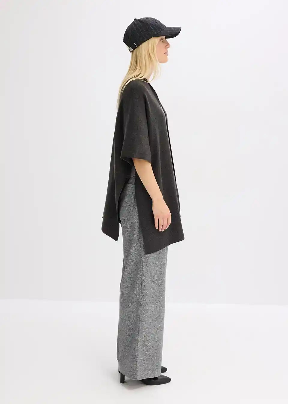 Ohlapen pleten pončo s podaljšanimi kratkimi rokavi