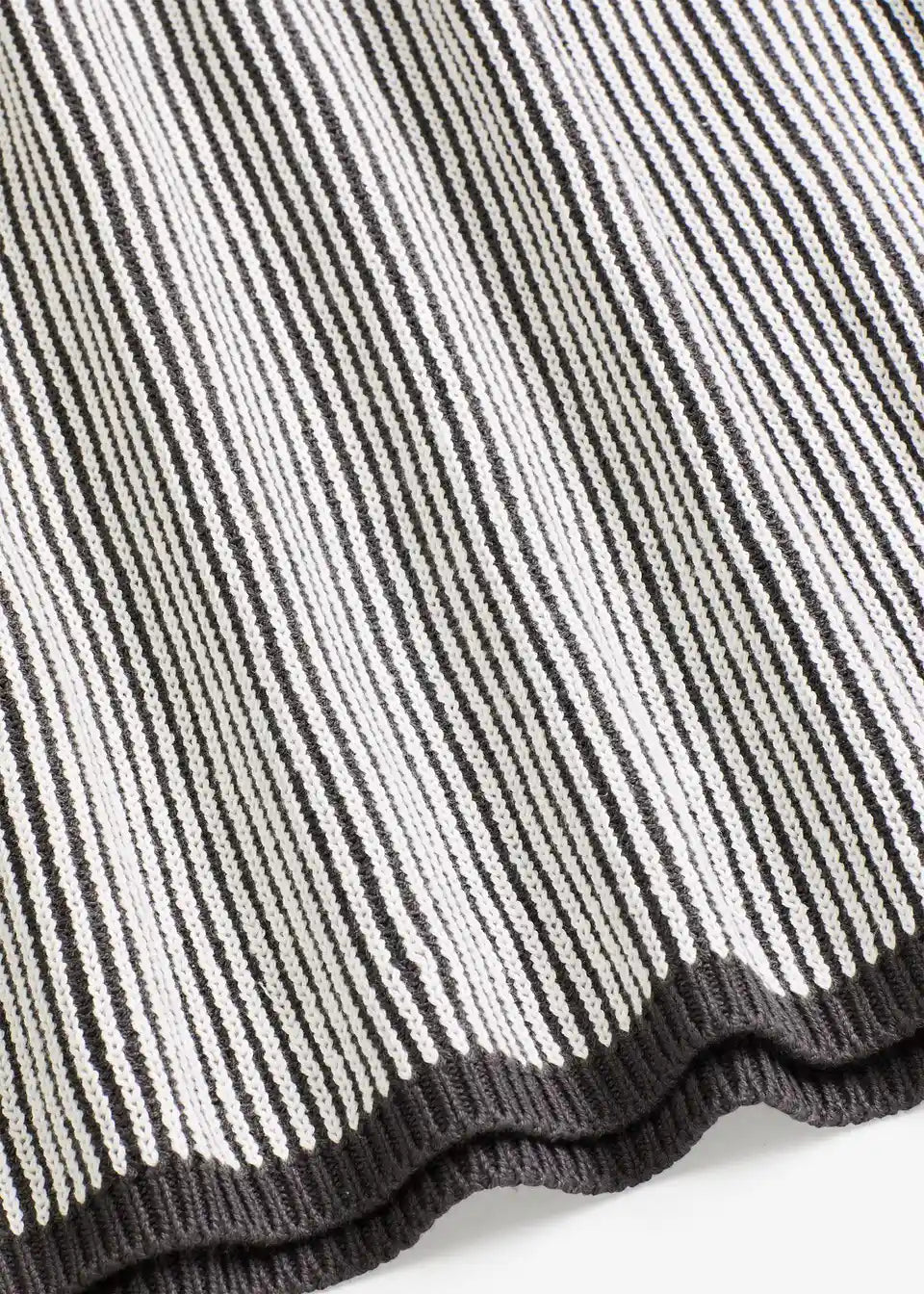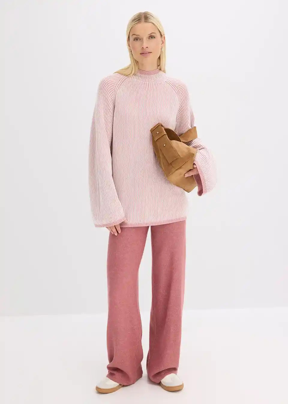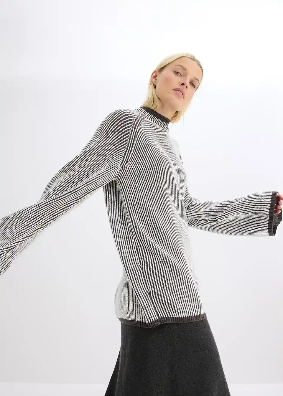 Ohlapen grobo pleten pulover s puli ovratnikom s črtastim vzorcem
