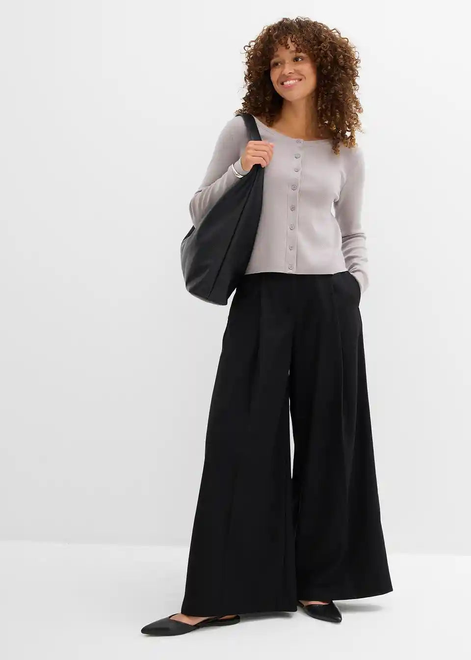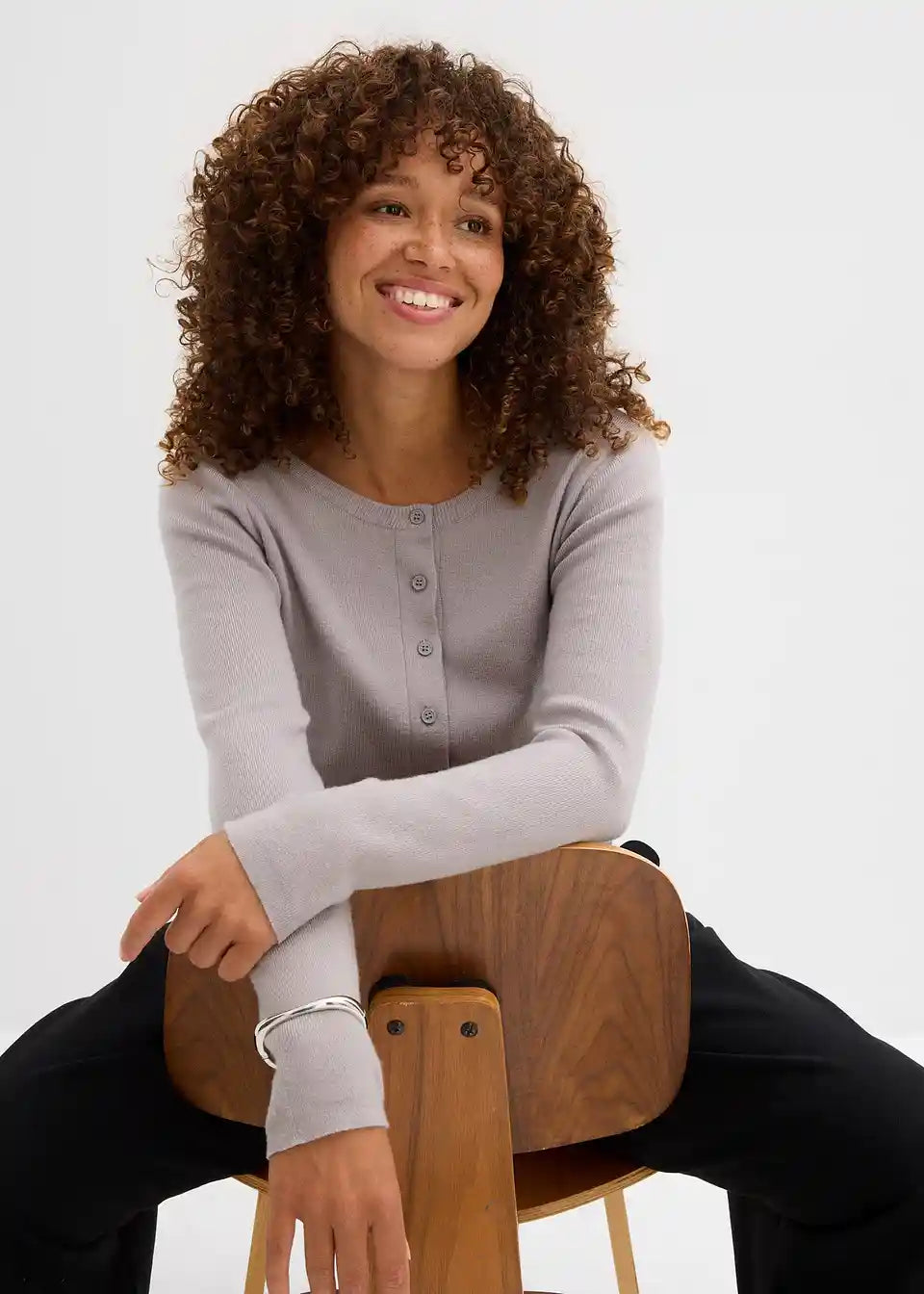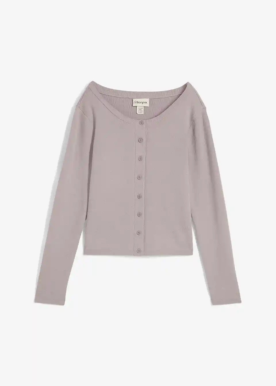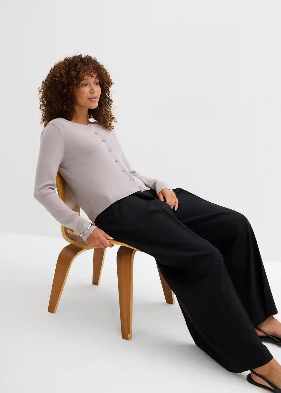 Kratko krojena fino pletena jopa z letvijo z gumbi
