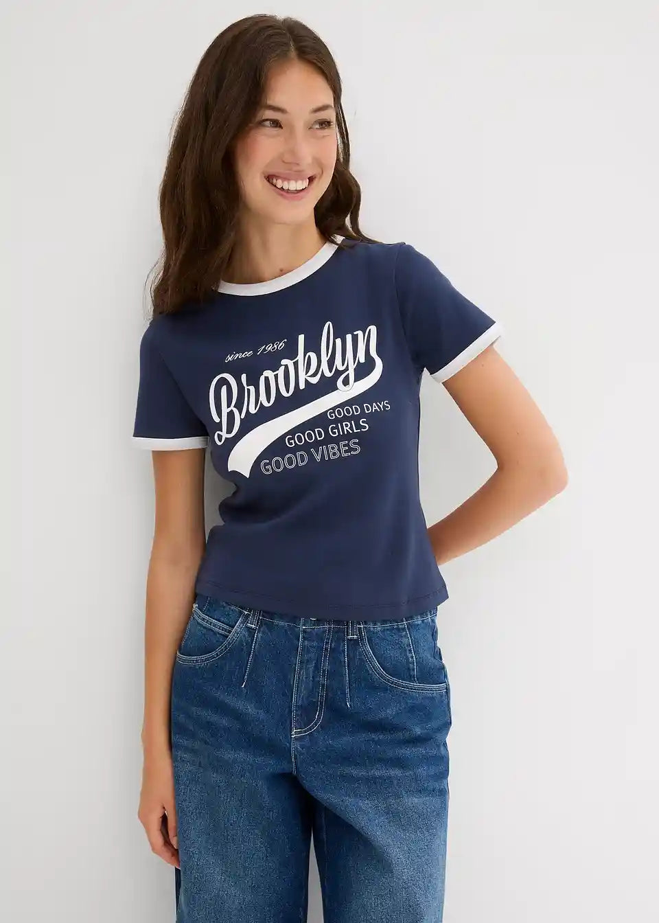 Moderna majica iz čiste ekološke bombažne tkanine s potiskom