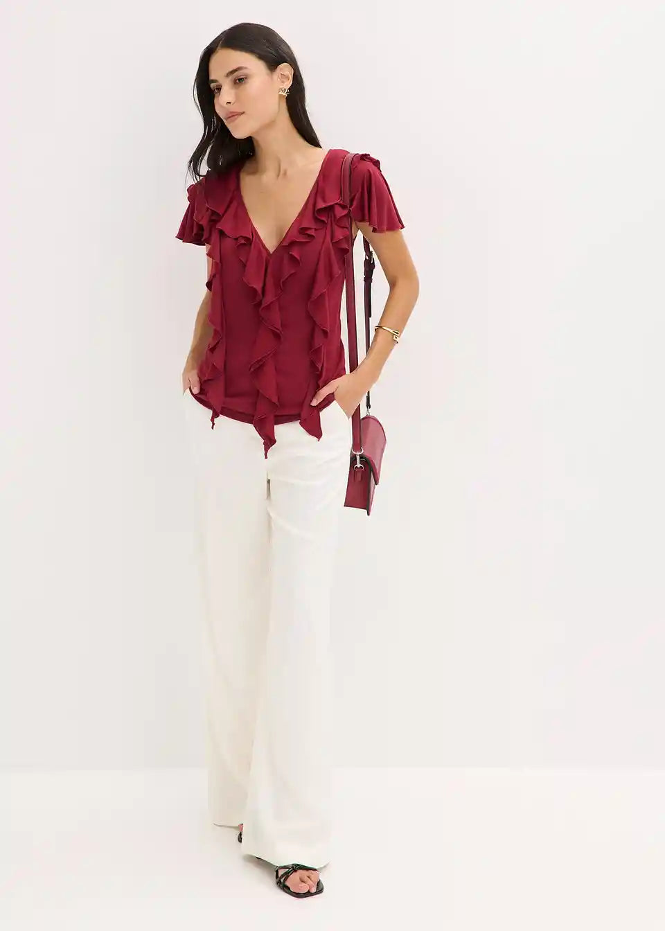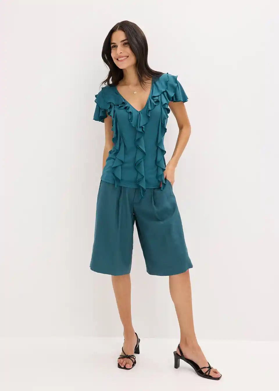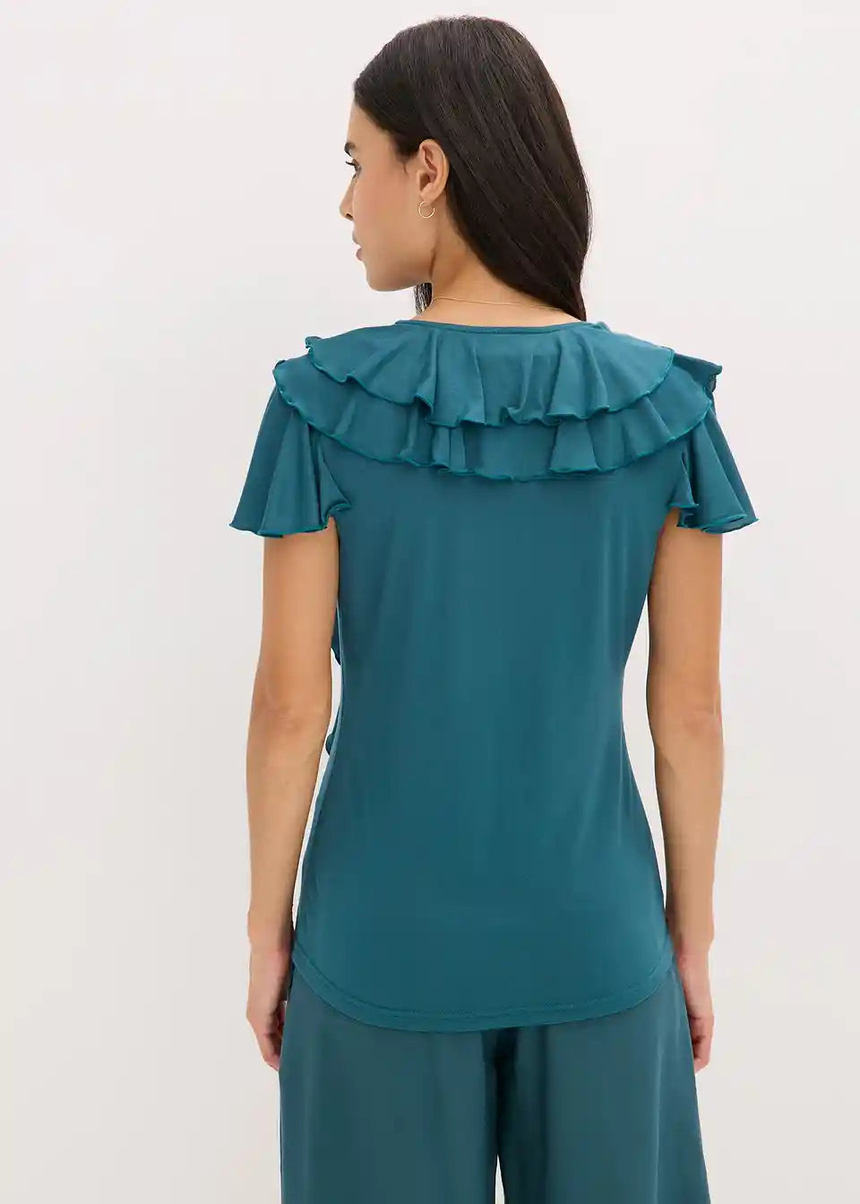 Majica z volani iz mehkega materiala z deležem modala