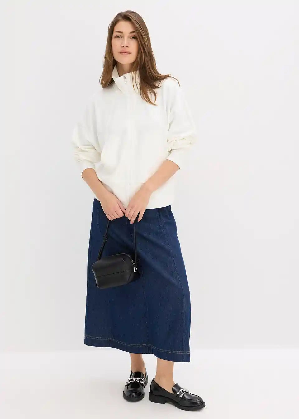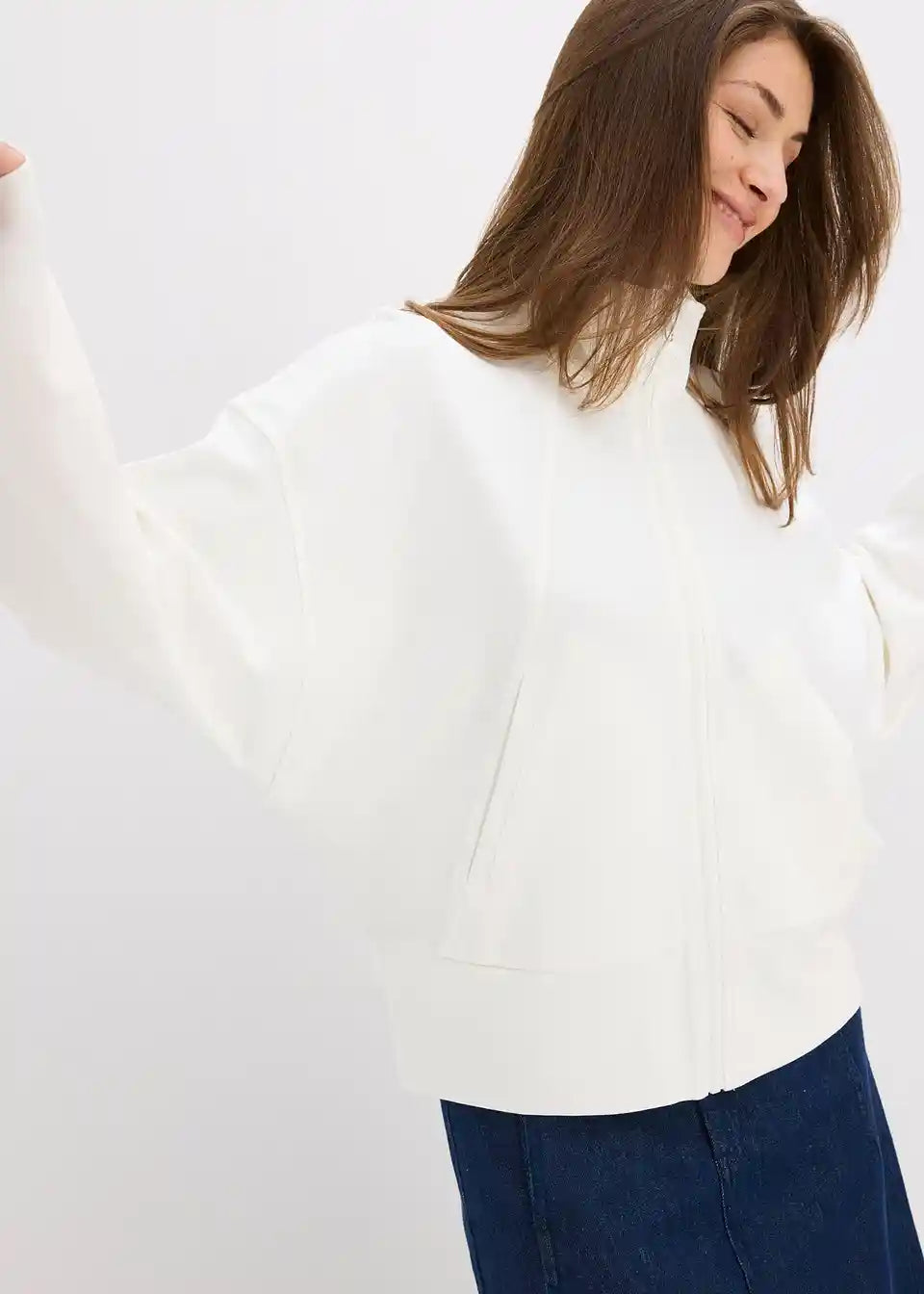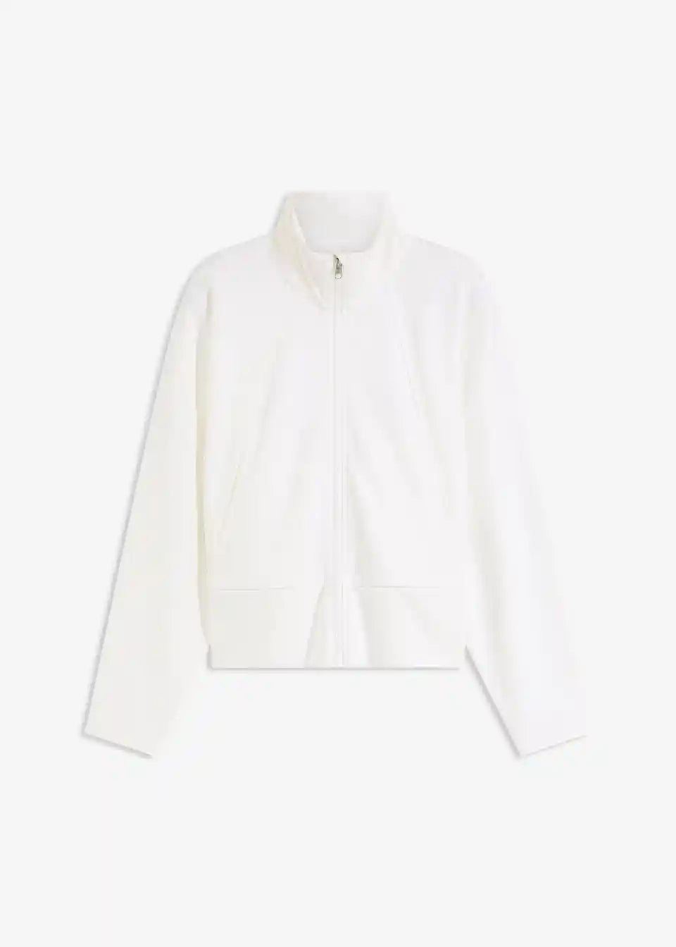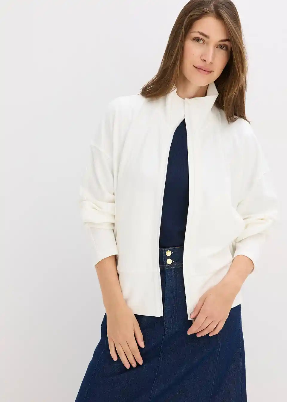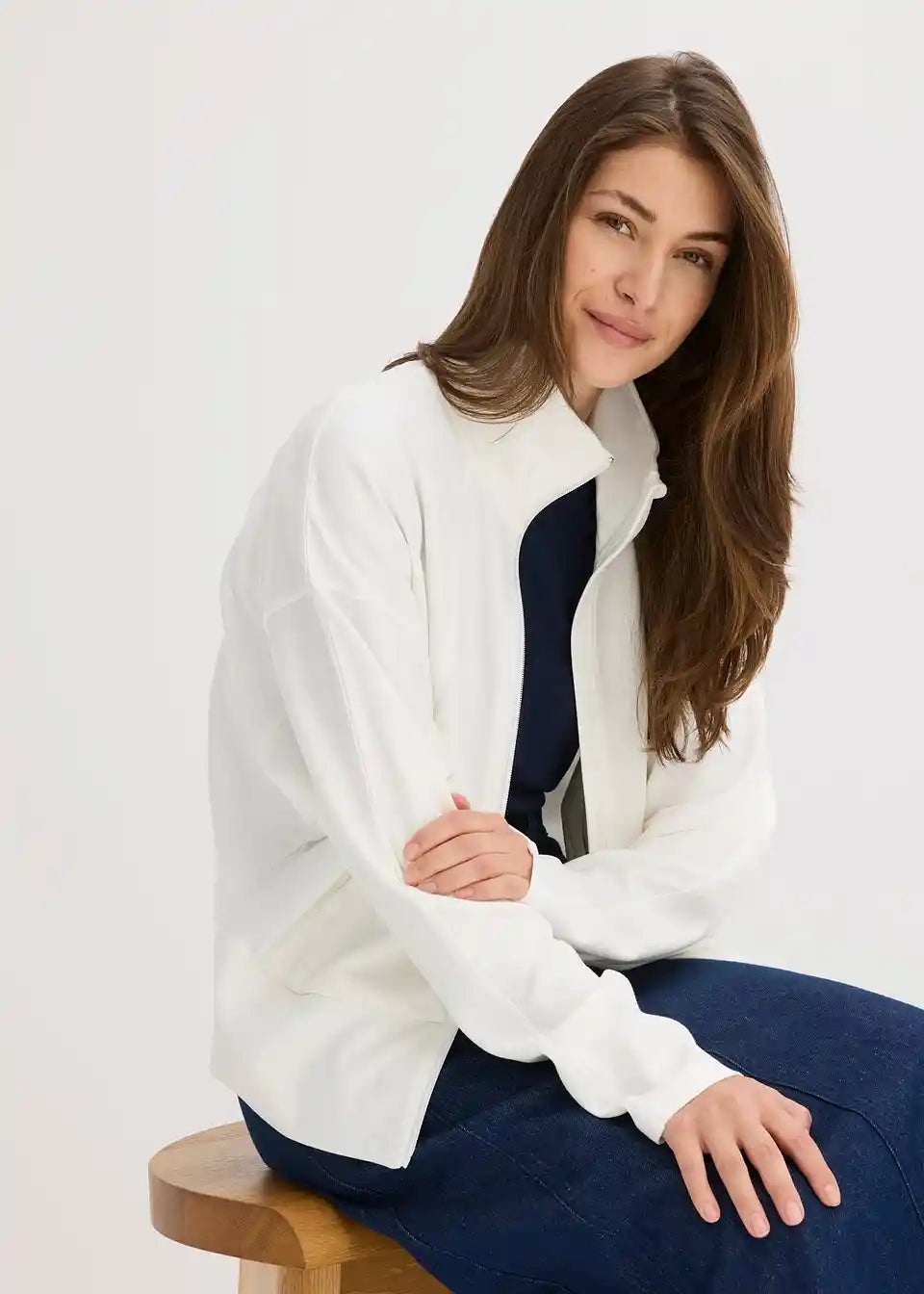 Jopa iz trikoja z zadrgo, pokončnim ovratnikom in poševnimi žepi z letvico spredaj