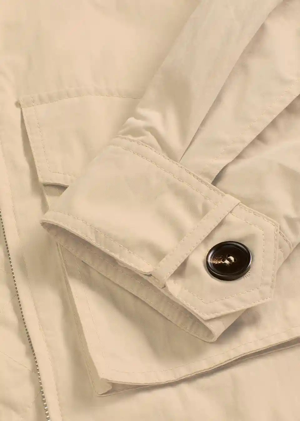Kratka trenčkot jakna z zadrgo, z našitimi žepi ter kentskim ovratnikom