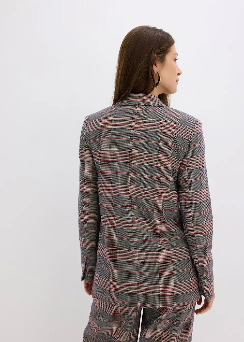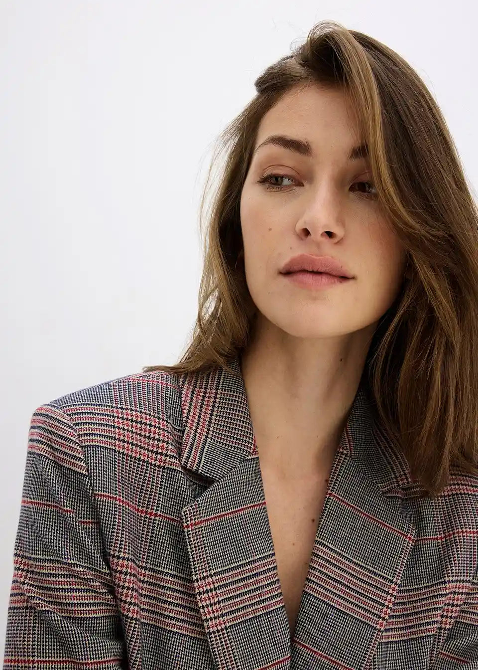 Enoredni blazer z močno poudarjenimi ramenskimi predeli zaradi blazinic in žepi s poklopci