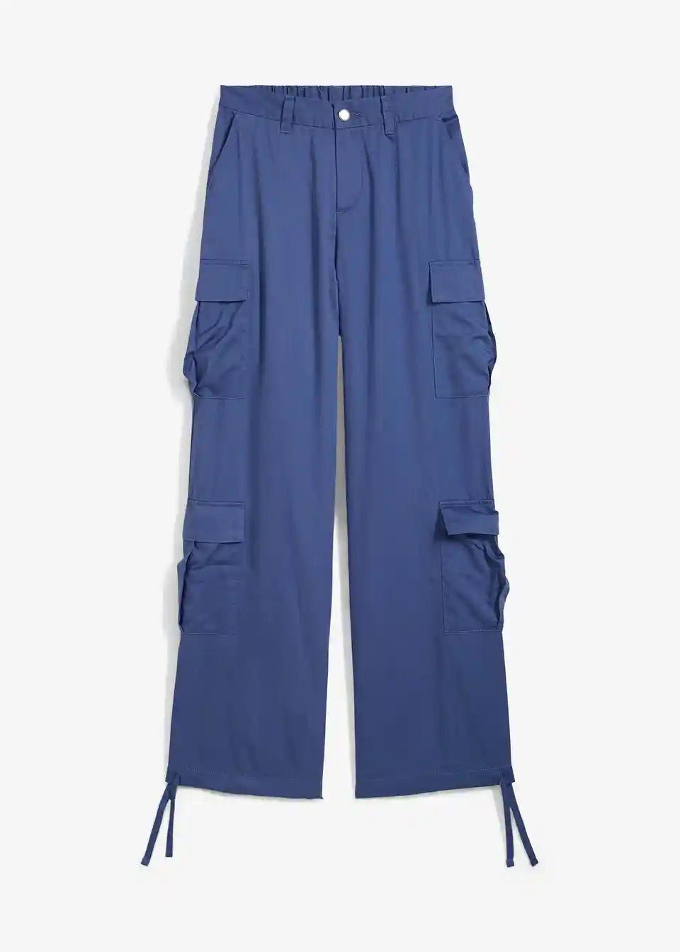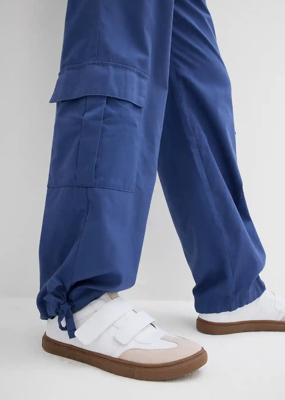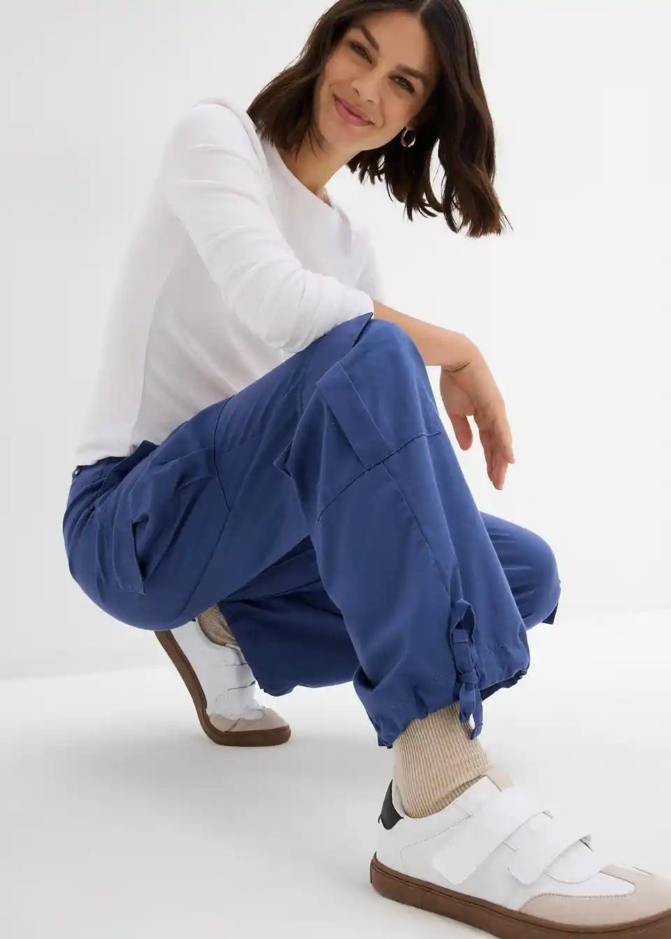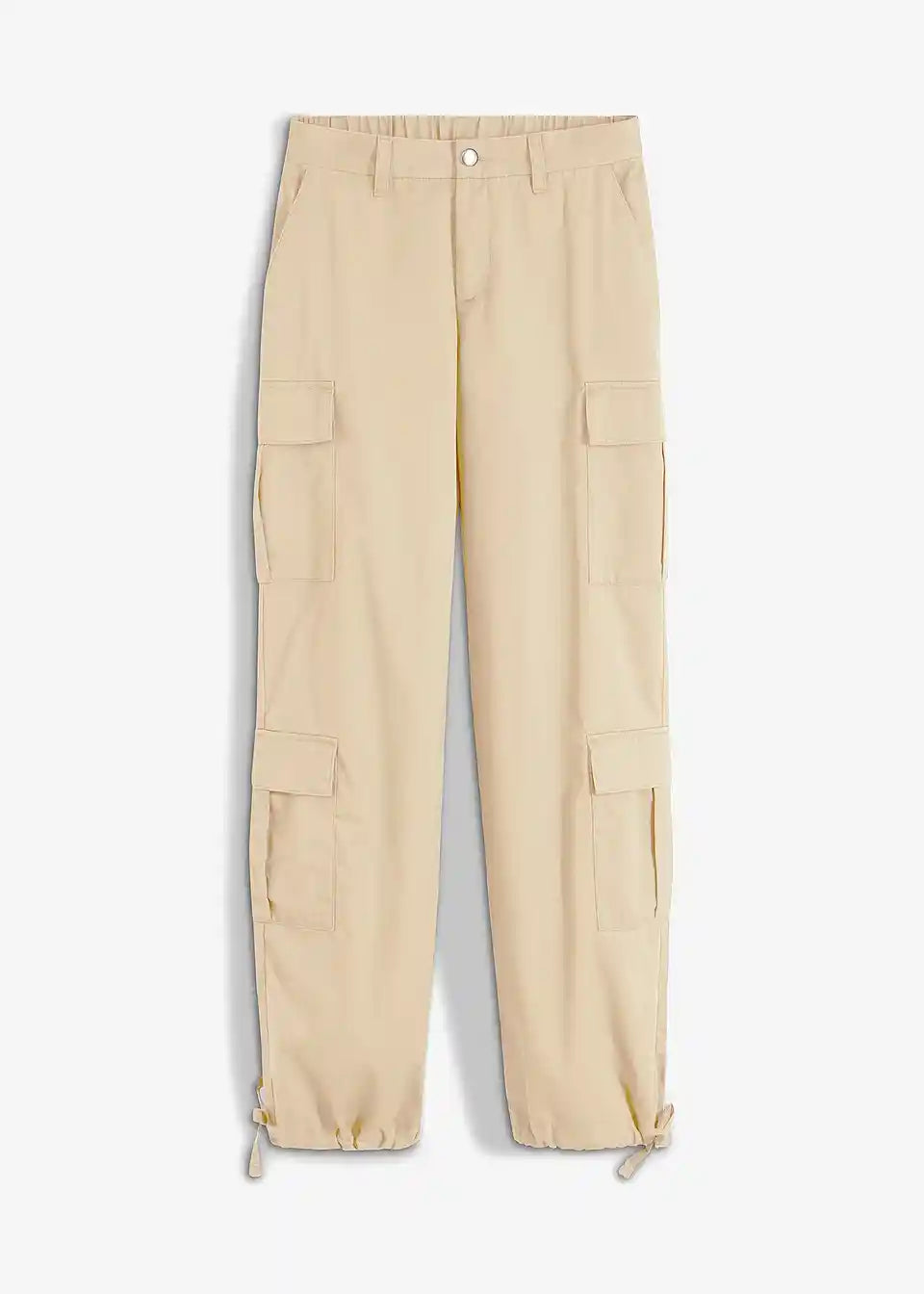 Udobne cargo hlače s stranskimi žepi in detajlom zavezovanja na robu
