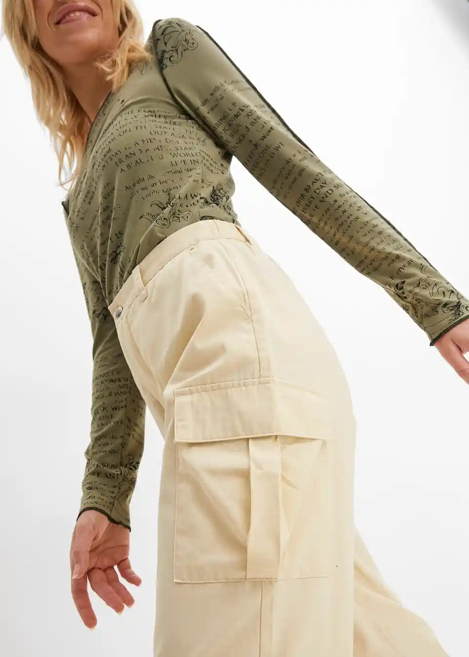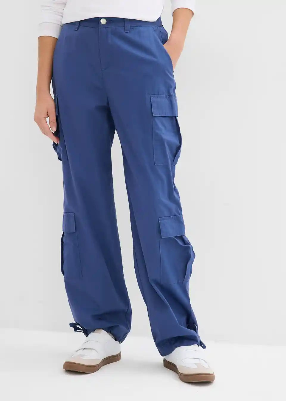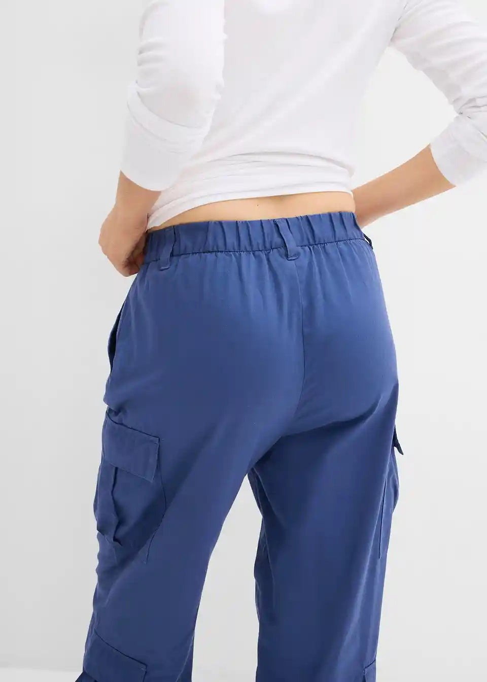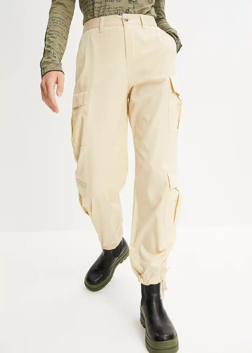 Udobne cargo hlače s stranskimi žepi in detajlom zavezovanja na robu