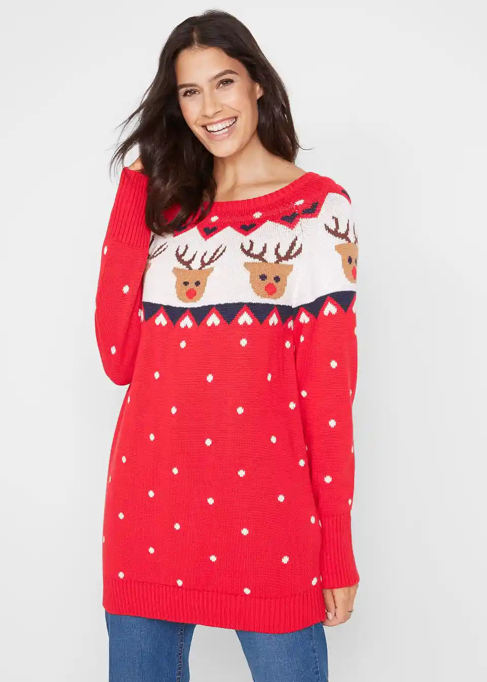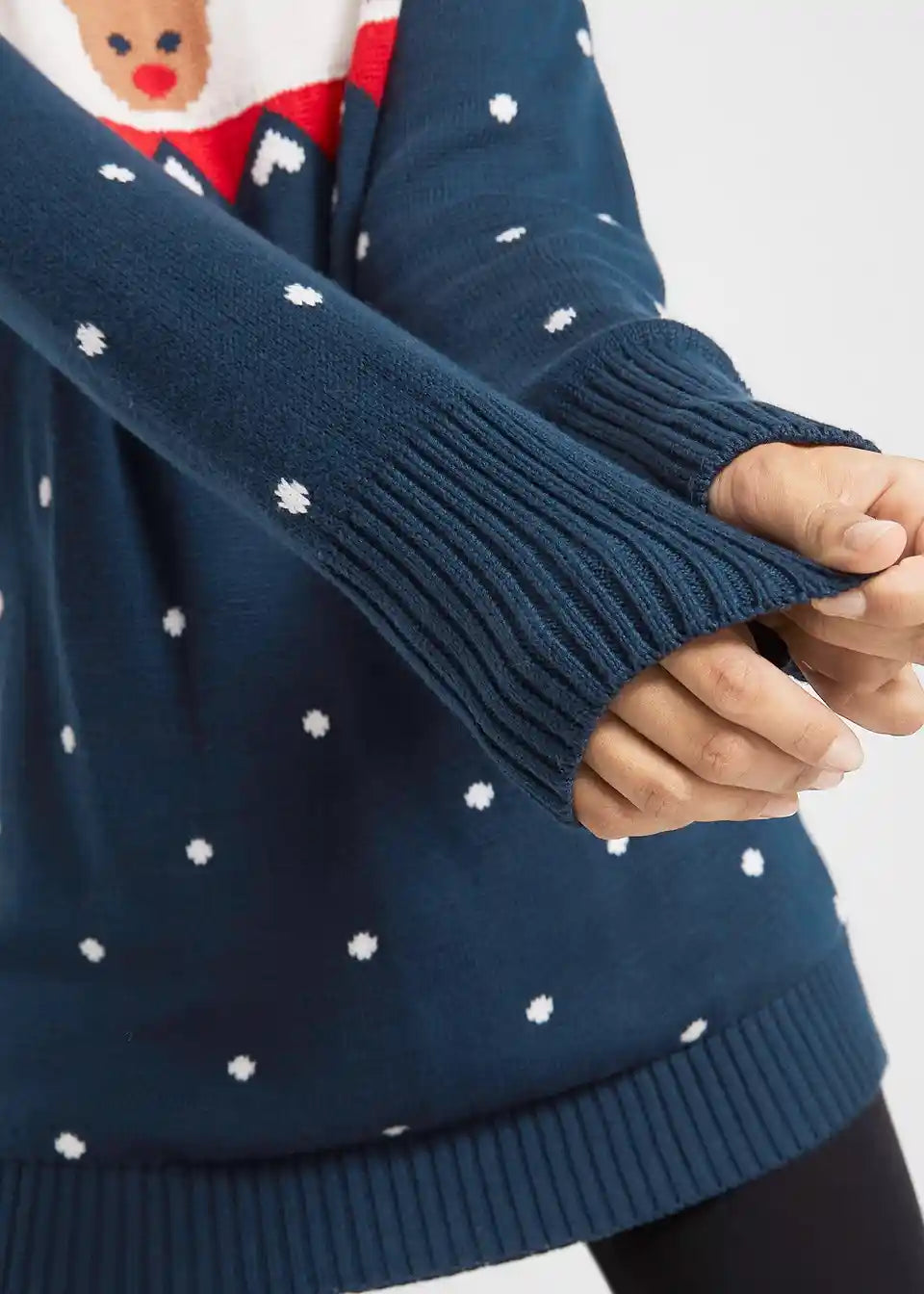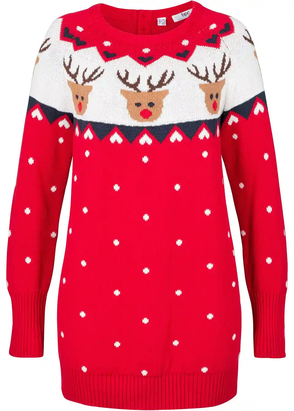 Božični pulover z motivom jelenčka in detajli z gumbi