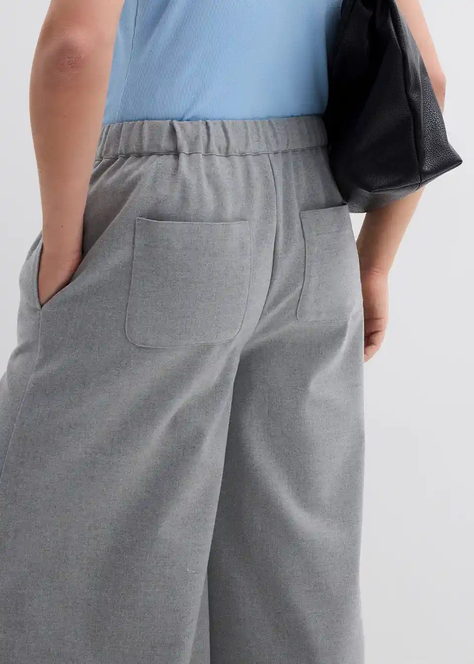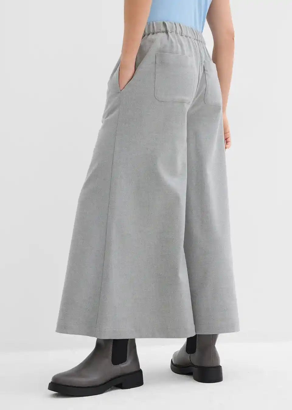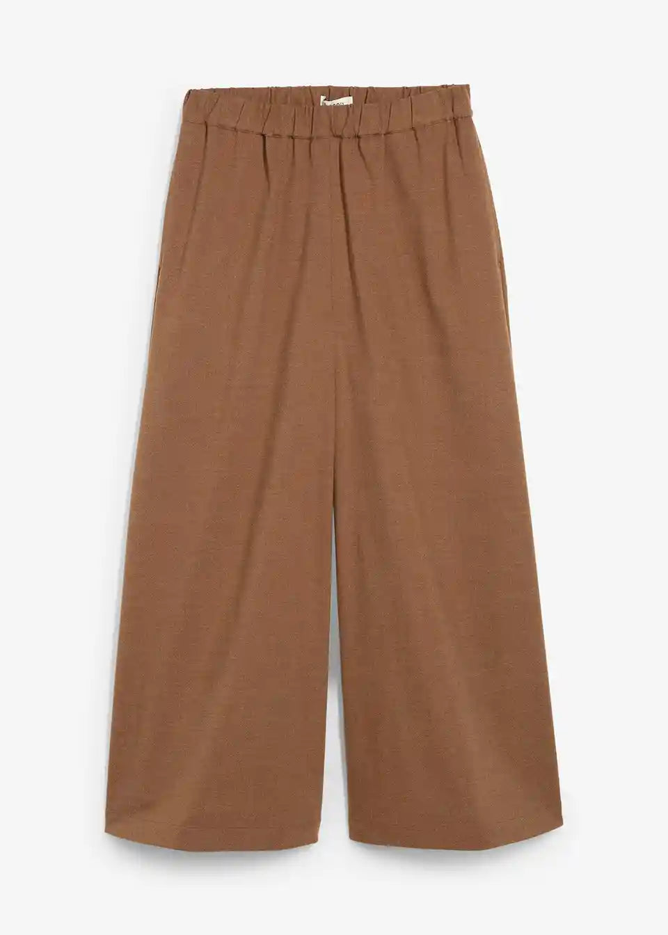 Culotte hlače v 7/8-dolžini z visoko krojenim elastičnim pasom. V širokem kroju.