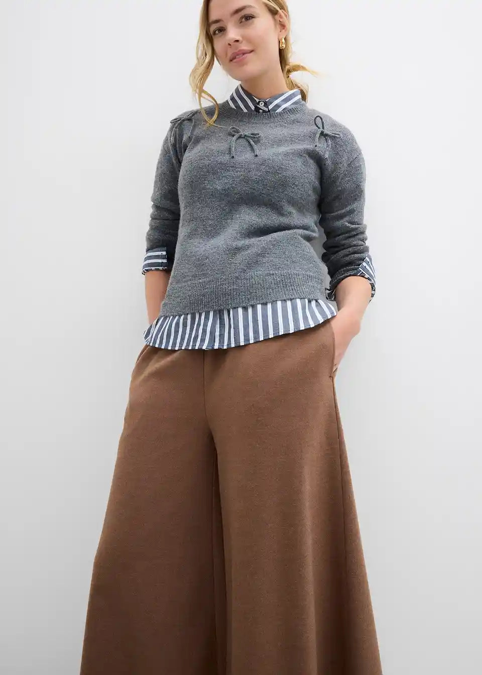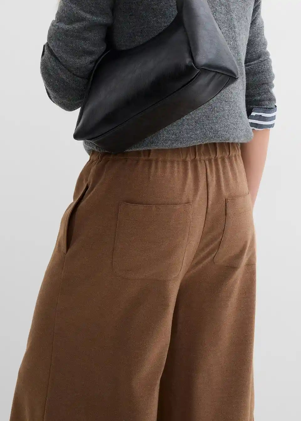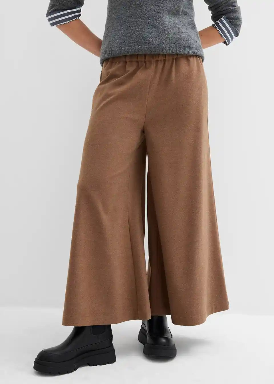 Culotte hlače v 7/8-dolžini z visoko krojenim elastičnim pasom. V širokem kroju.