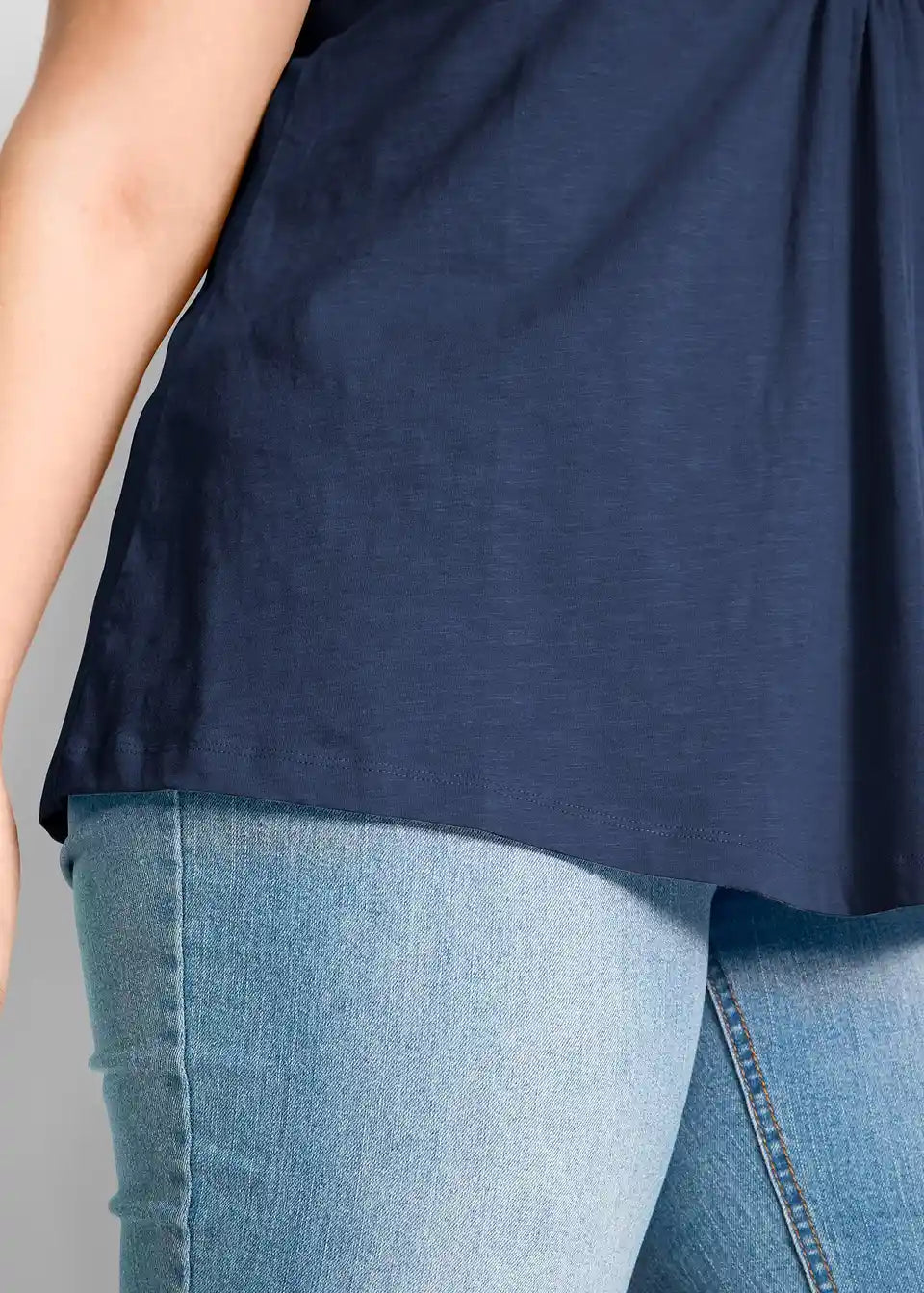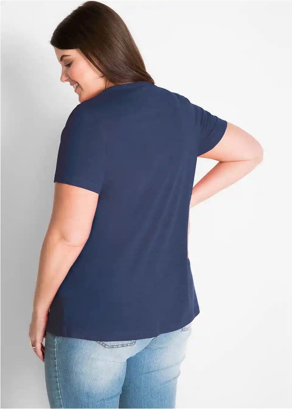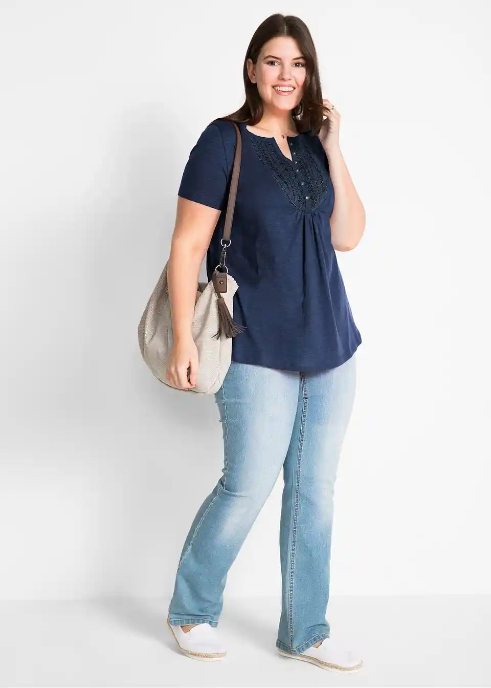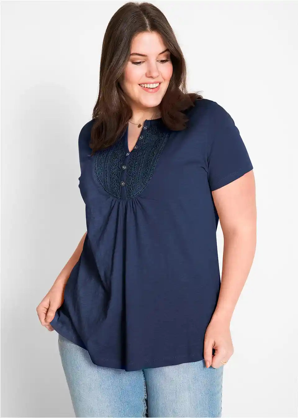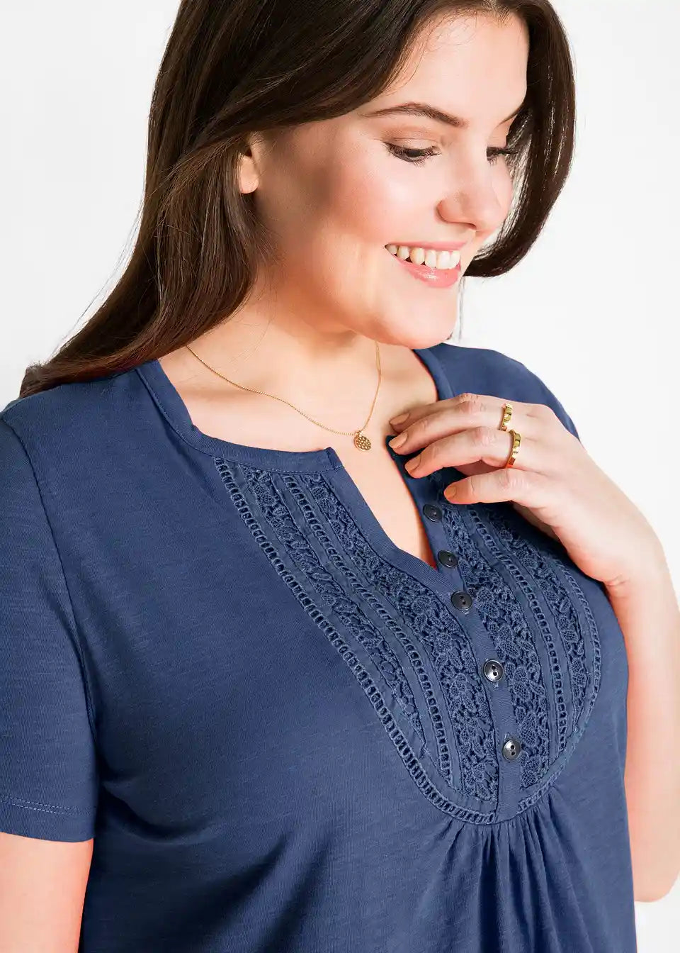 Lepa majica iz flamskega prediva z privlačno čipko in Henley ovratnikom