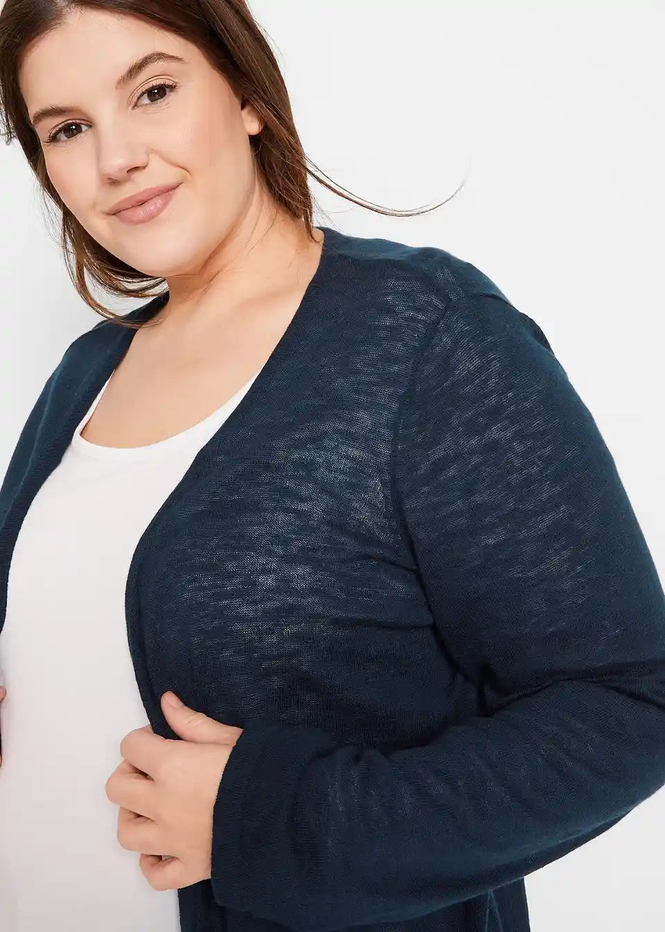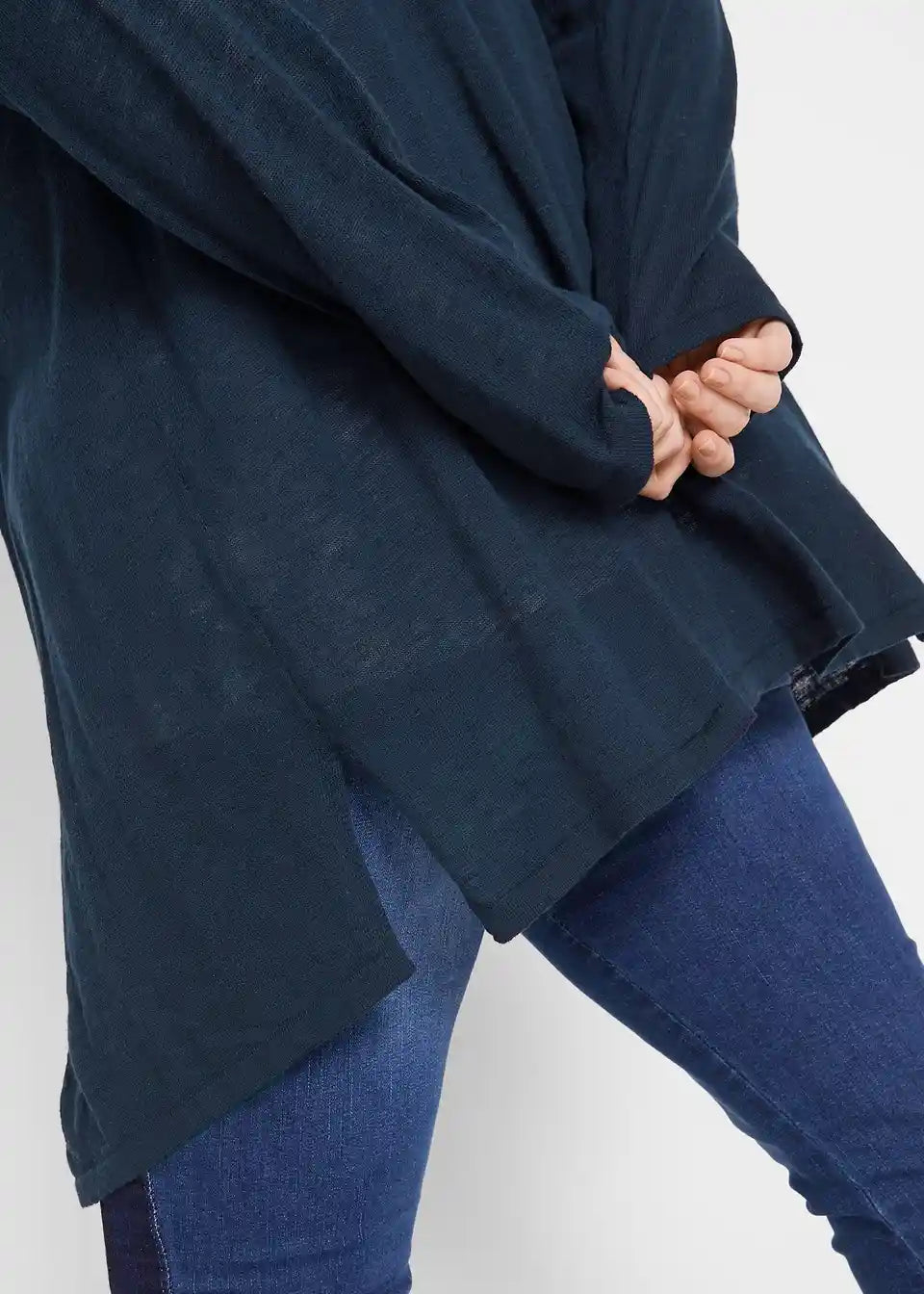 Sproščen pleteni suknjič z razporki