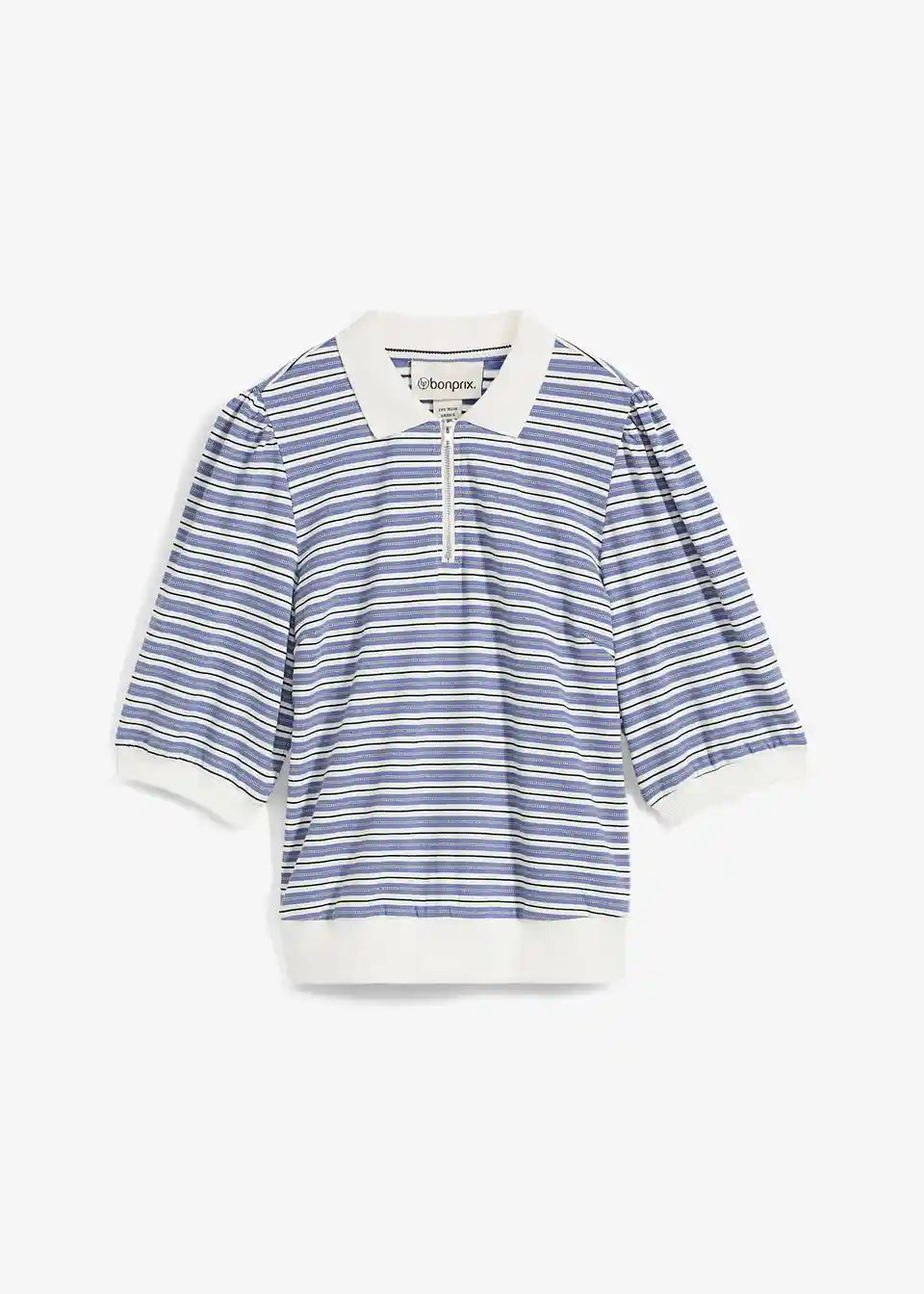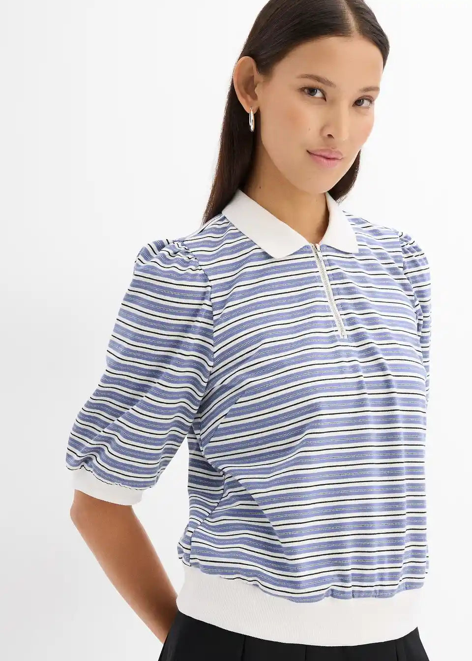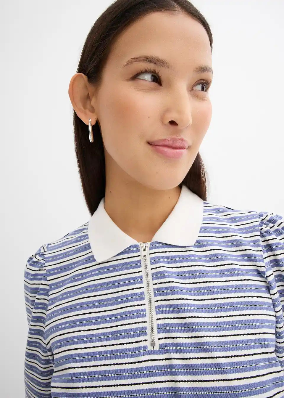 Moderna poloshirt z zadrgo in polovičnimi rokavi, črtasta
