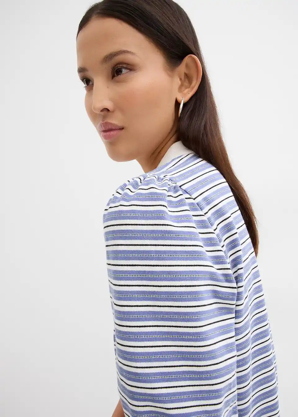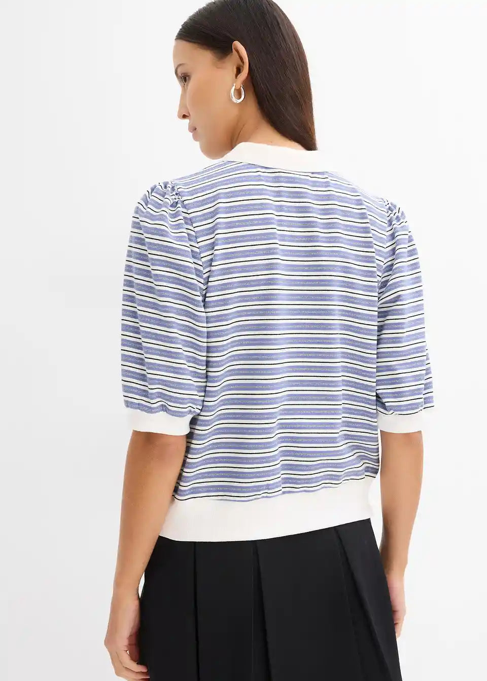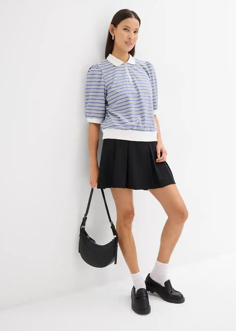 Moderna poloshirt z zadrgo in polovičnimi rokavi, črtasta
