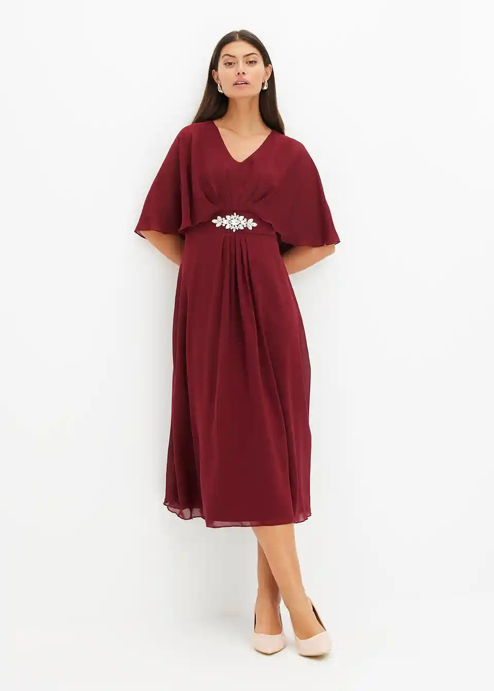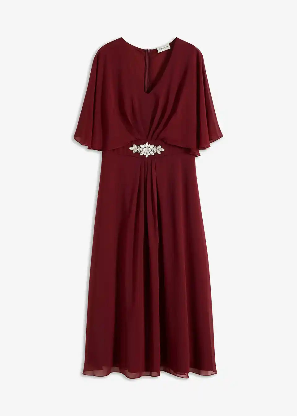 Široko padajoča midije obleka iz finega šifona z aplikacijo iz kristalnih kamnov v pasu