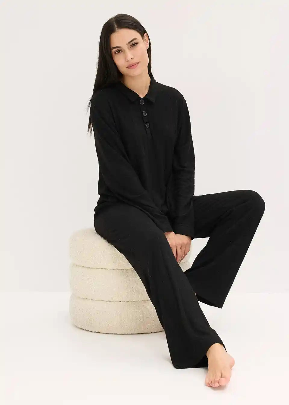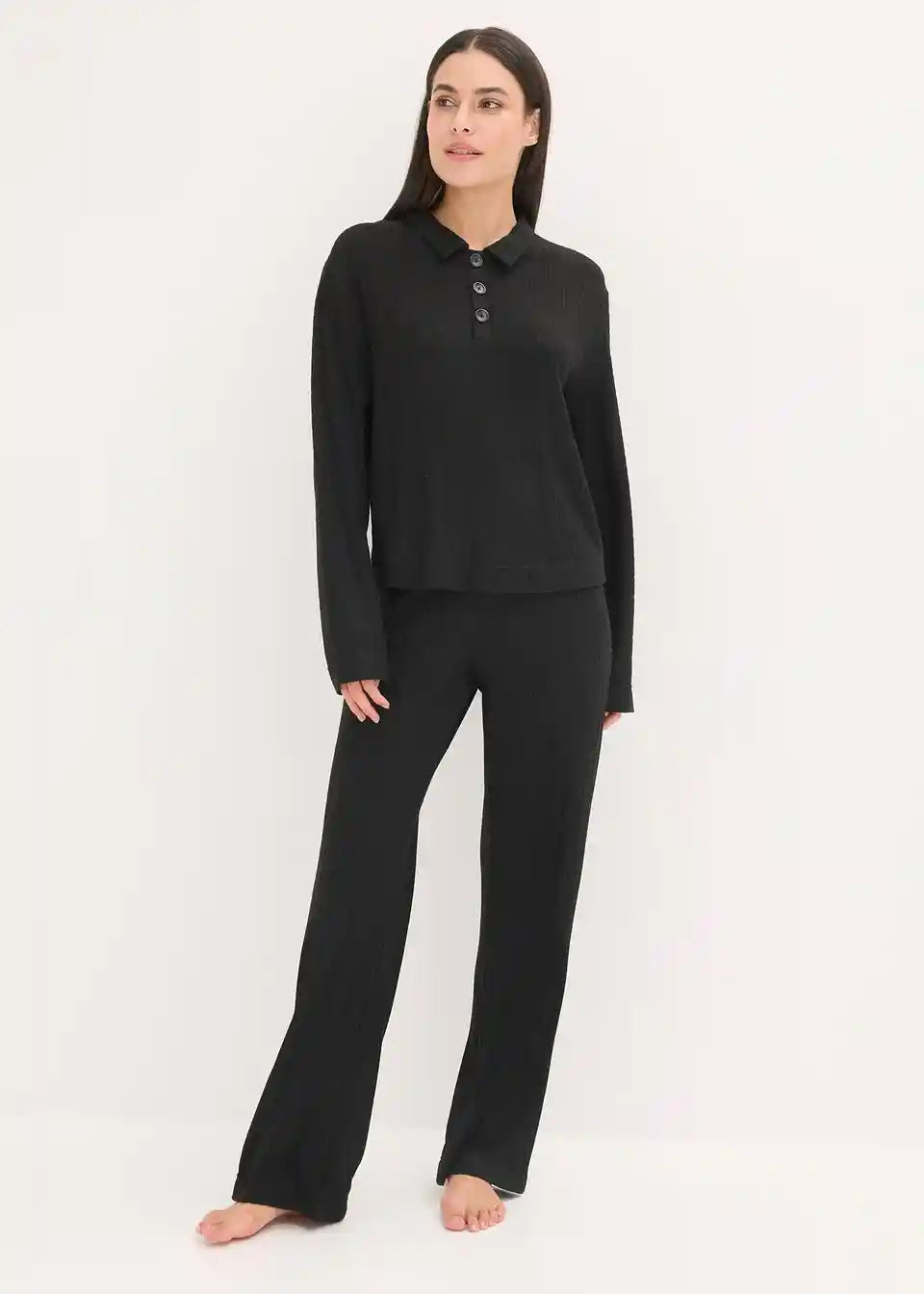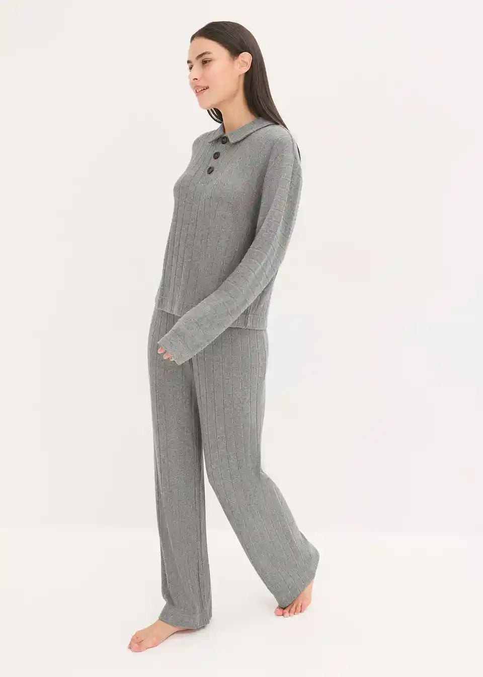 Široko krojeno udobno oblačilo za doma iz mehkega rebrastega materiala