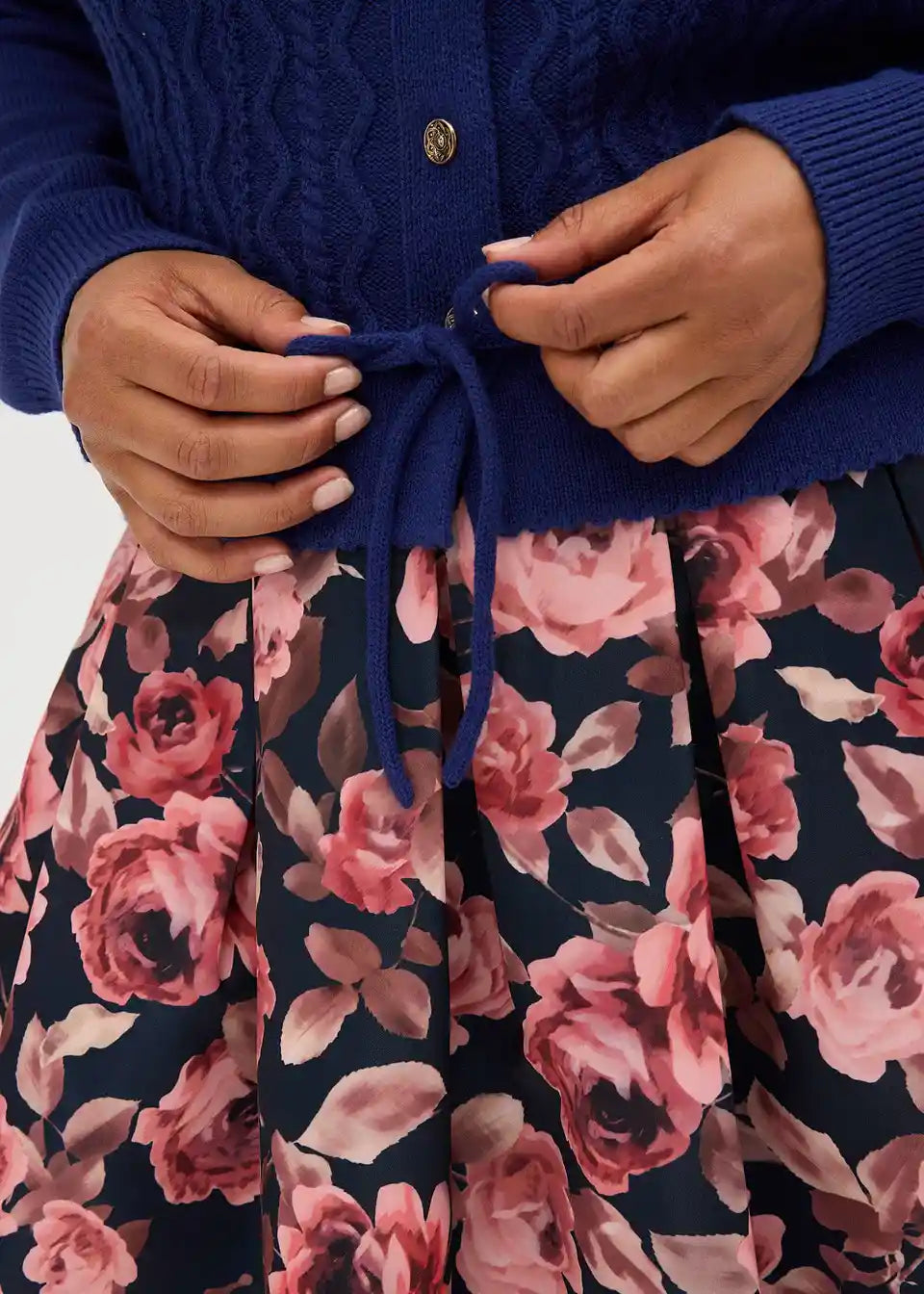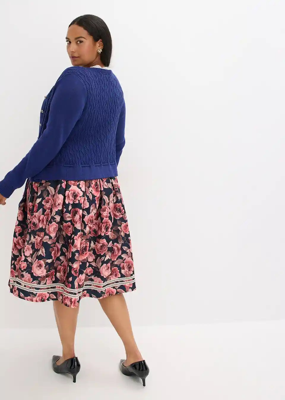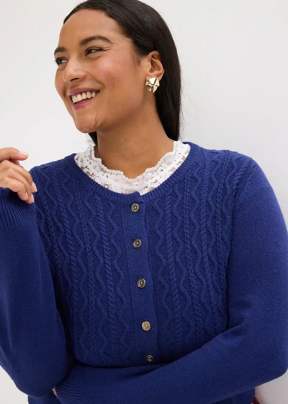 Romantična in ženstvena: Trachten pletena jopica z vzorcem kit in kovinskimi gumbi z detajlom za vezanje