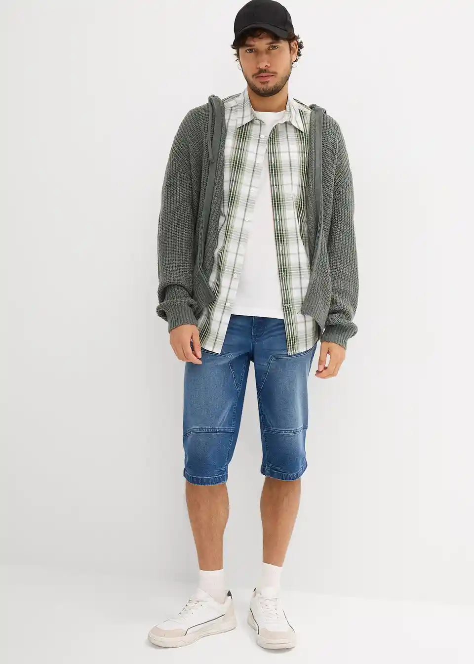 Čudovite stretch bermuda kavbojke z markantnimi okrasnimi šivi
