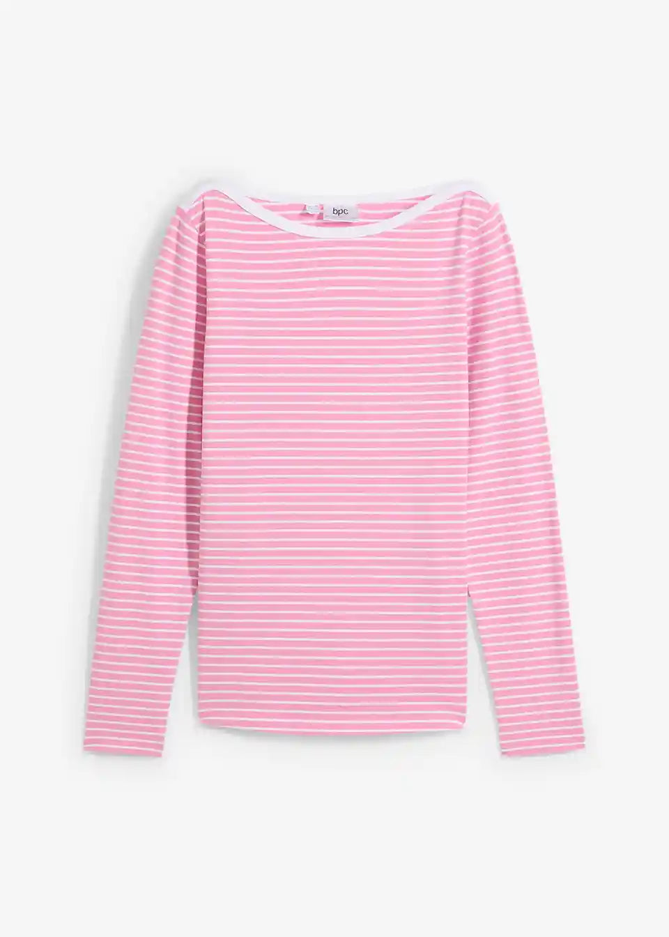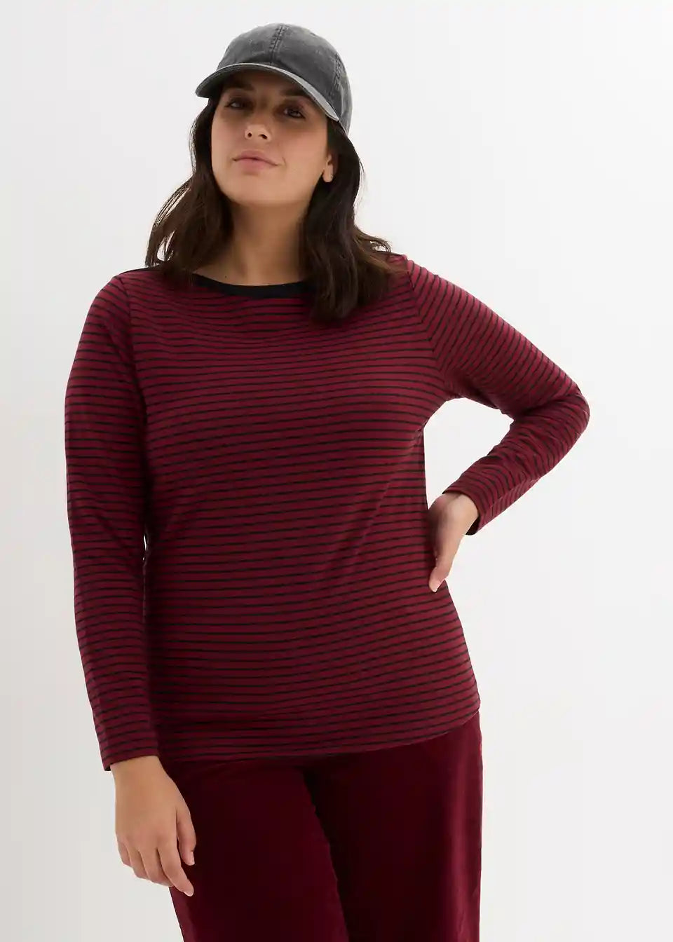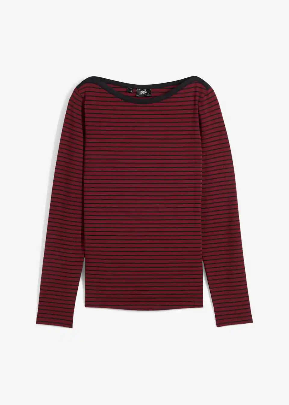 Črtasta majica z ladijskim izrezom, dolgimi rokavi in ekološkim bombažem
