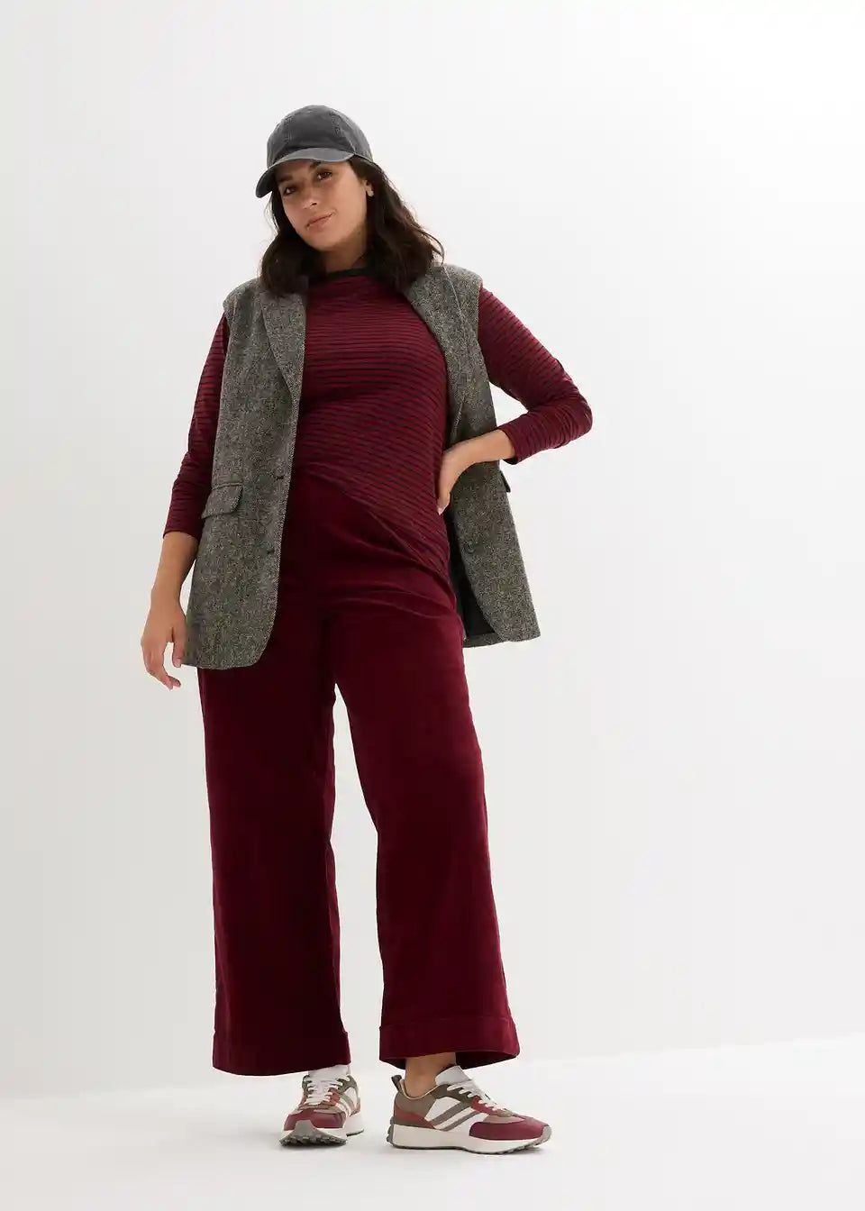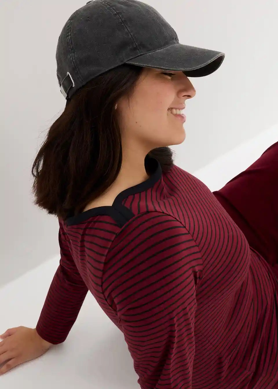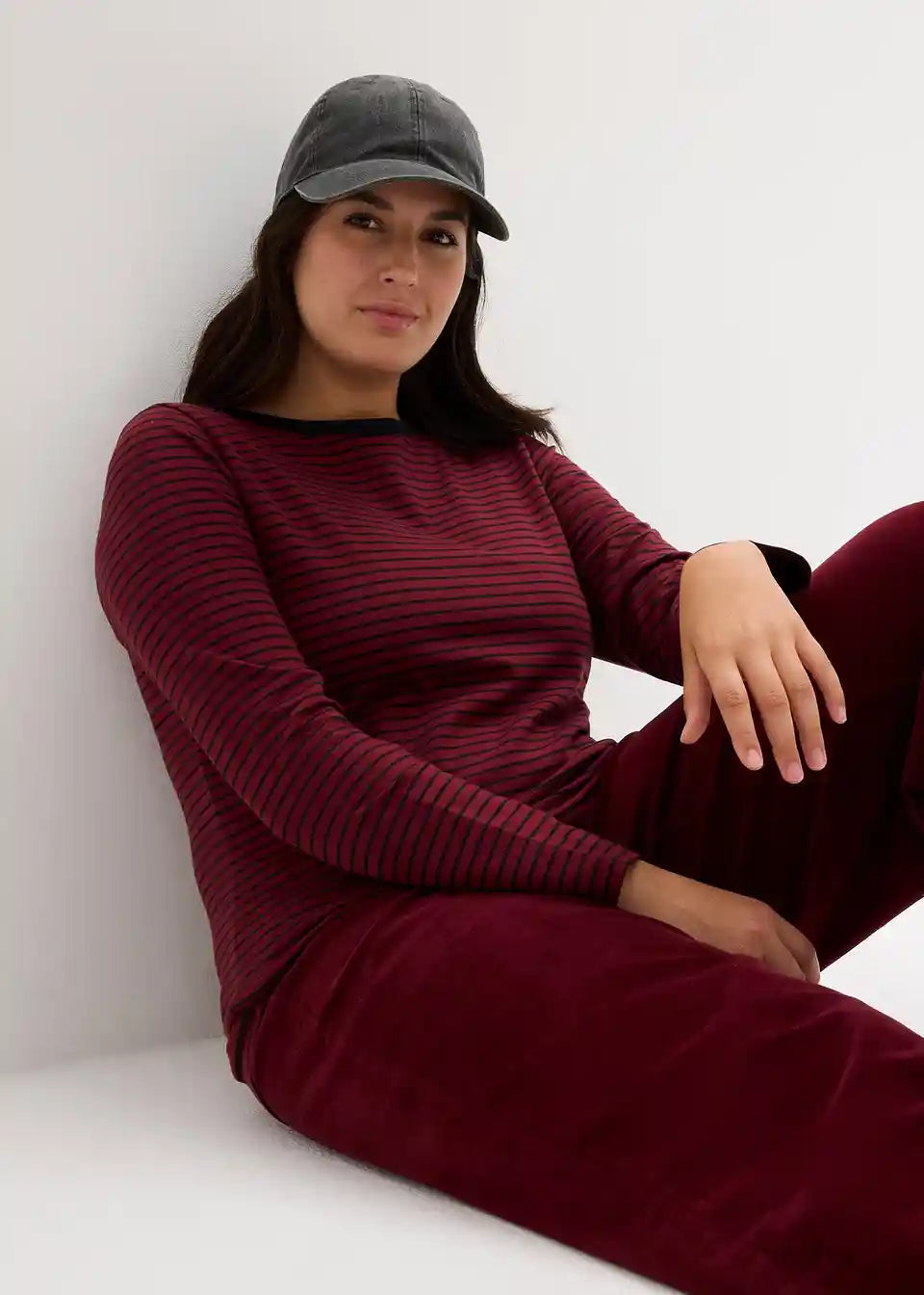Črtasta majica z ladijskim izrezom, dolgimi rokavi in ekološkim bombažem