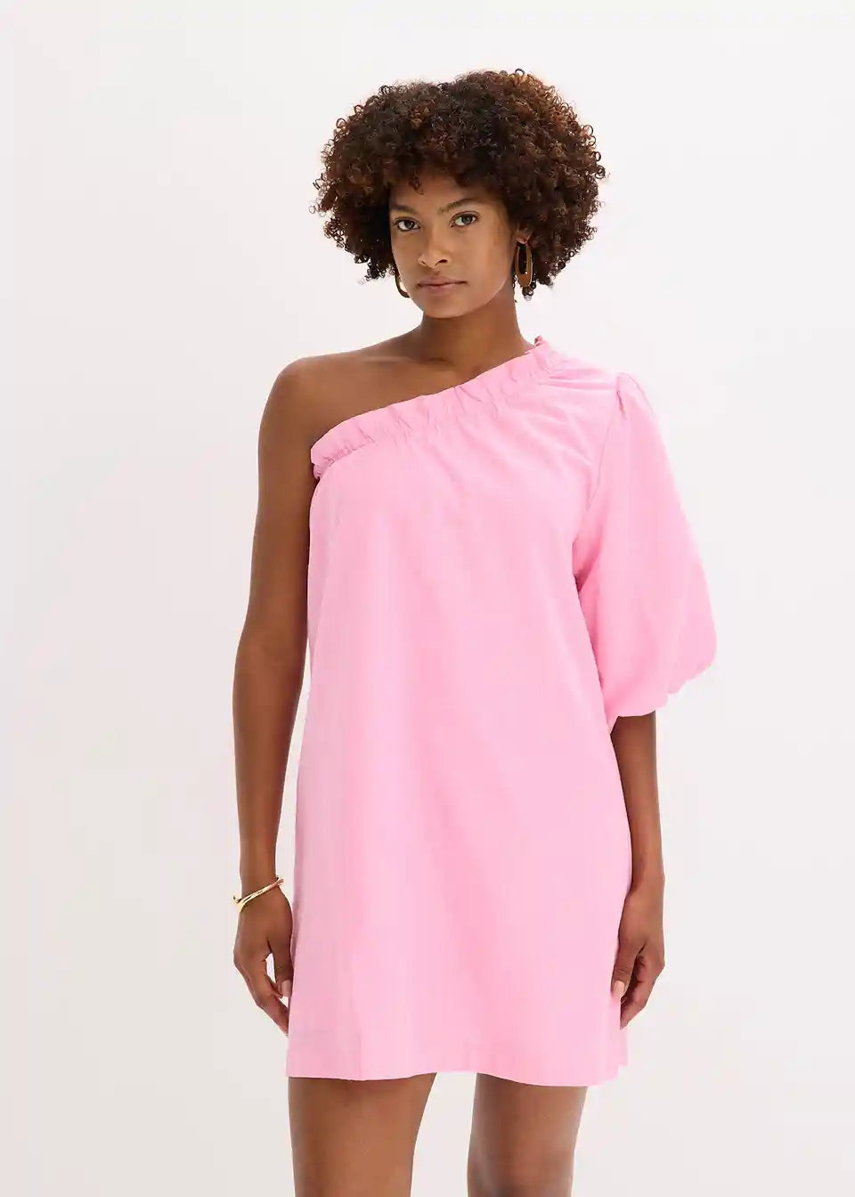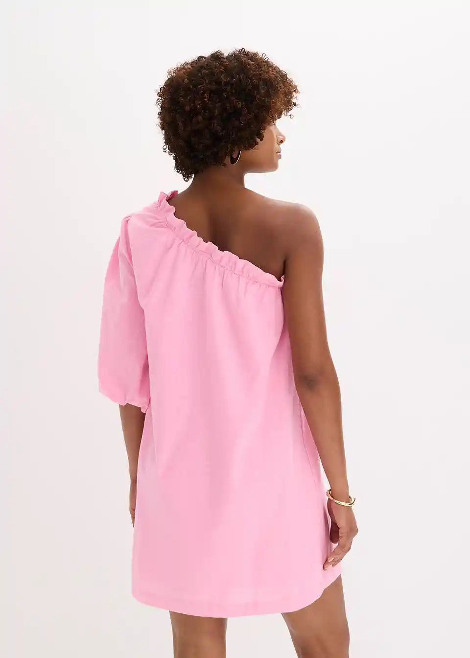 Obleka z odkrito ramo iz bombaža
