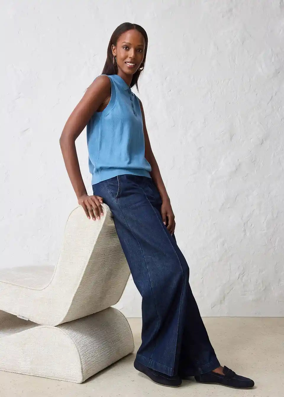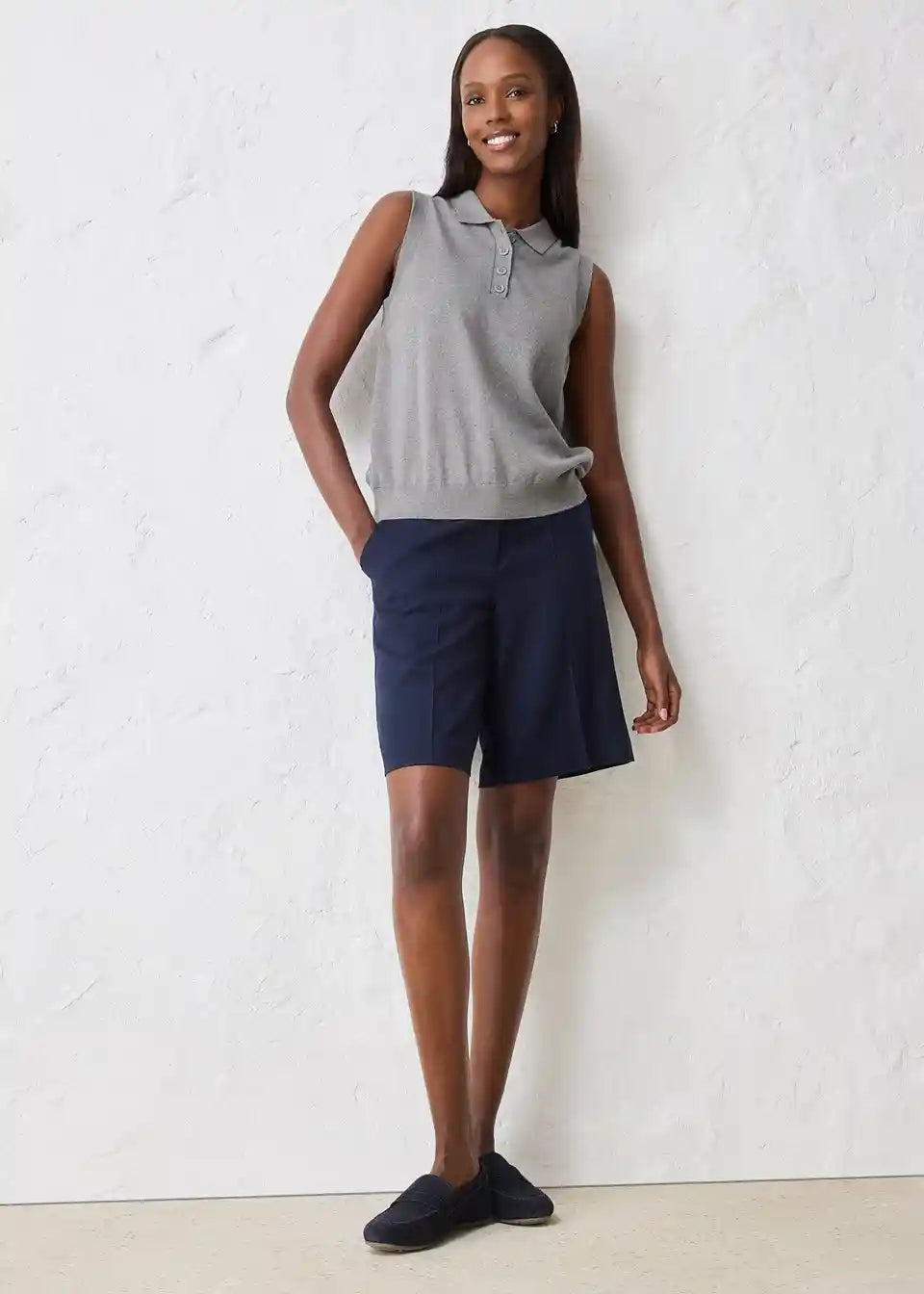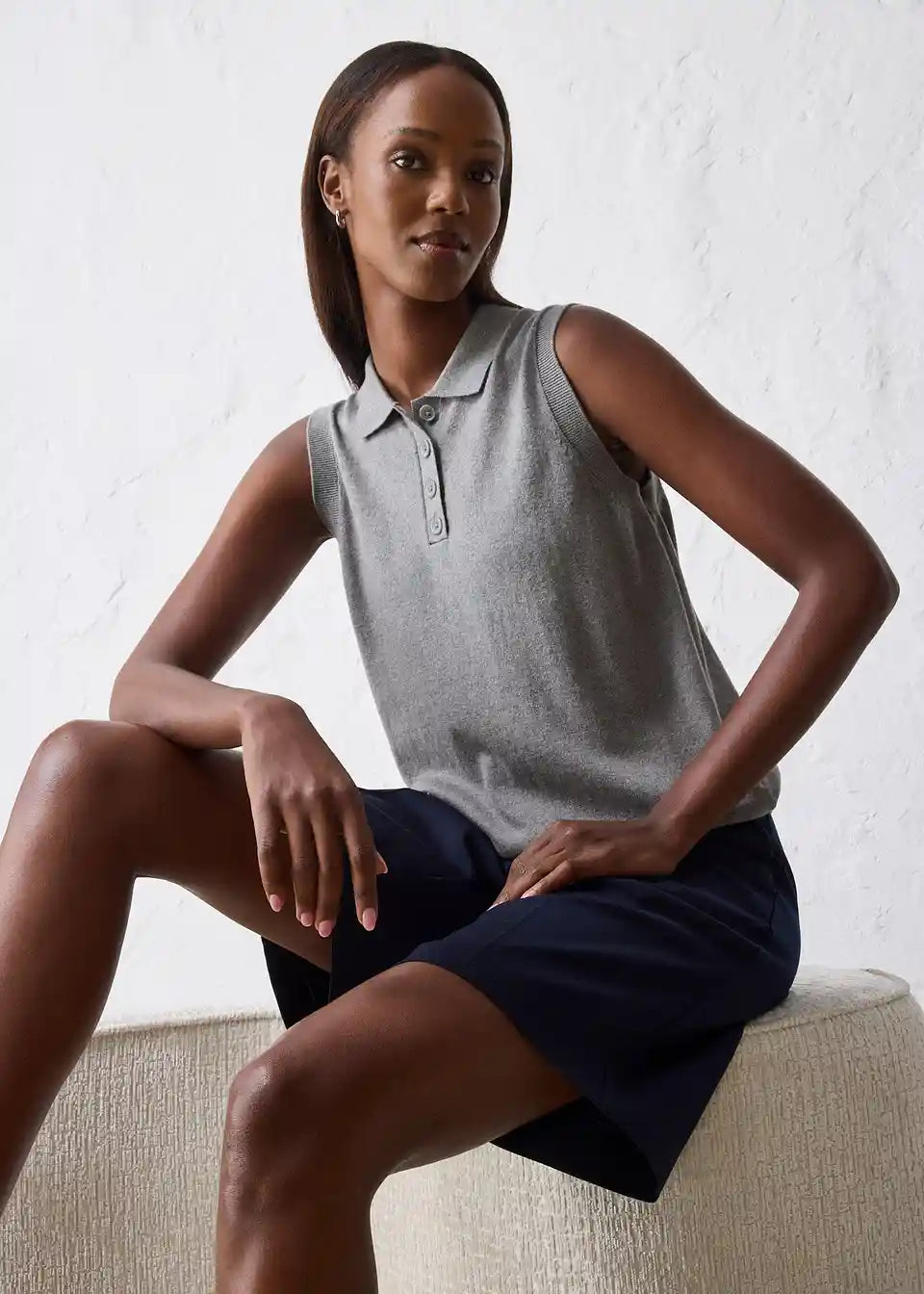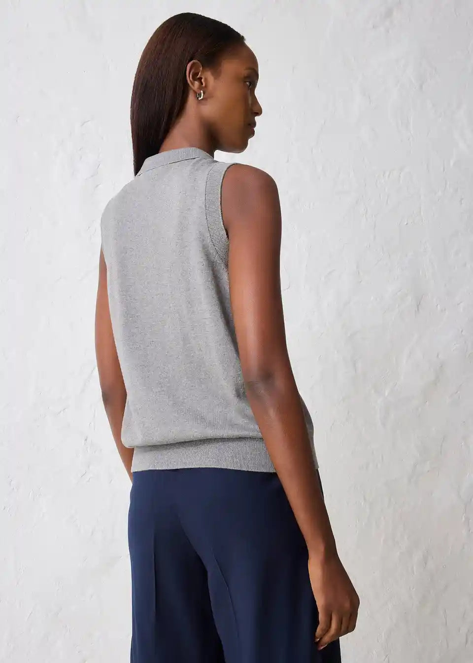 Stilski fino pleten top z deležem svile in polo ovratnikom