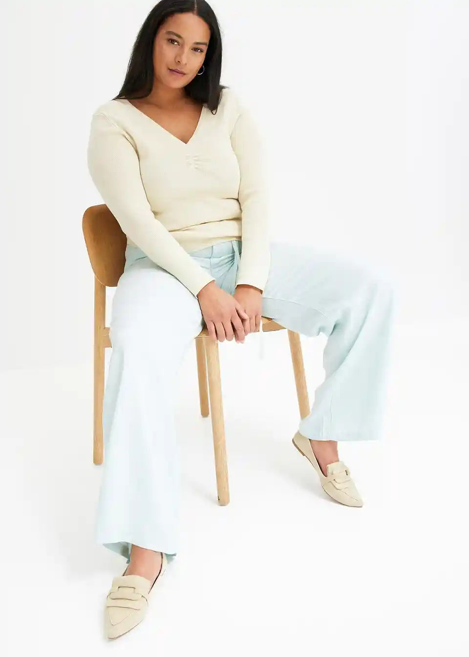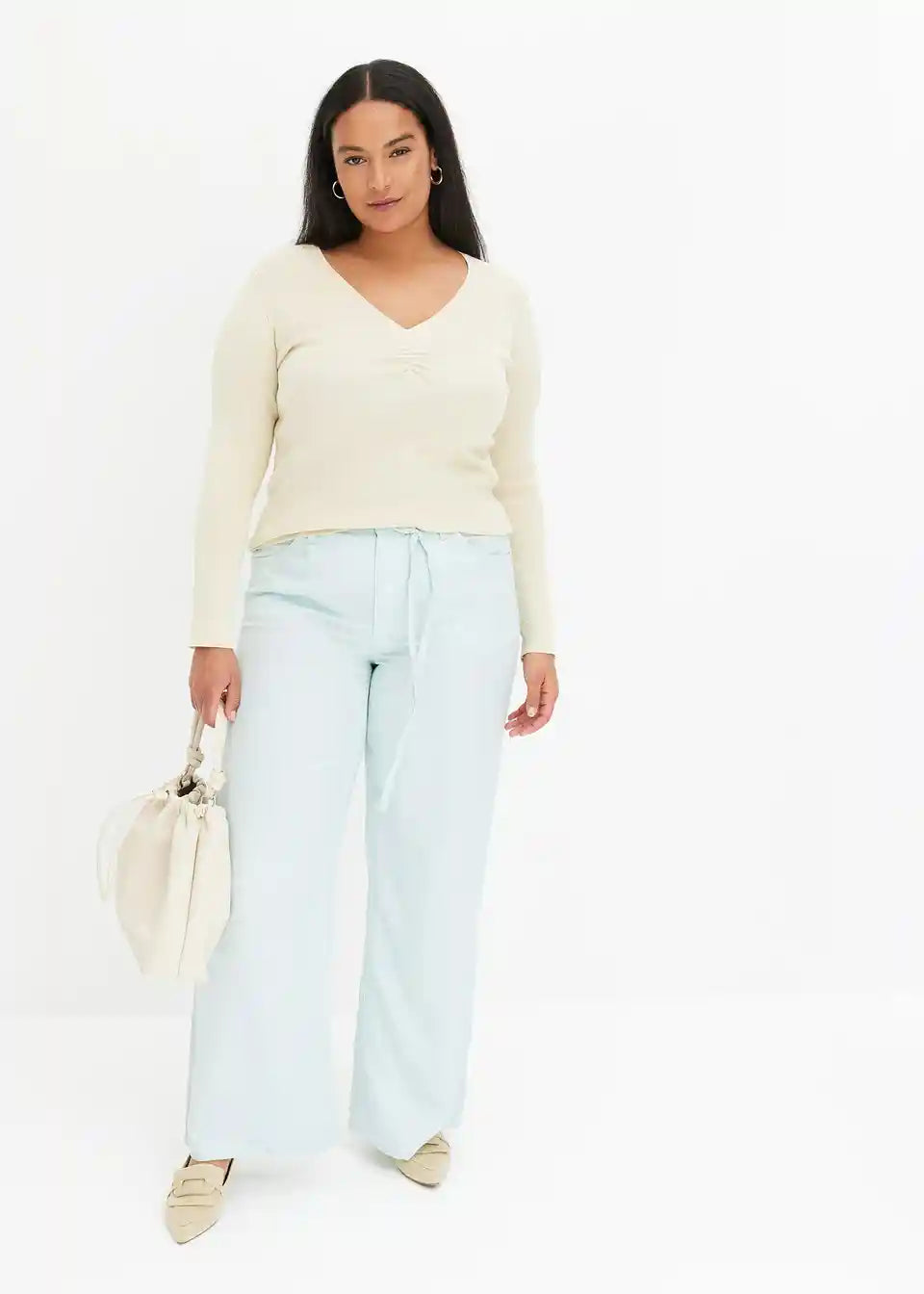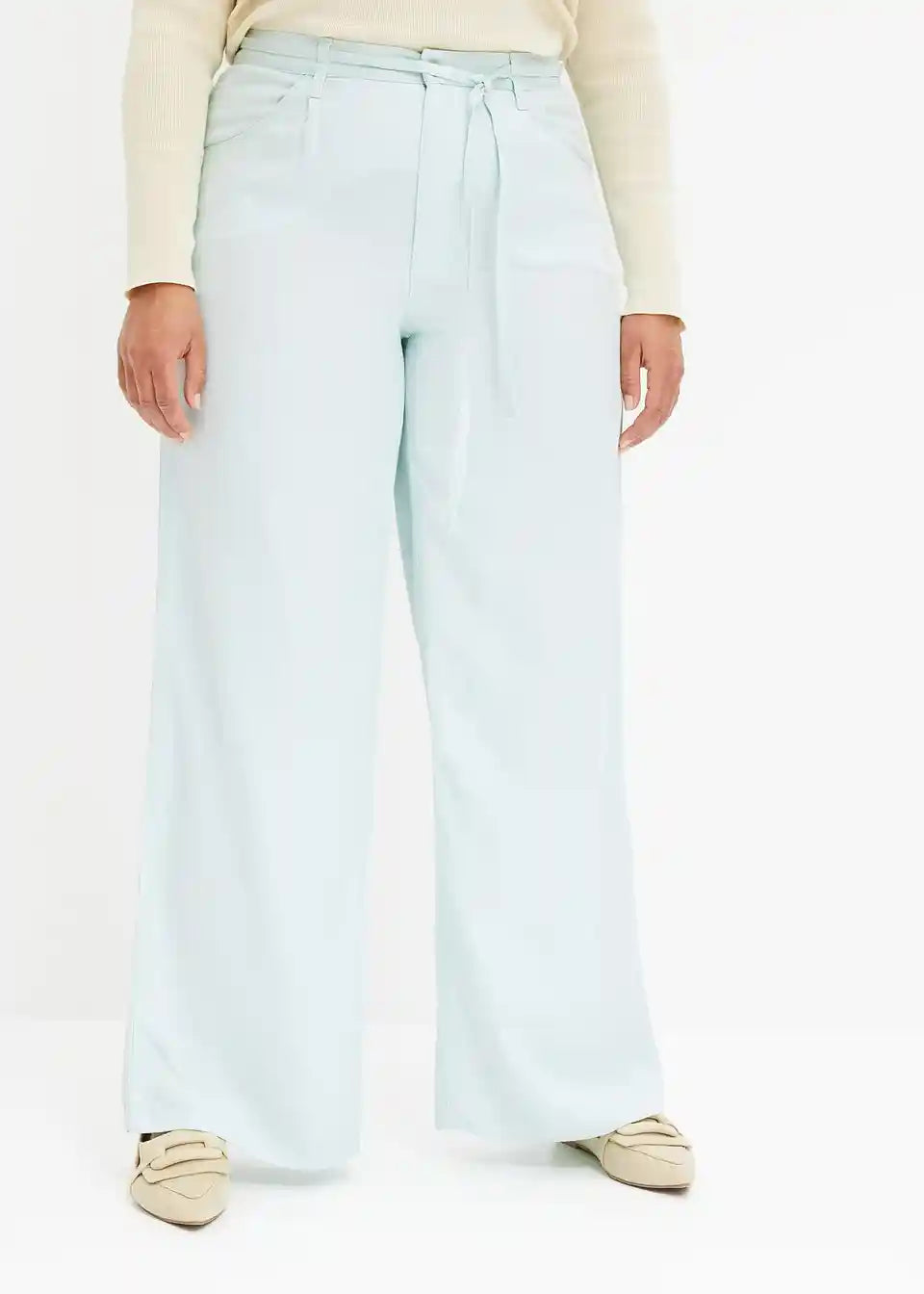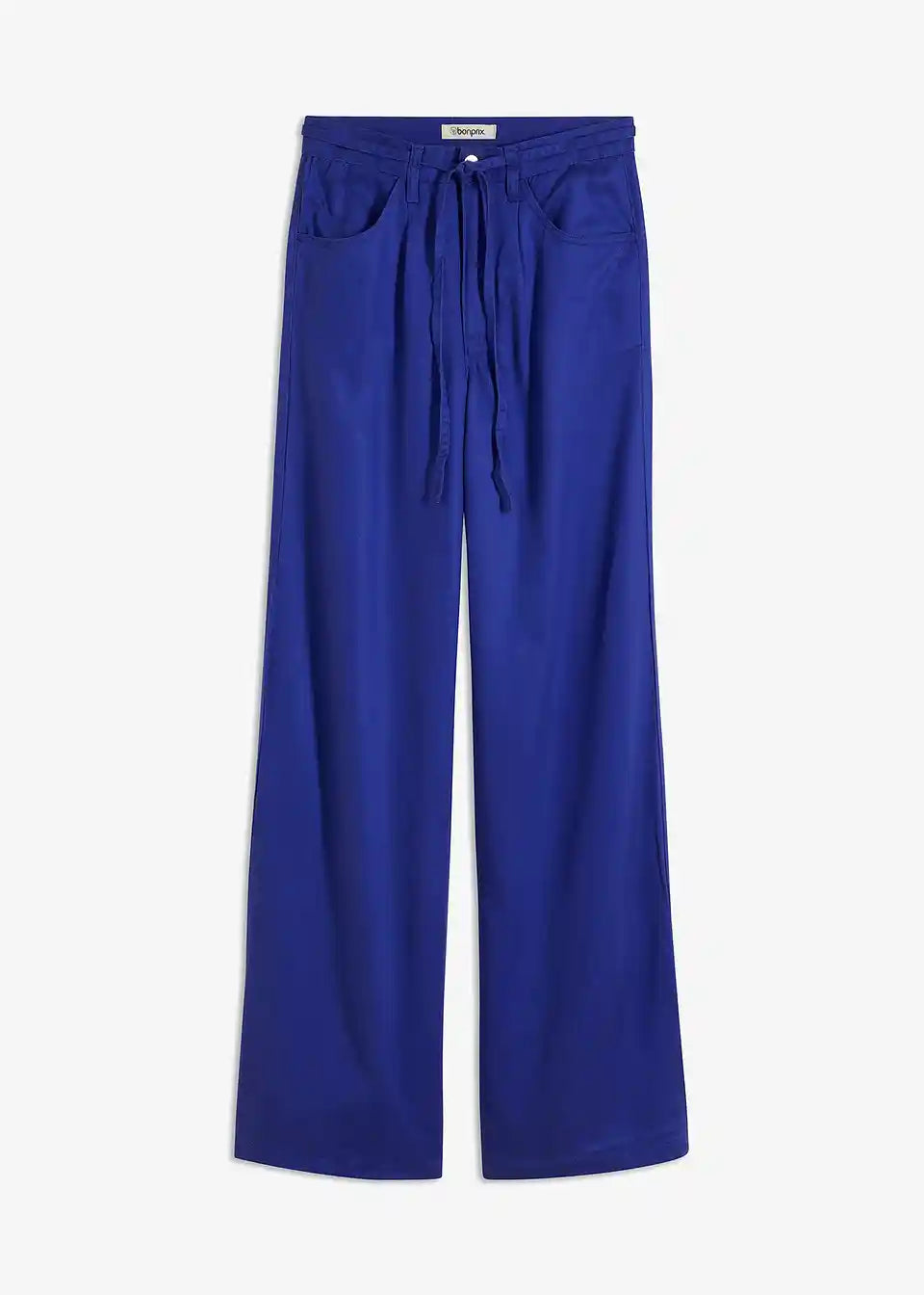Hlače z gubami v pasu iz padajočega jeansa z lyocellom ter trakom za zavezovanje