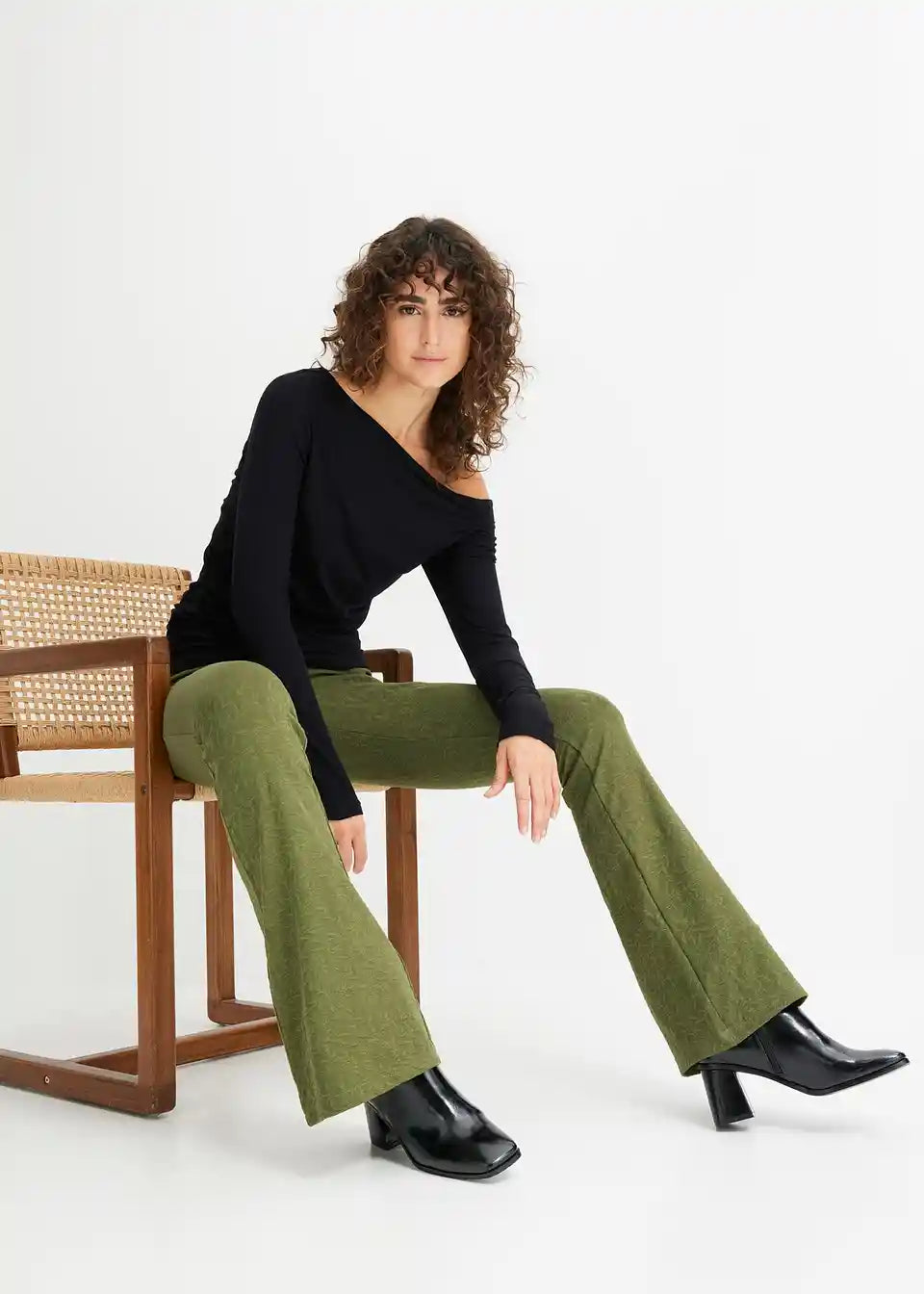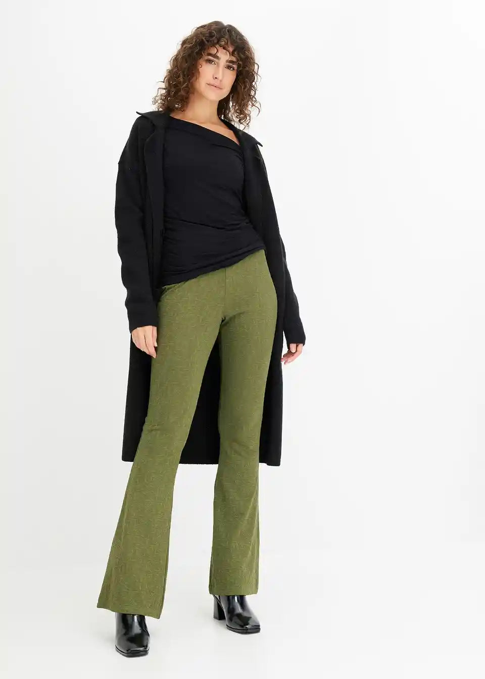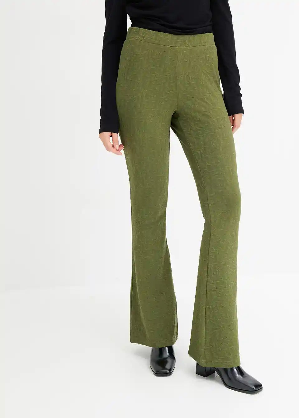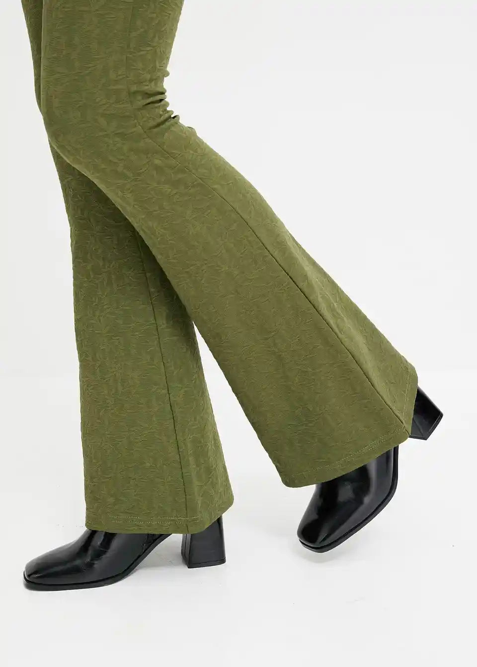 Jacquard hlače, ki poudarijo postavo, z razširjenimi hlačnicami