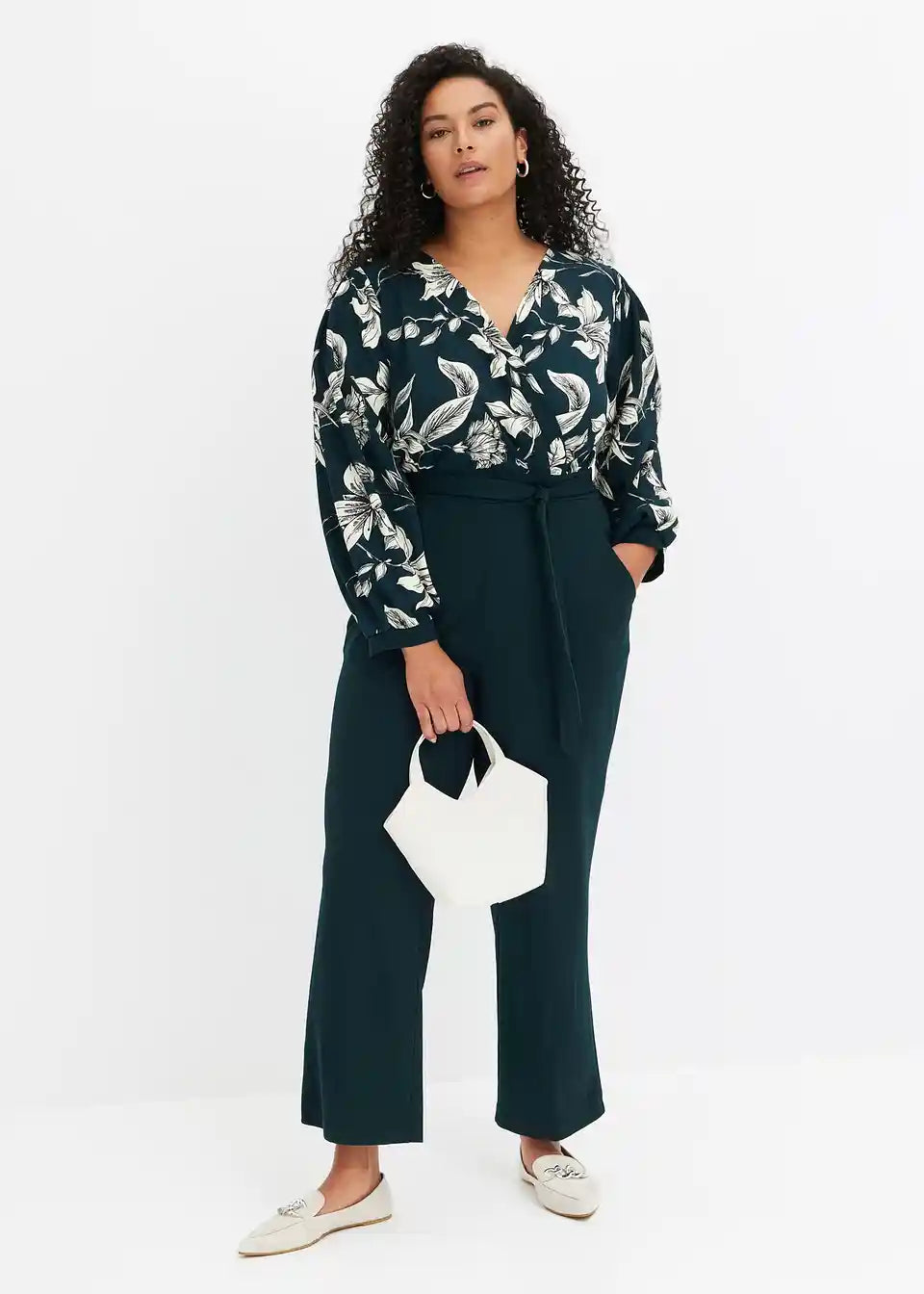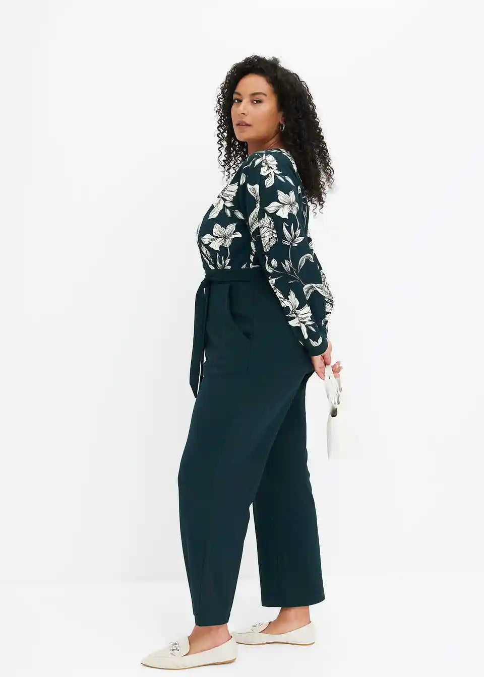 Eleganten kombinezon iz jerseyja v prefinjenem ovitem videzu
