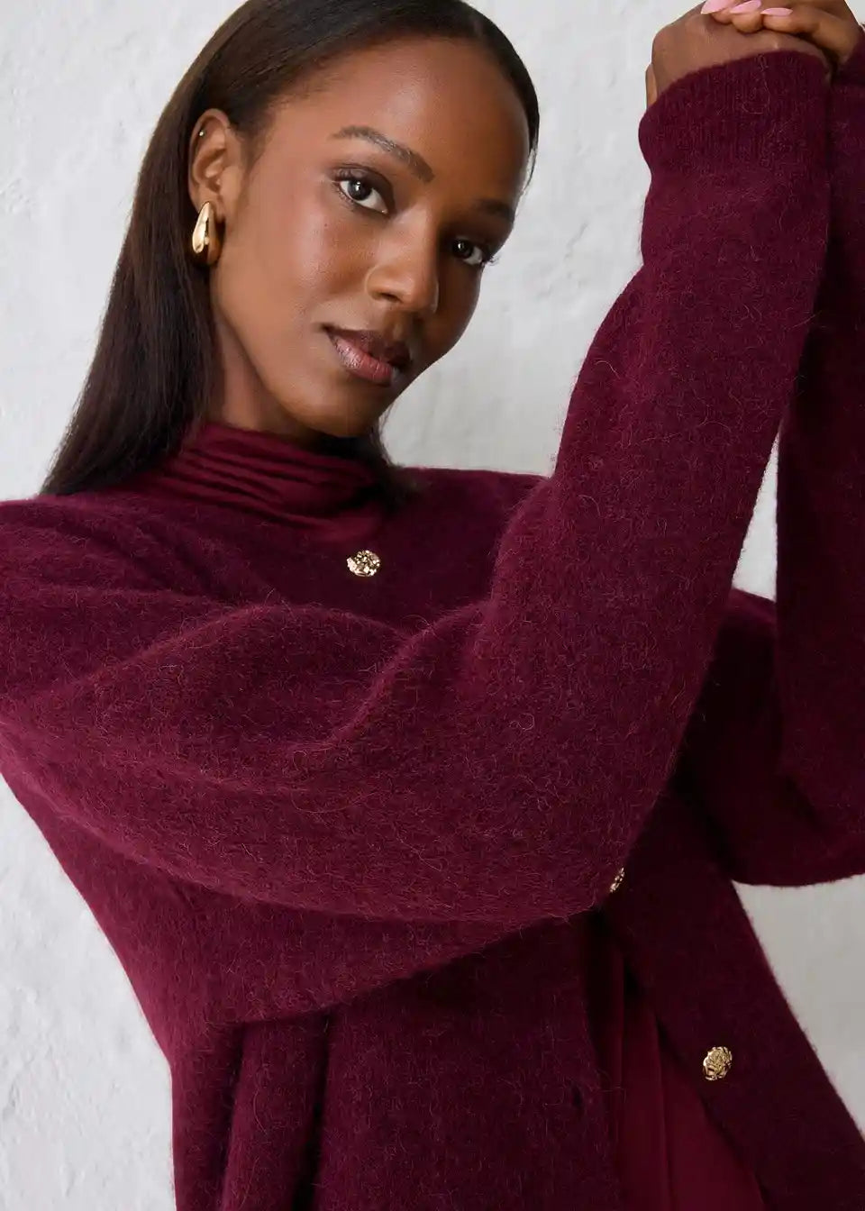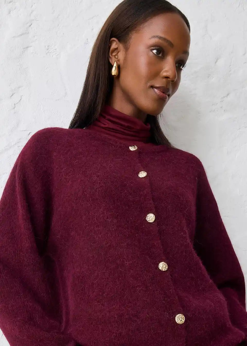 Pletena jopa iz toplega materiala z deležem alpake