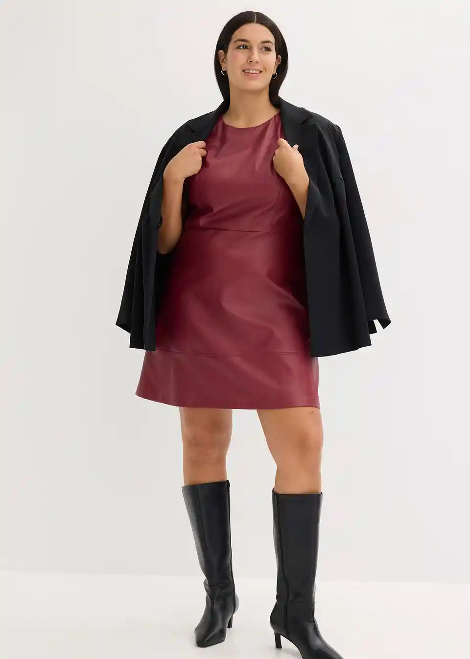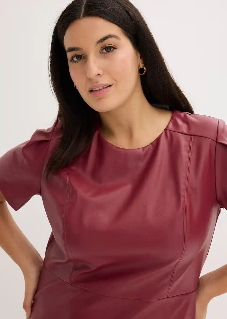Mini obleka iz mehkega umetnega usnja s kratkimi tulipanastimi rokavi