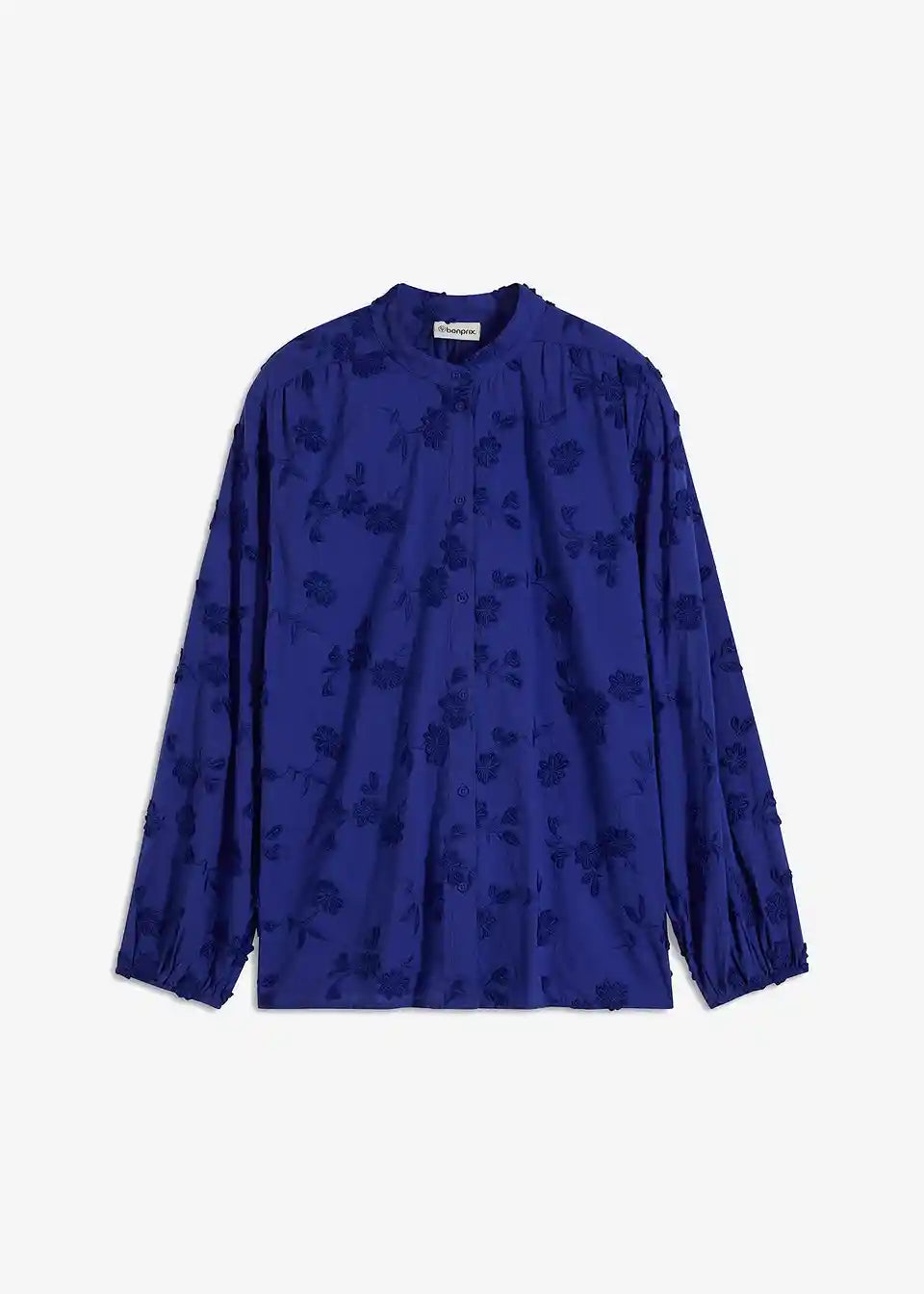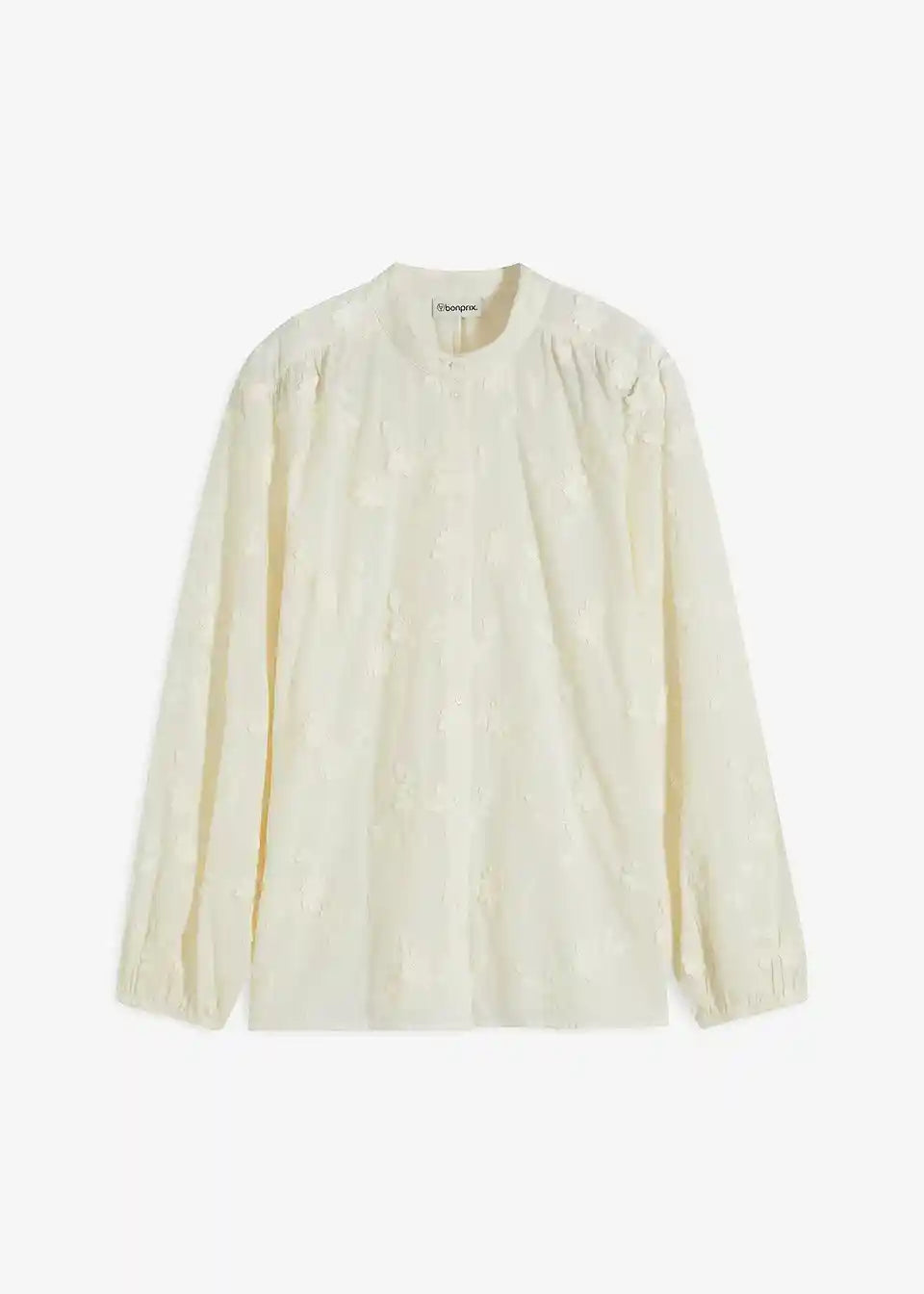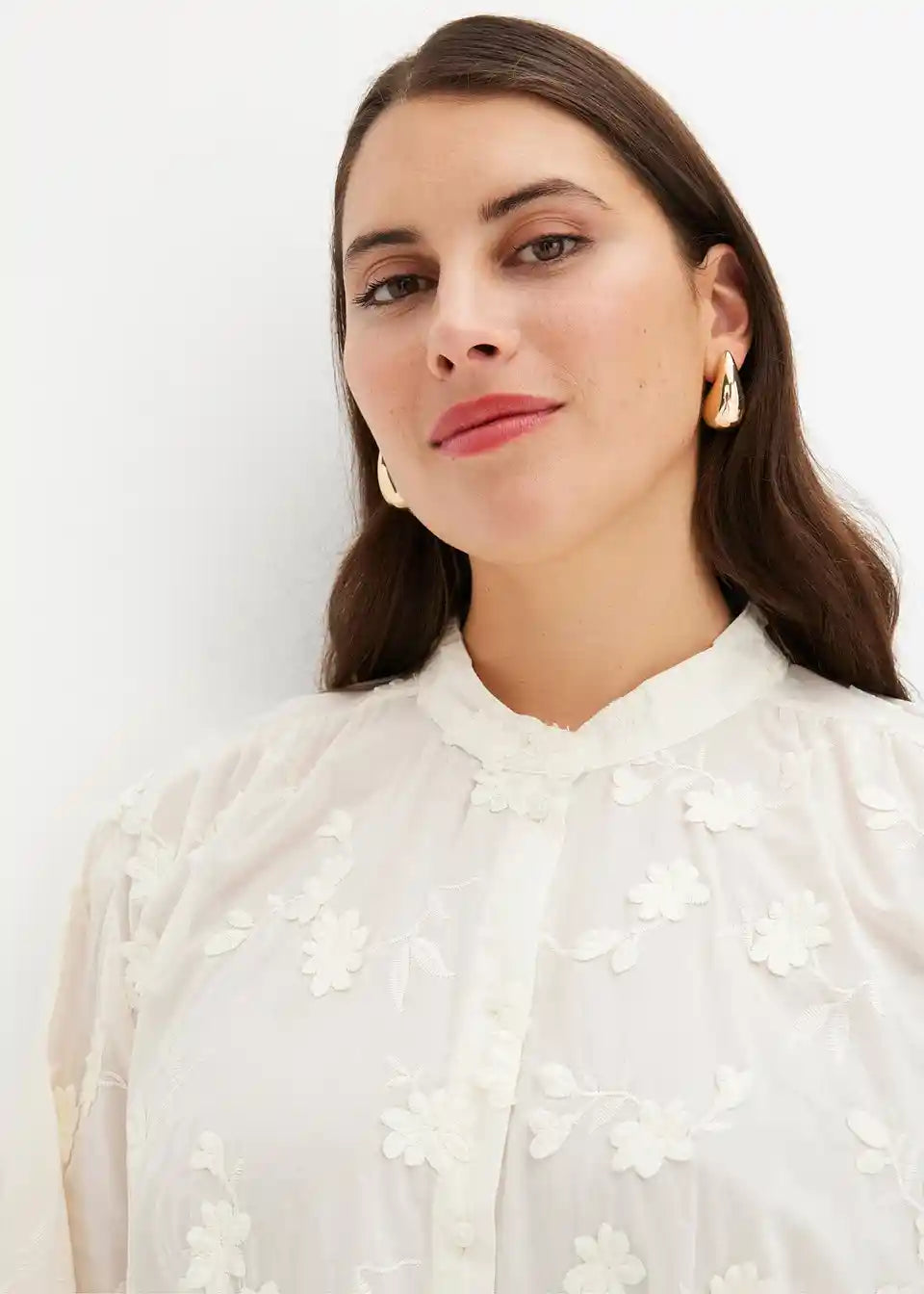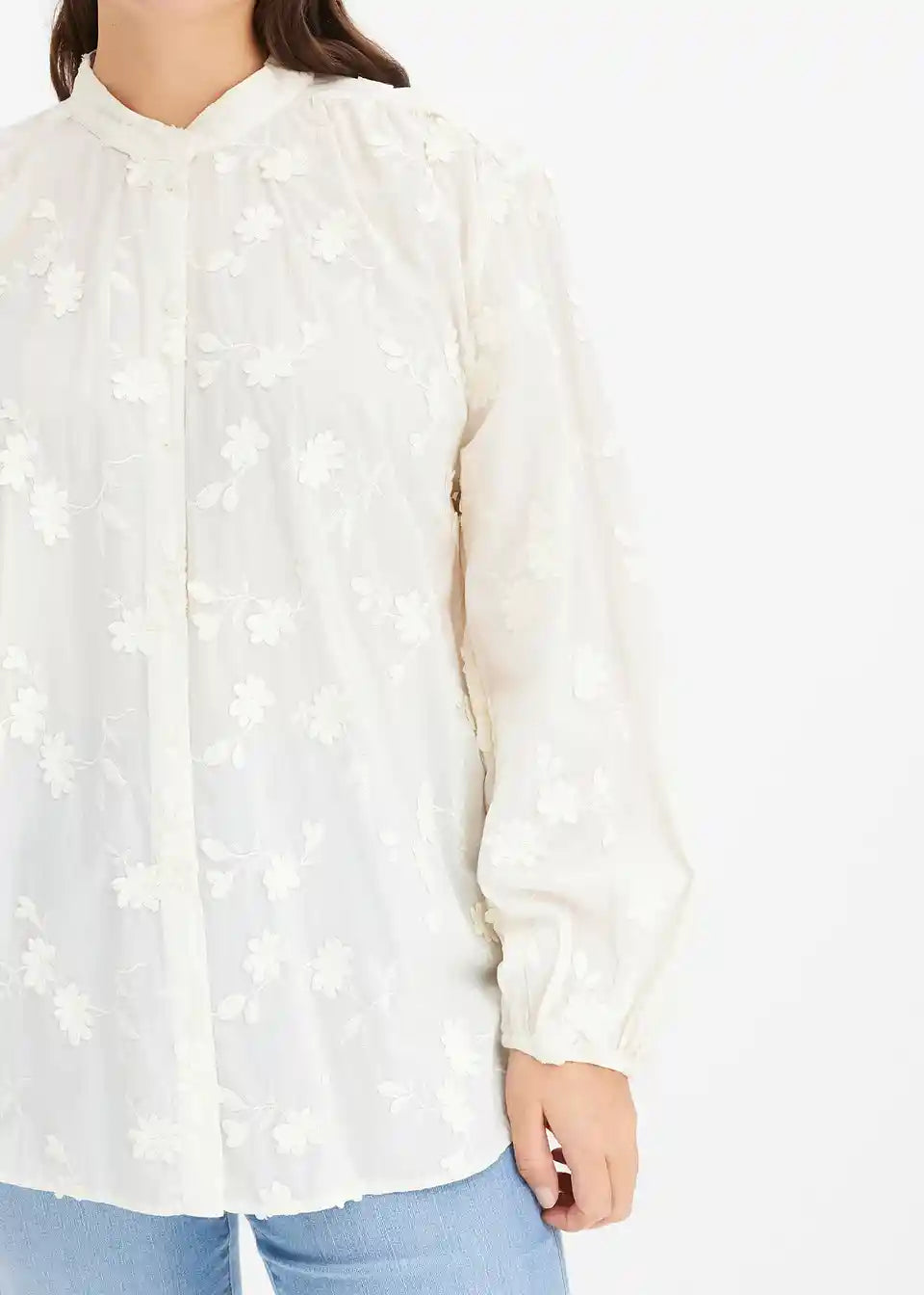 Rahlo prosojna bluza s cvetlično aplikacijo