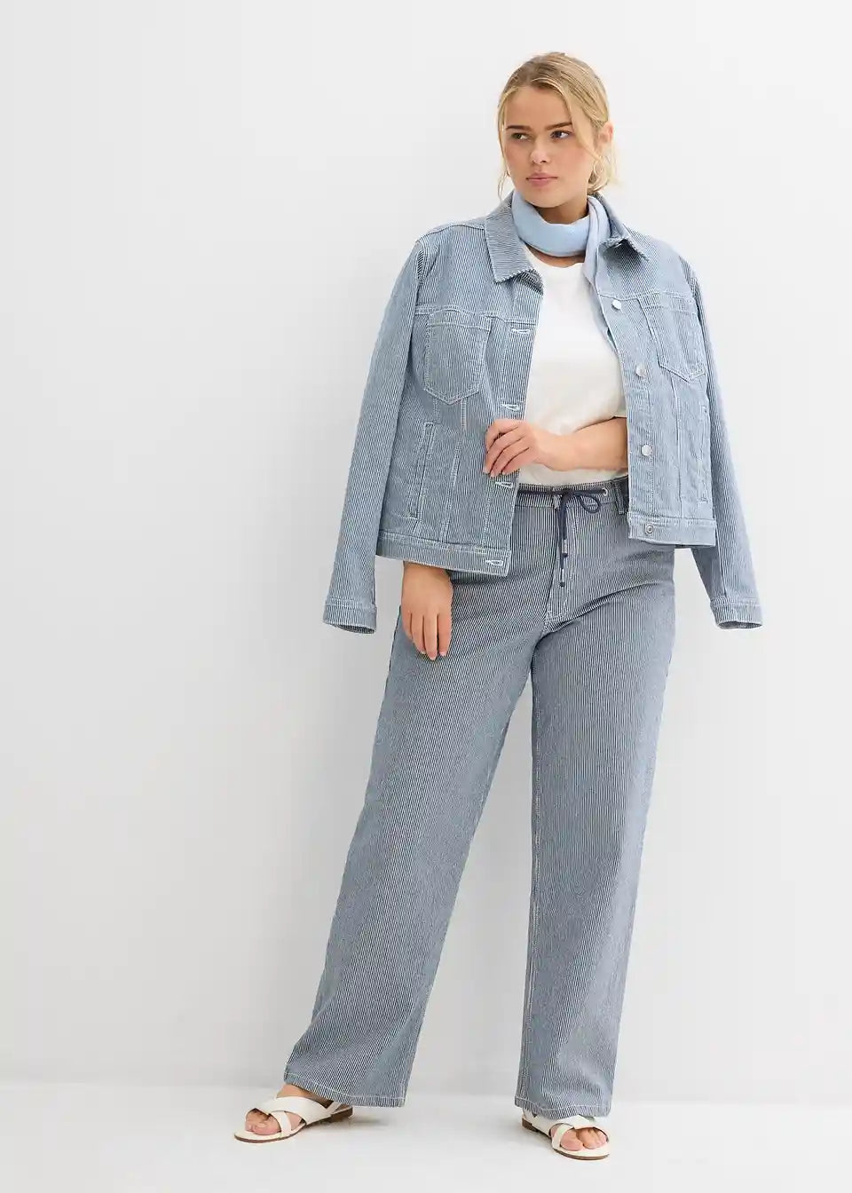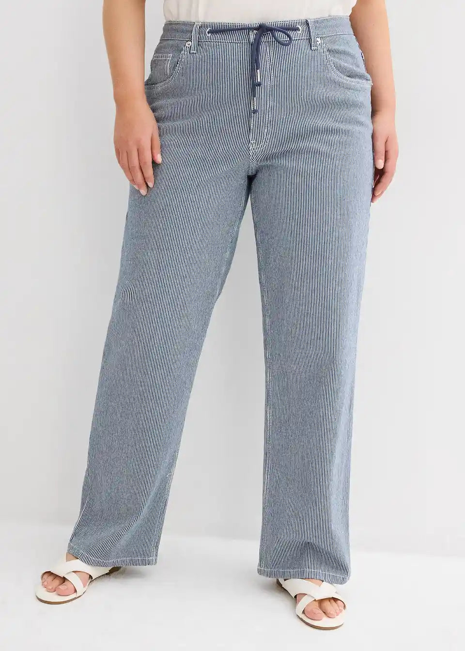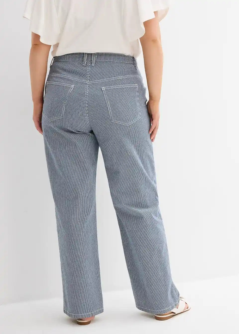 Črtaste jeans hlače z ravnim širokim krojem in visokim pasom