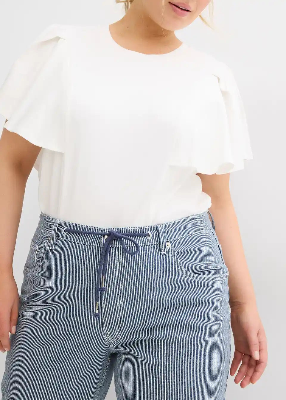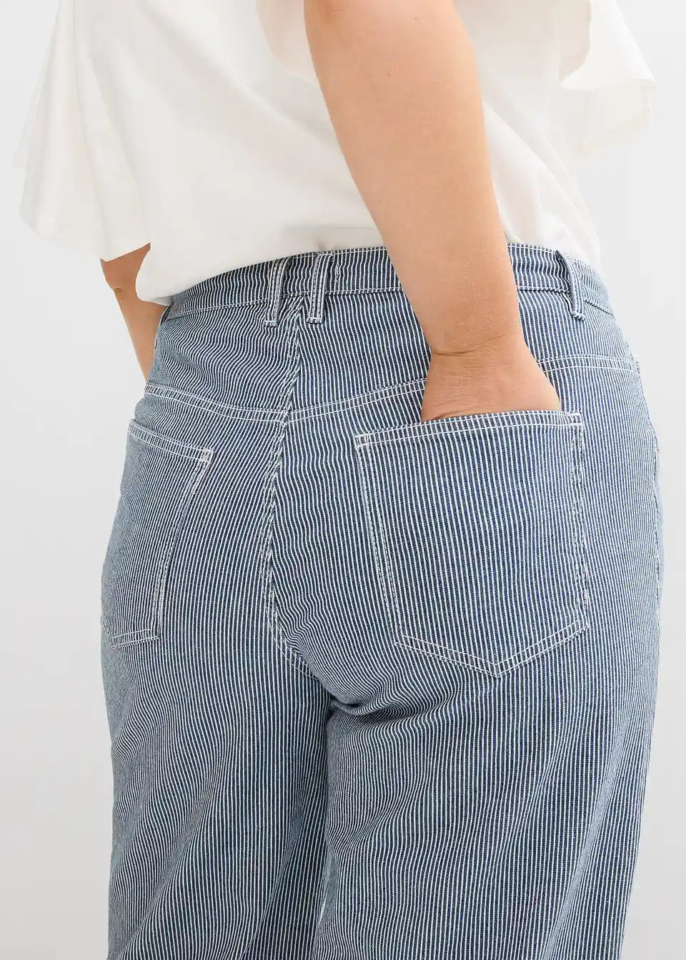 Udobne kavbojke v ravnem kroju z visokim pasom in črtami
