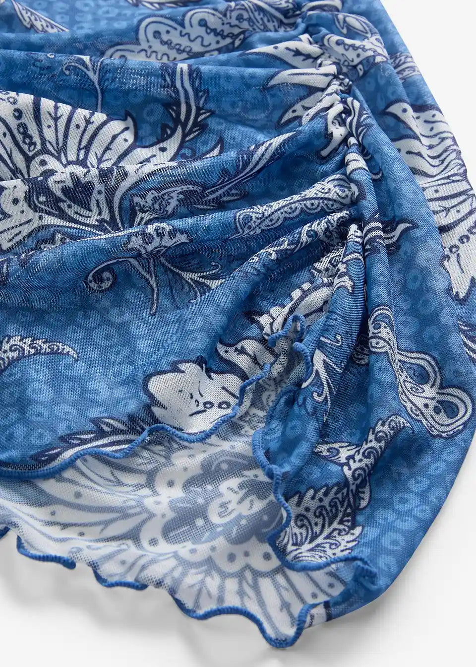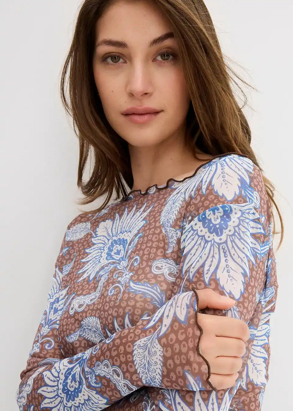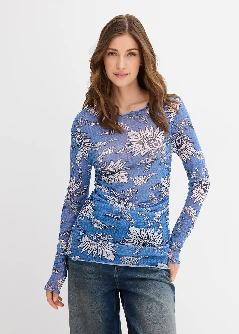 Majica z dolgimi rokavi s potiskom iz fine mreže z naborki