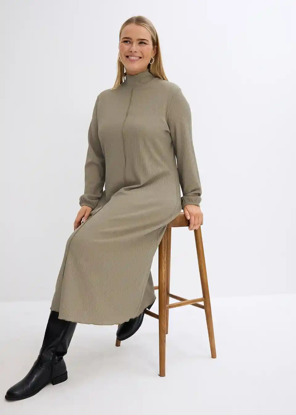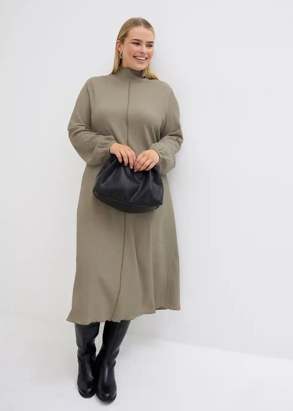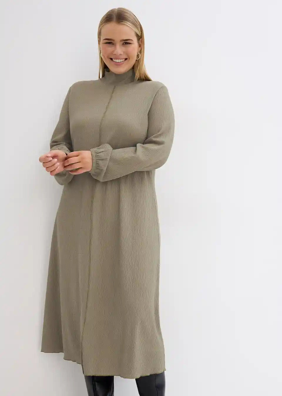 Modna dolga obleka z dekorativnim šivom iz Crêpe materiala
