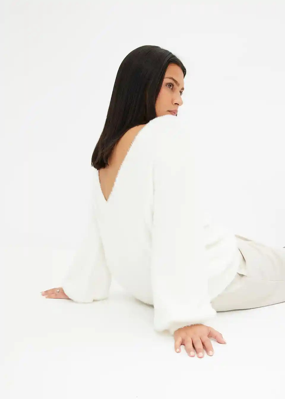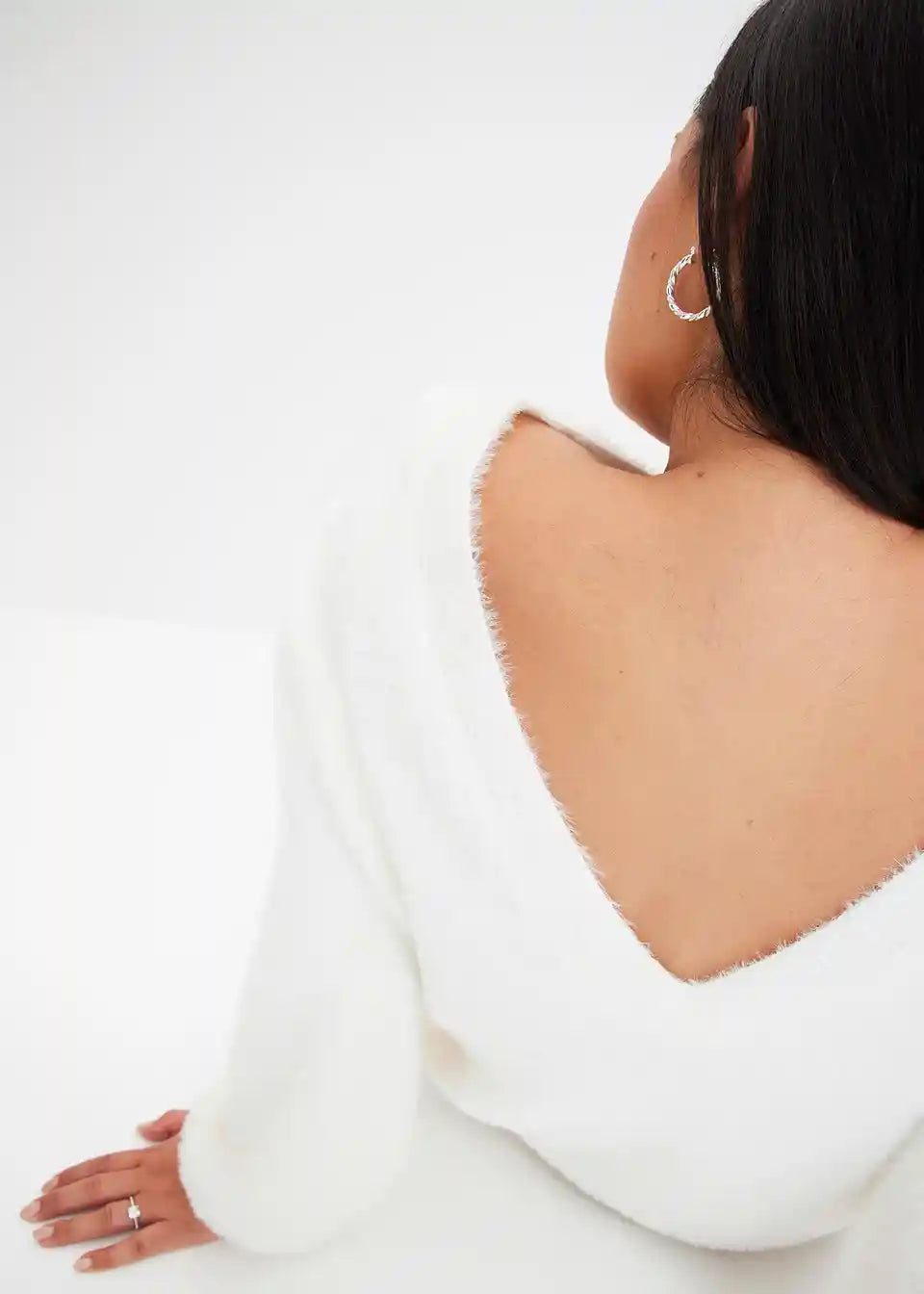 Moden oversize pleten pulover z globokim hrbtnim izrezom
