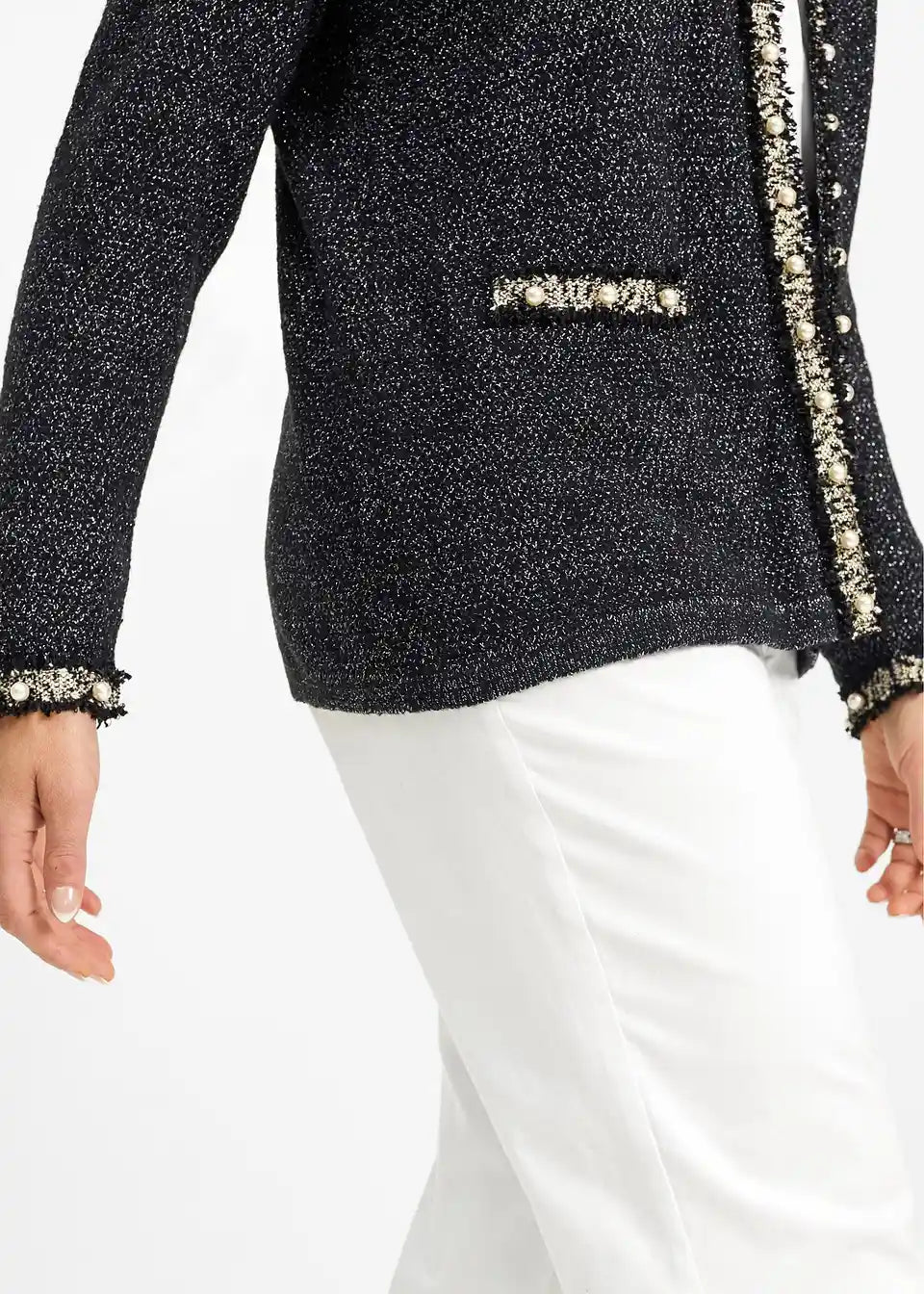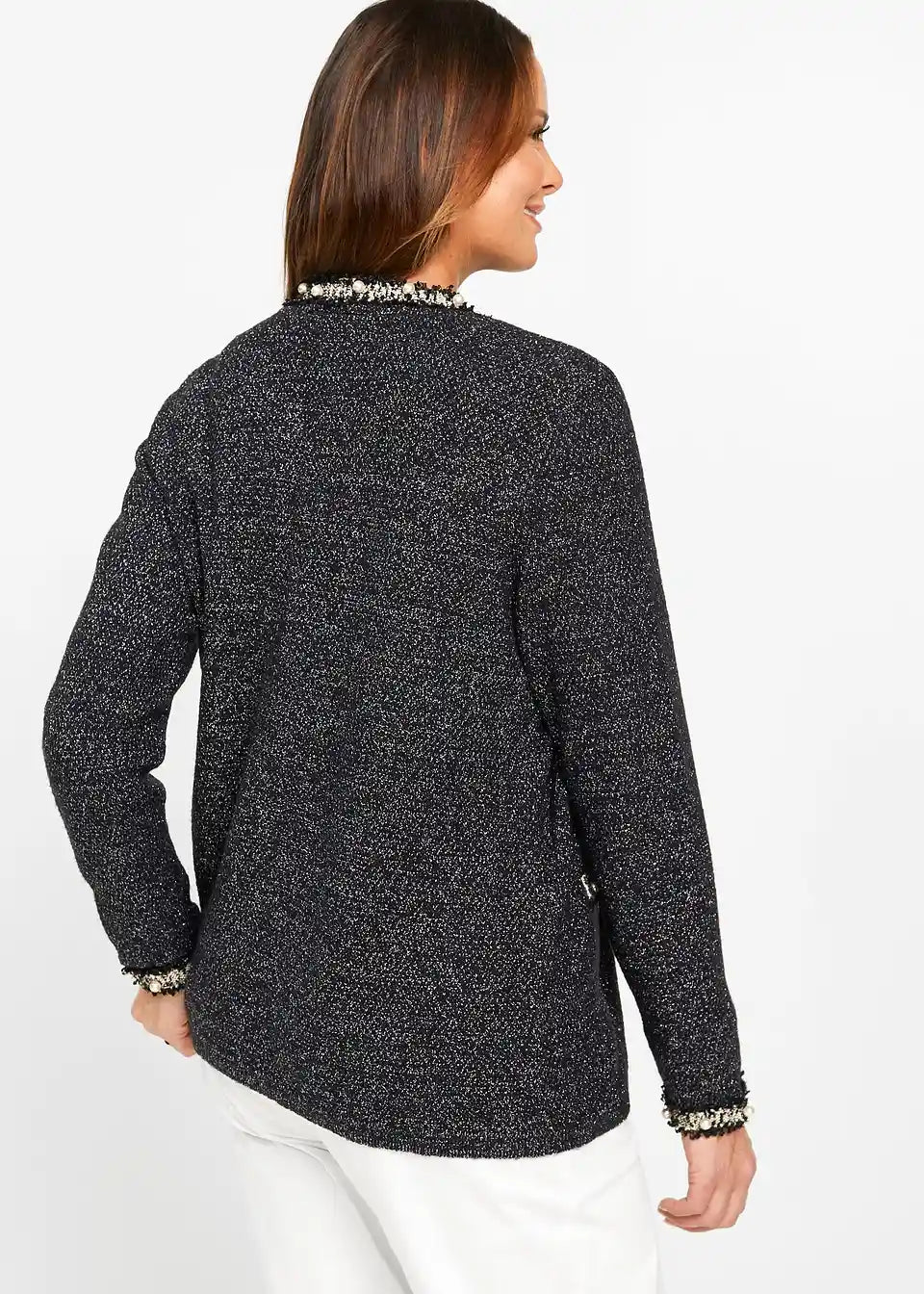 Elegantna pletena jopica z okrasnimi Perlicami